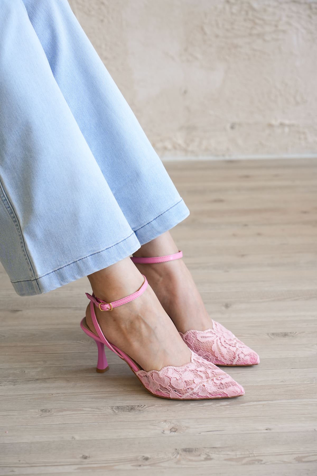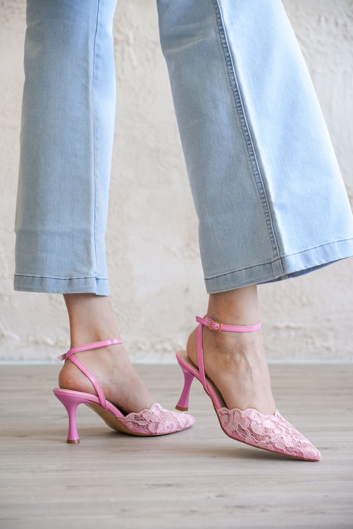 Kadın Beyrut Dantelli Topuklu Ayakkabı - Pembe