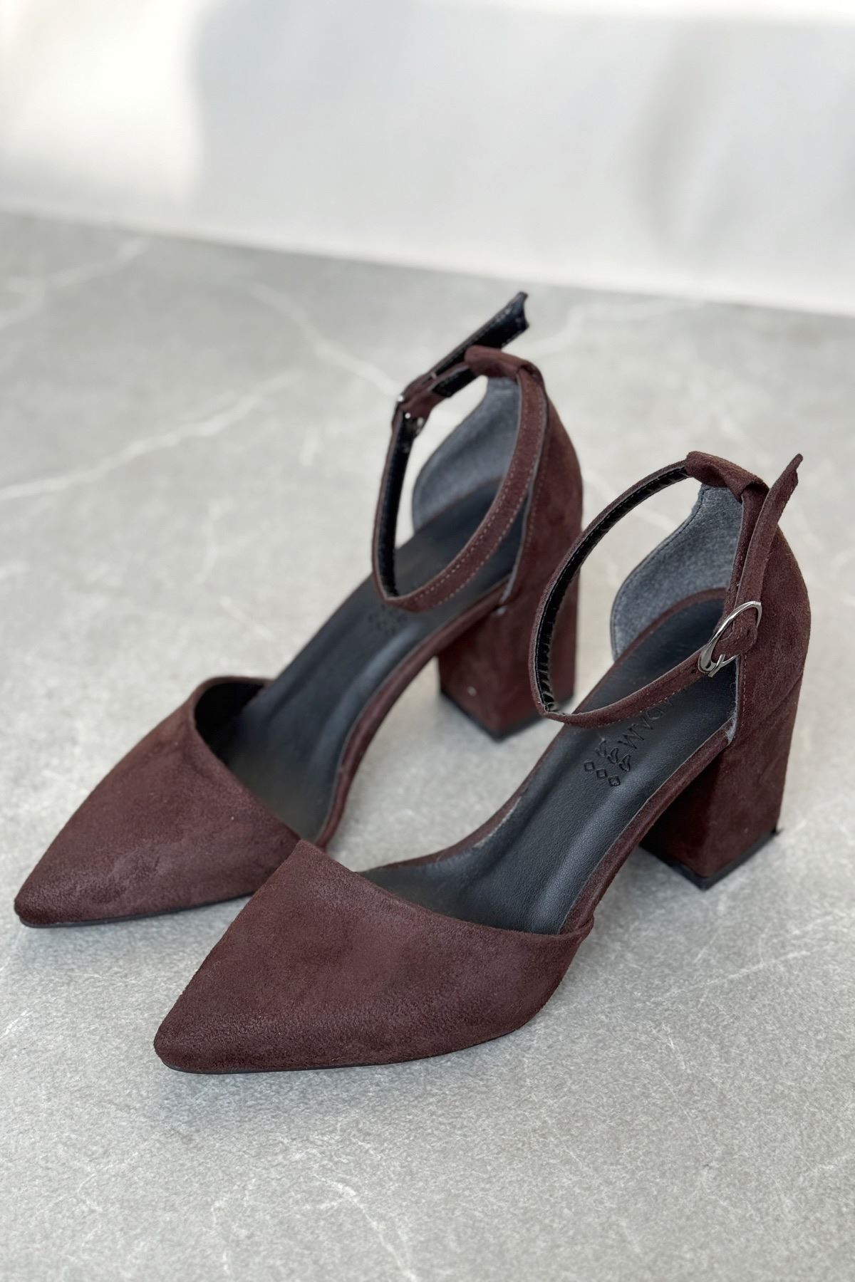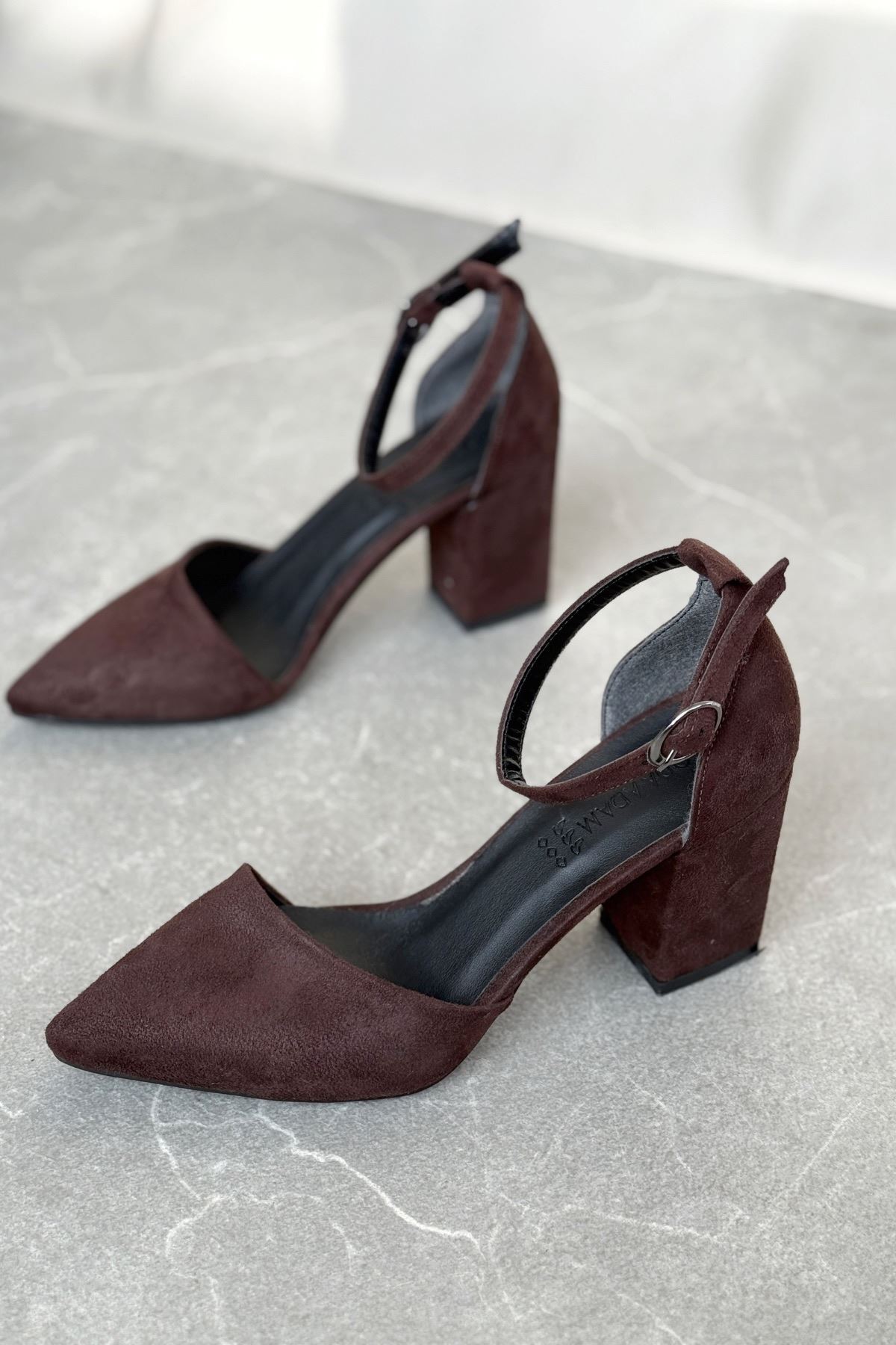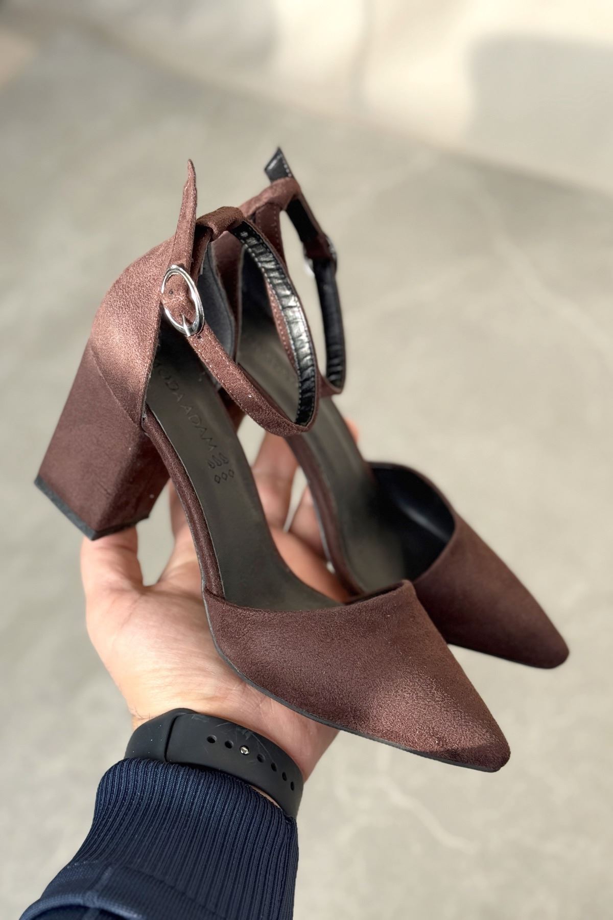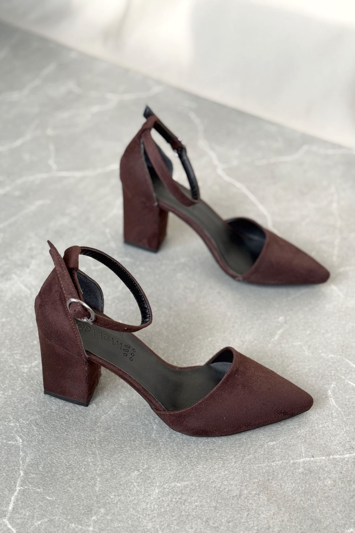 Kadın Celar Mat Deri Topuklu Ayakkabı - Kahve-Süet