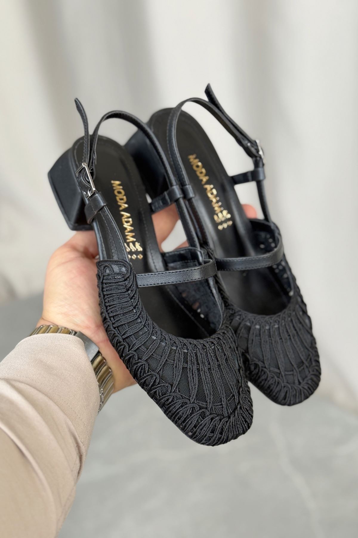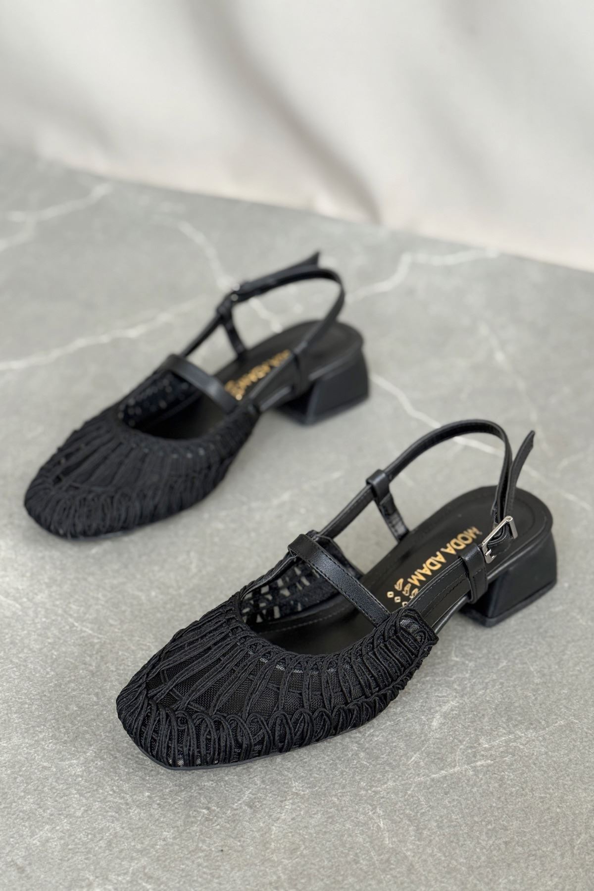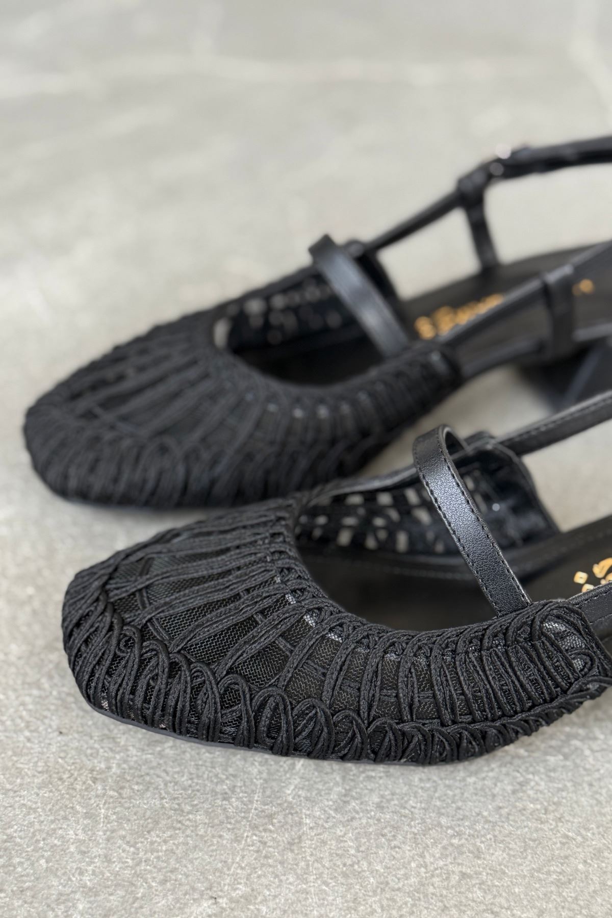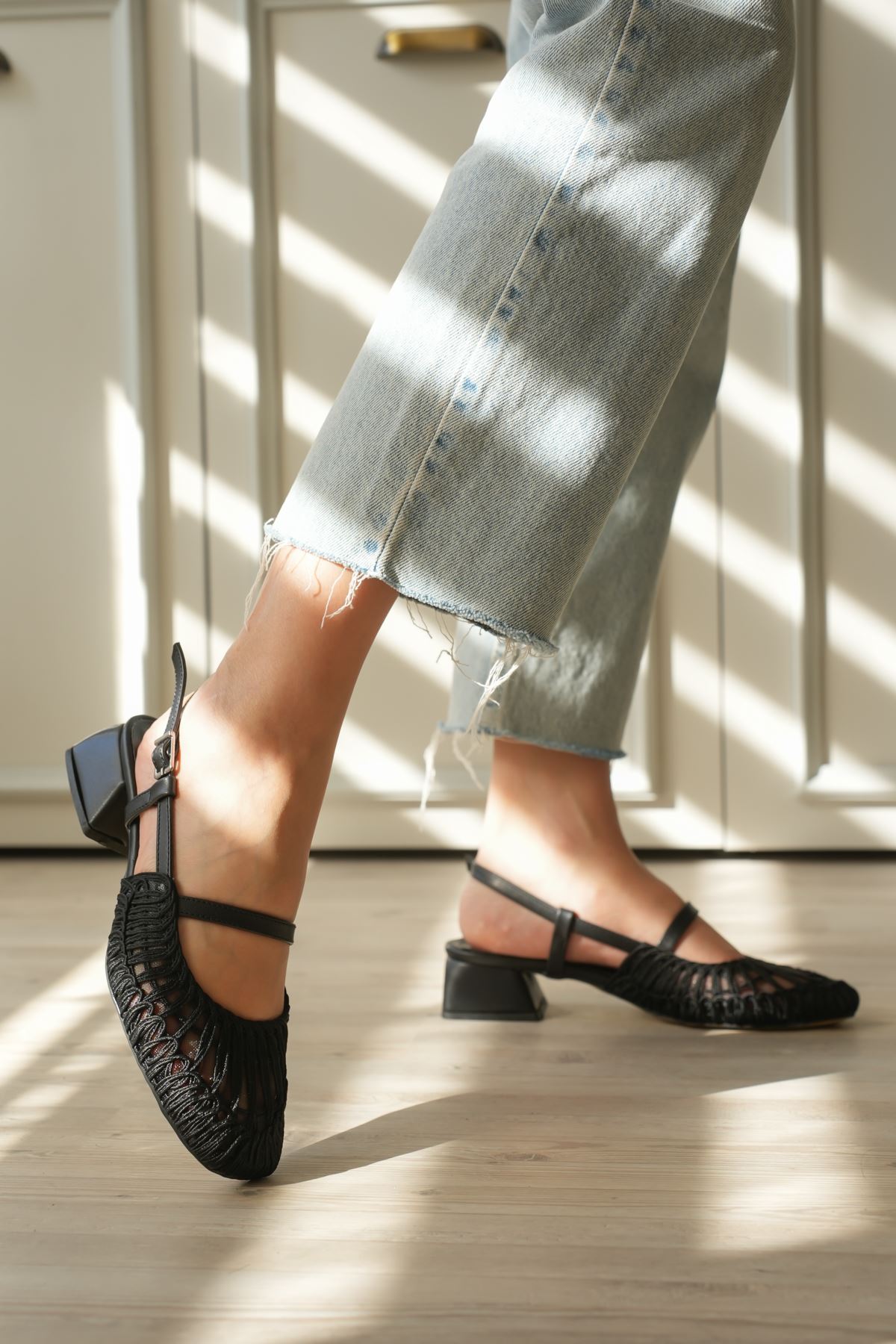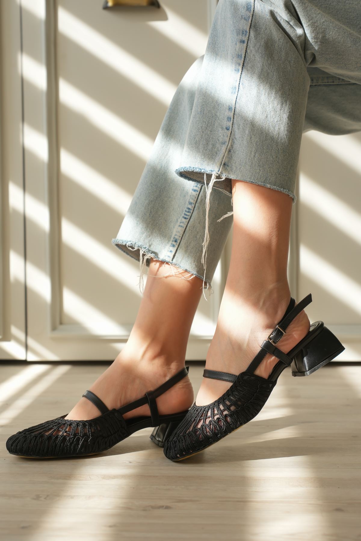Kadın Cerny Kısa Topuklu Örgülü Ayakkabı - Siyah