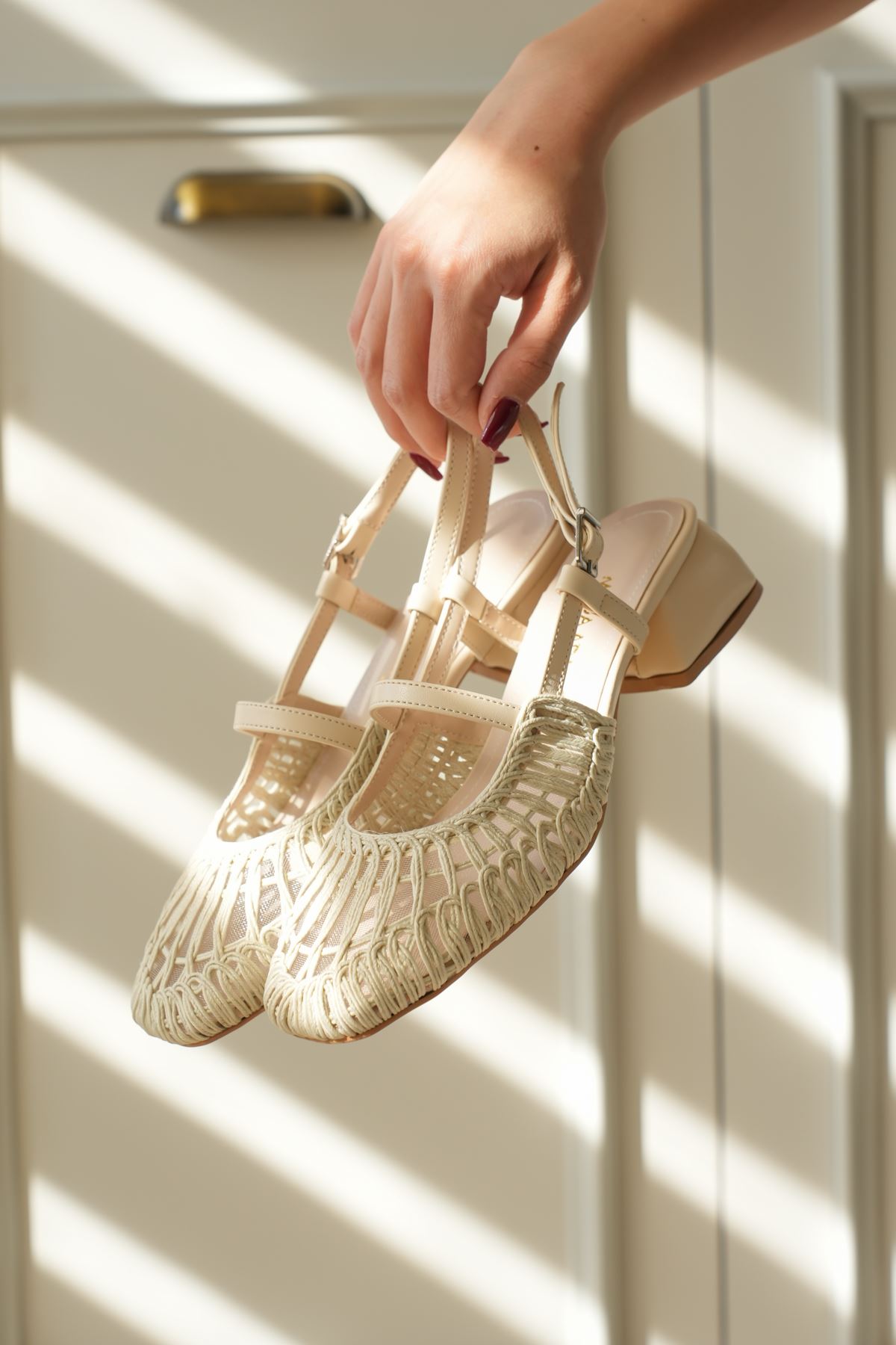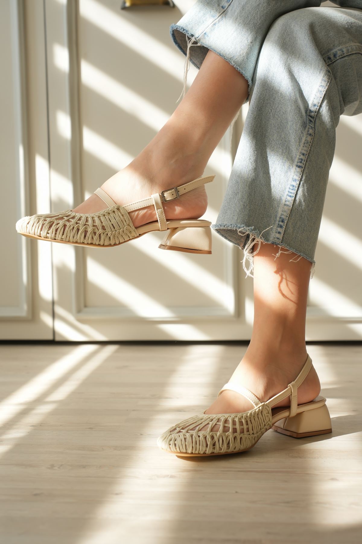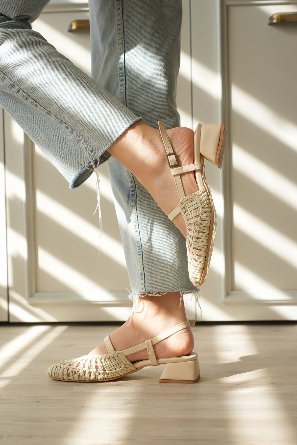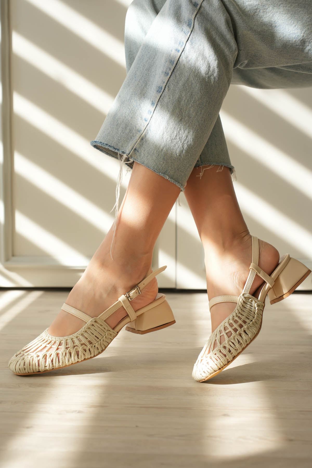 Kadın Cerny Kısa Topuklu Örgülü Ayakkabı - Ten