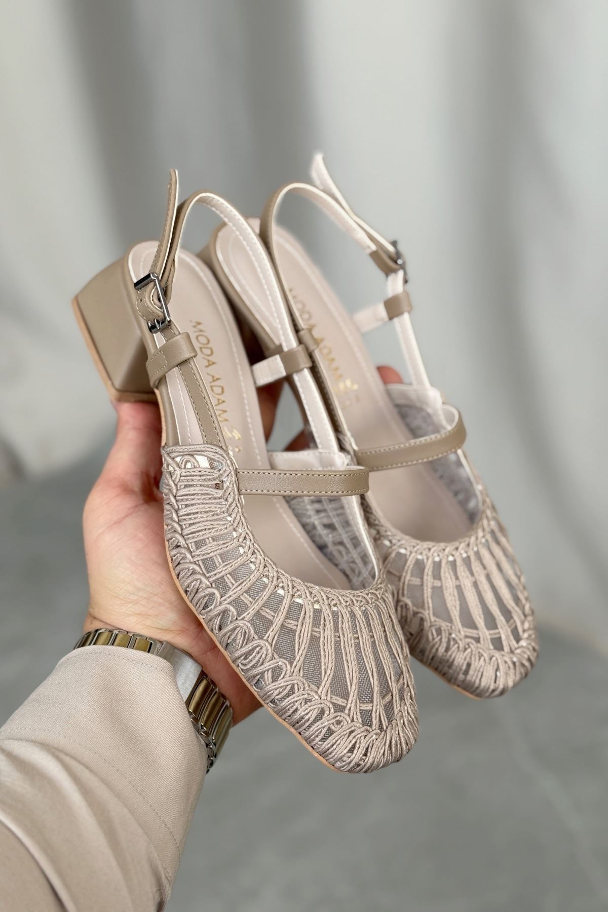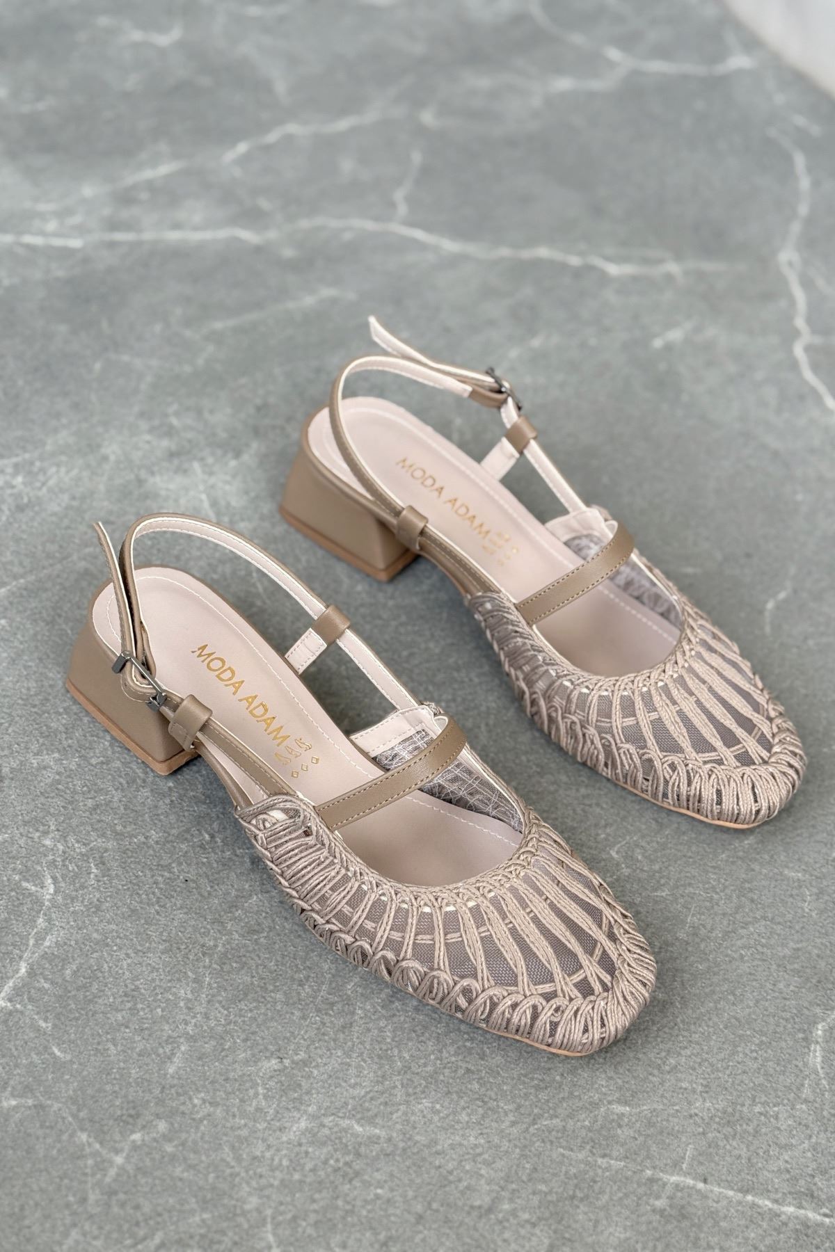 Kadın Cerny Kısa Topuklu Örgülü Ayakkabı - Vizon