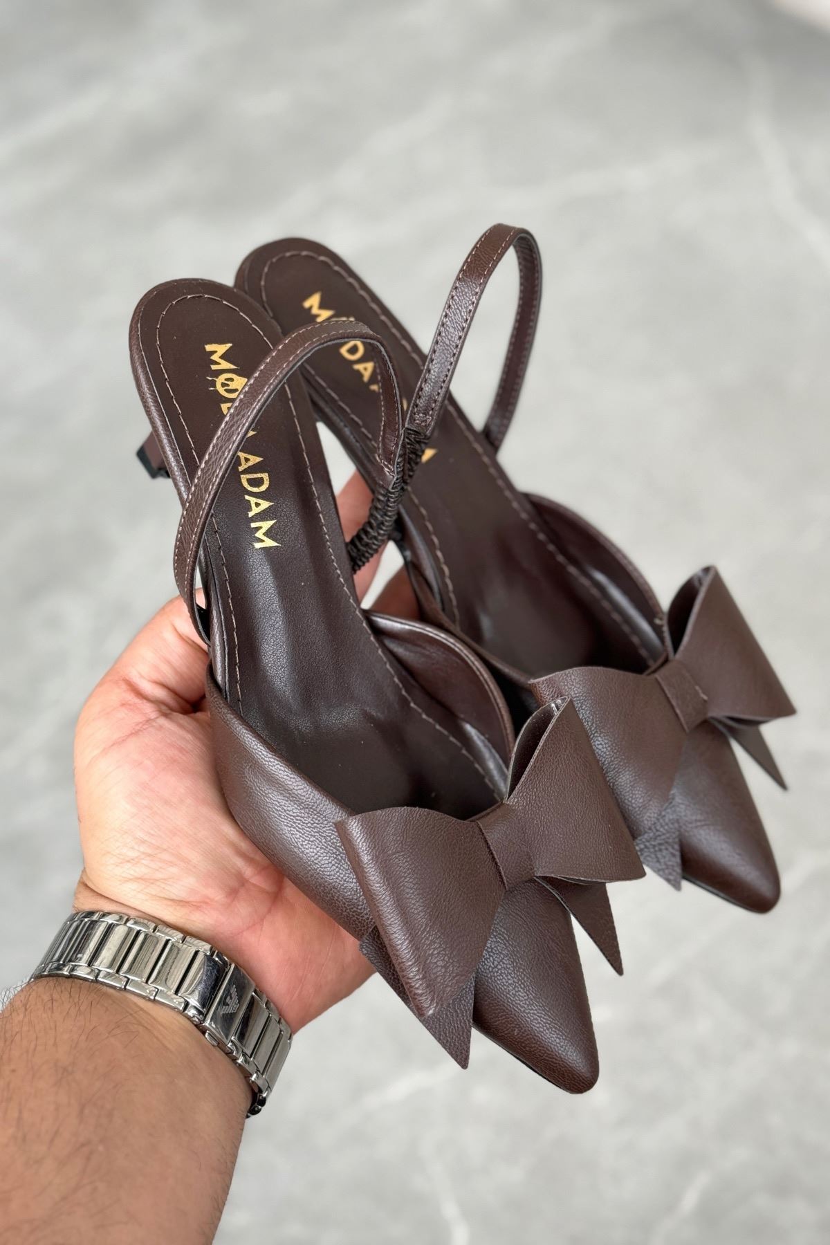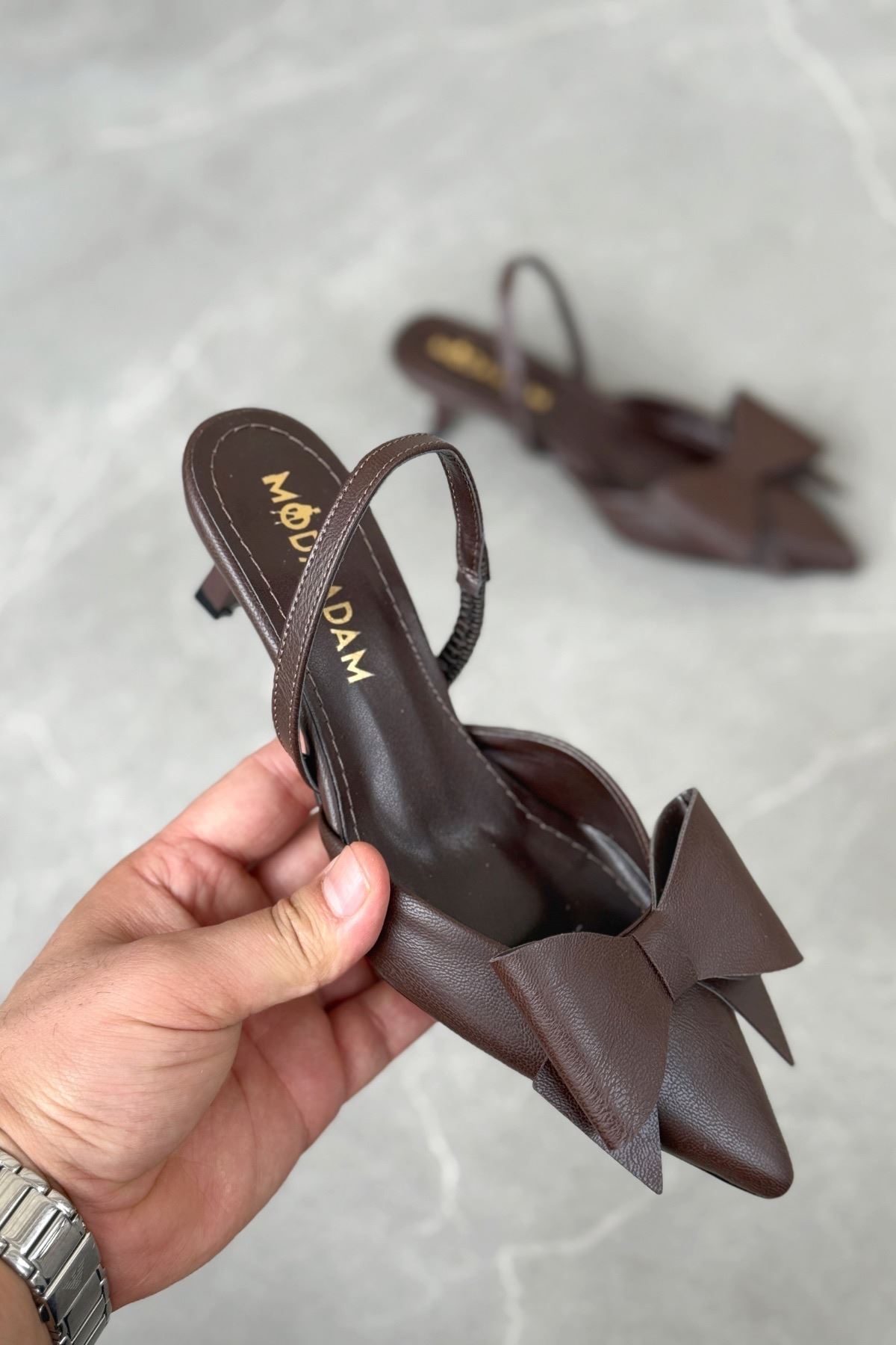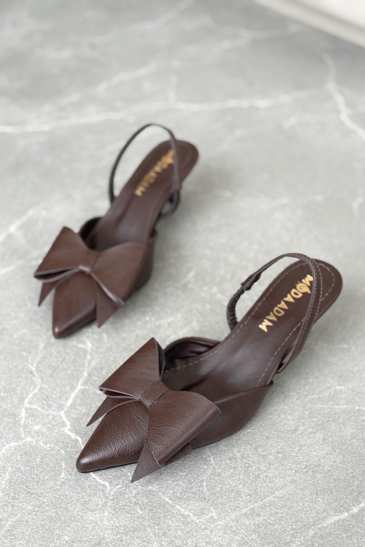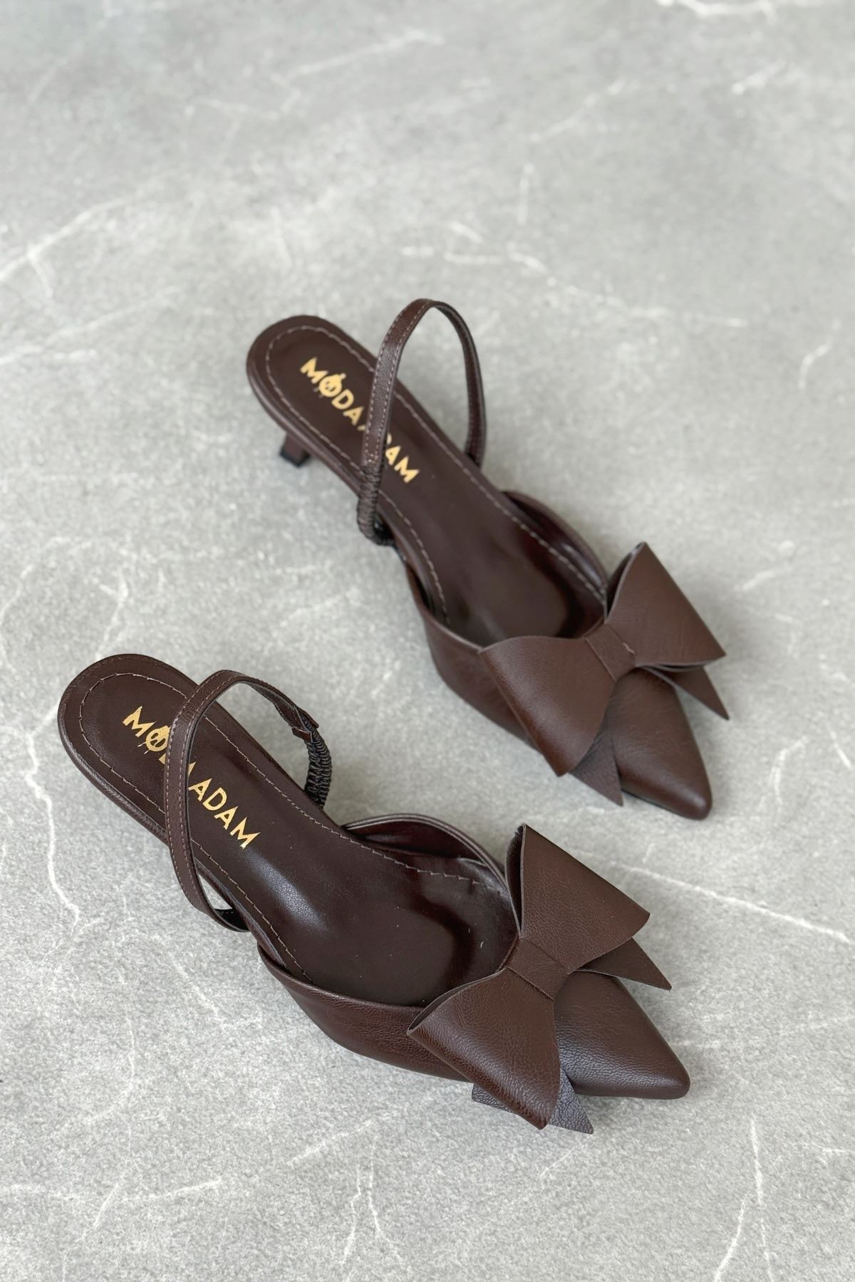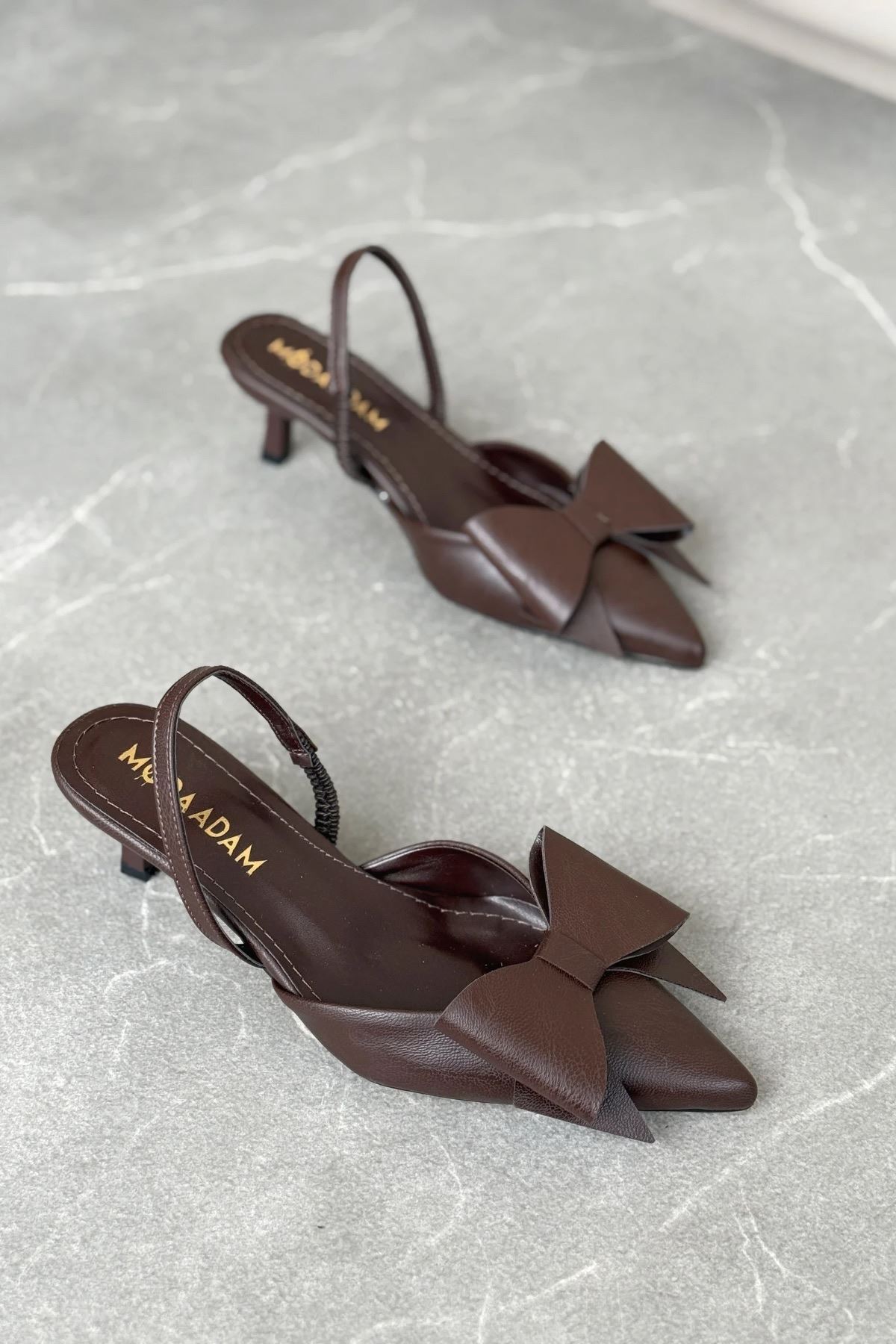 Kadın Cupe İnce Kısa Topuklu Ayakkabı - Kahve-Deri