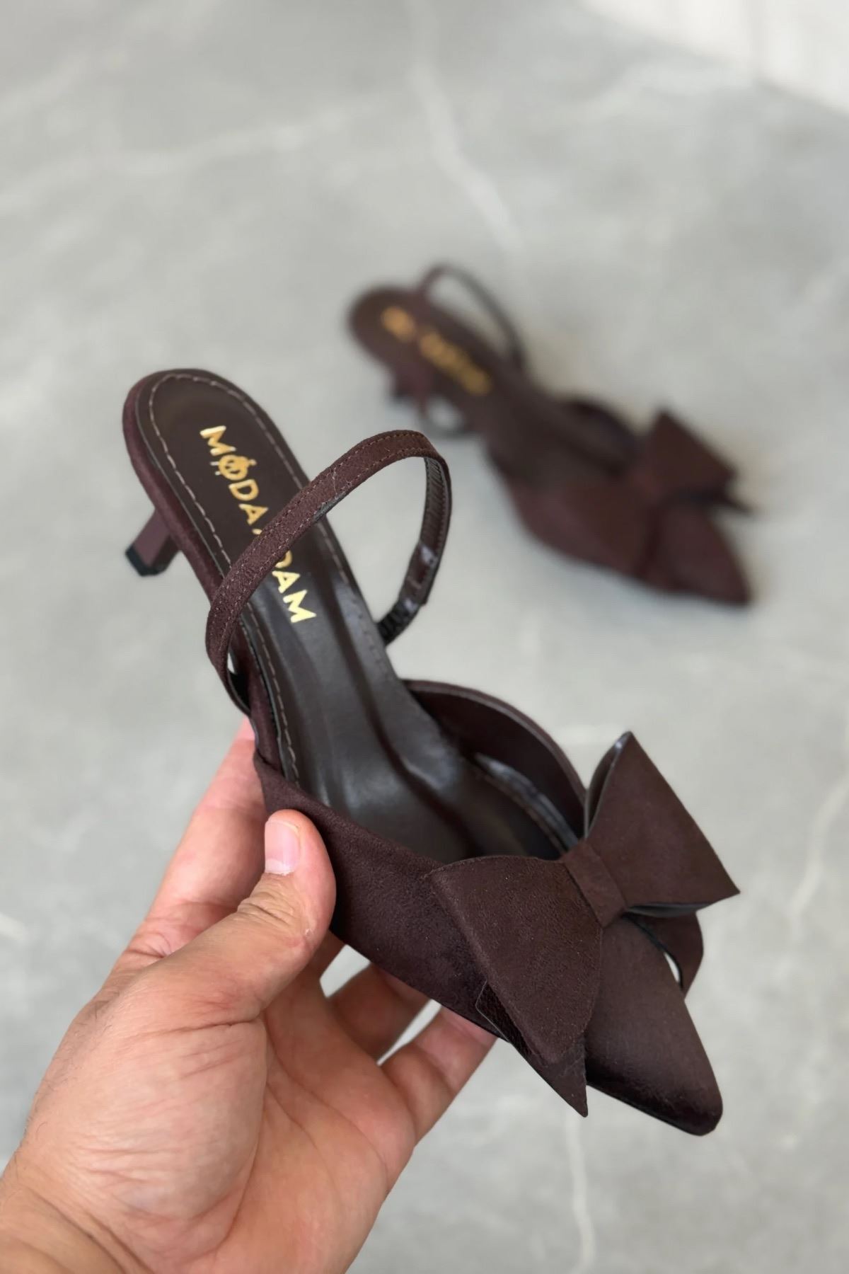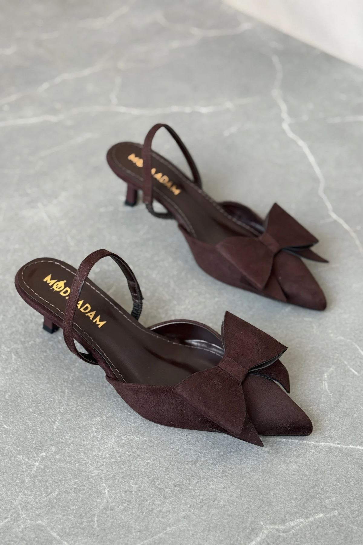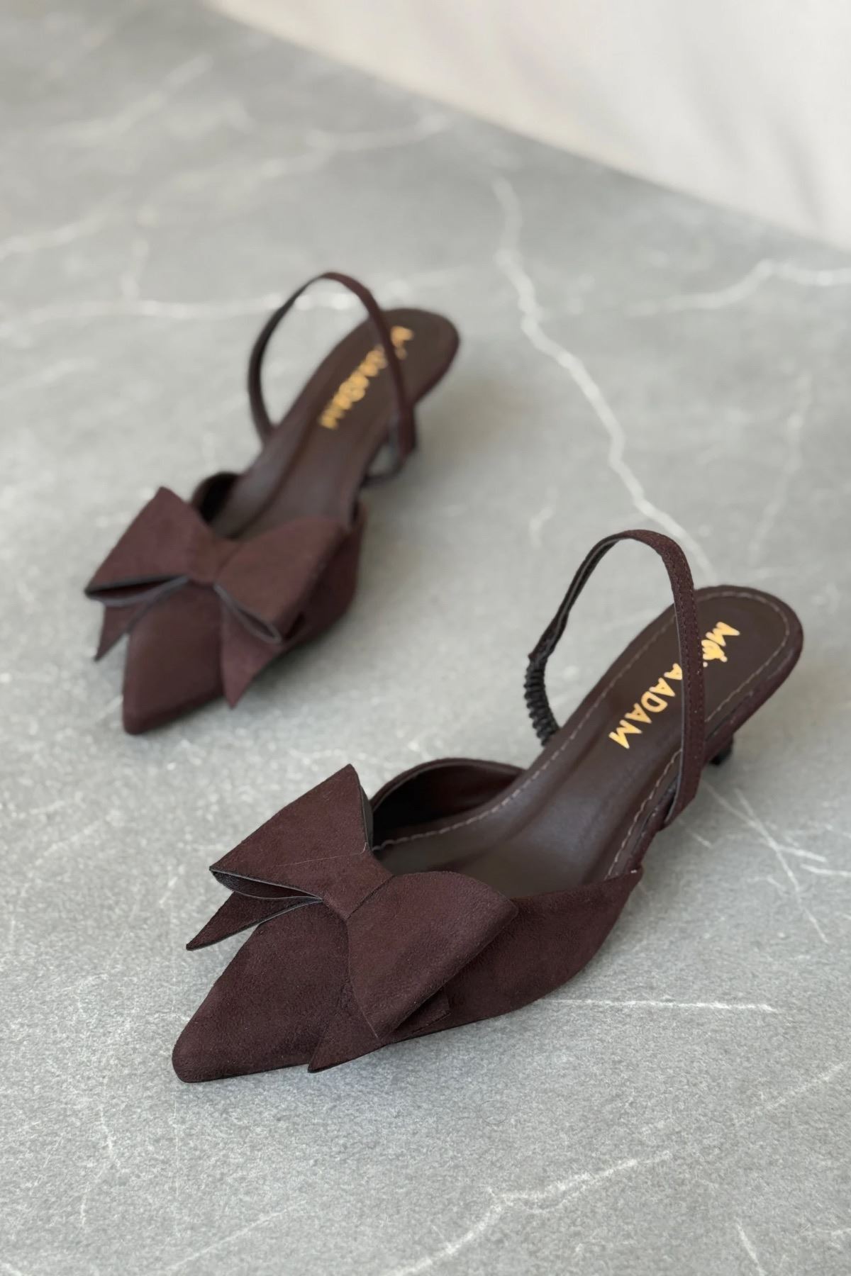 Kadın Cupe İnce Kısa Topuklu Ayakkabı - Kahve-Süet