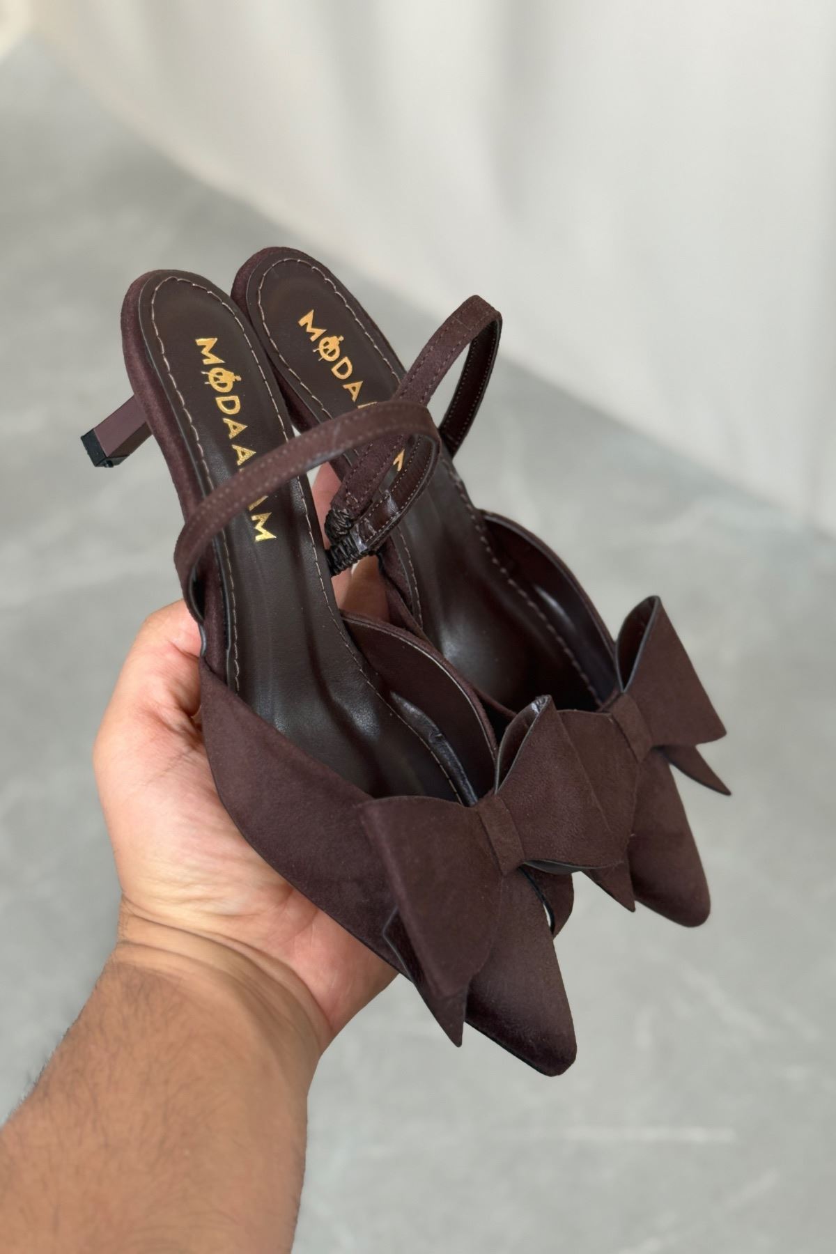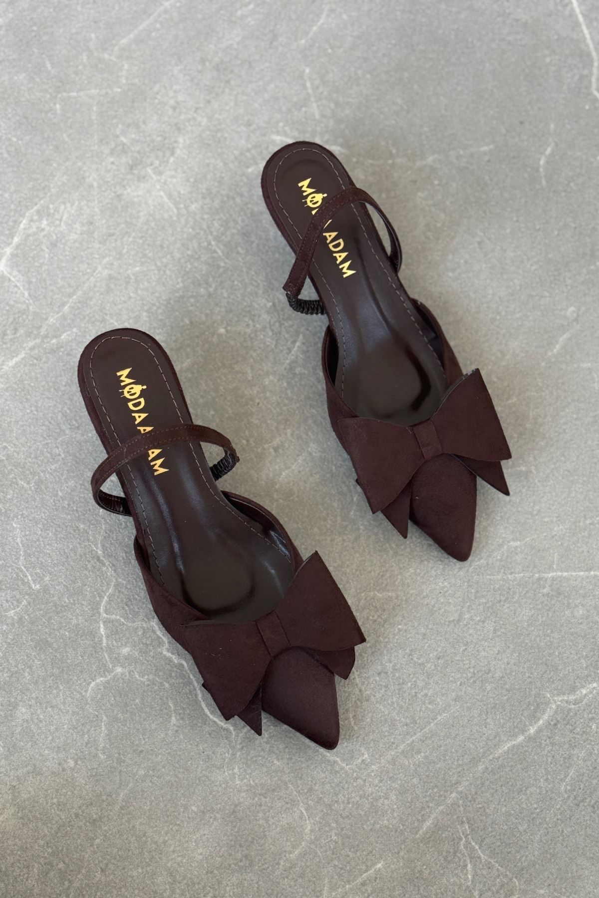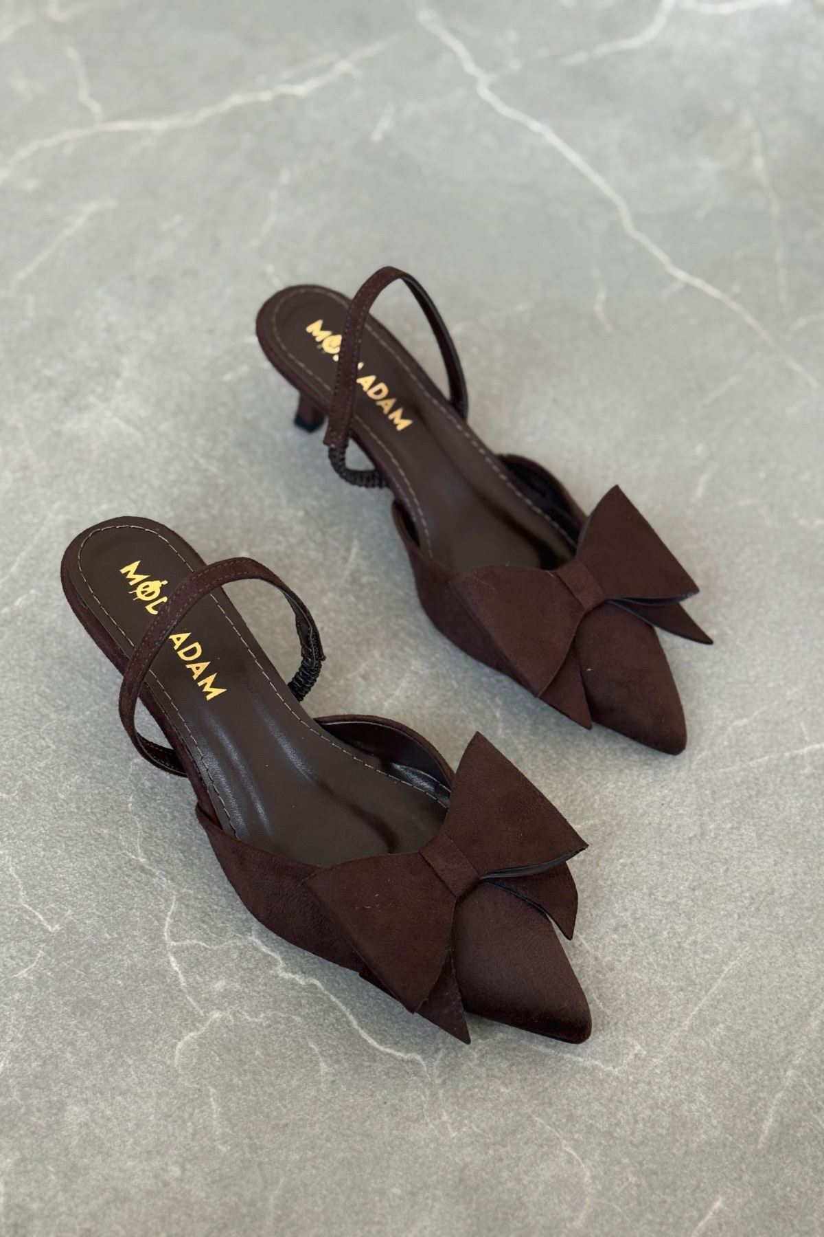 Kadın Cupe İnce Kısa Topuklu Ayakkabı - Kahve-Süet