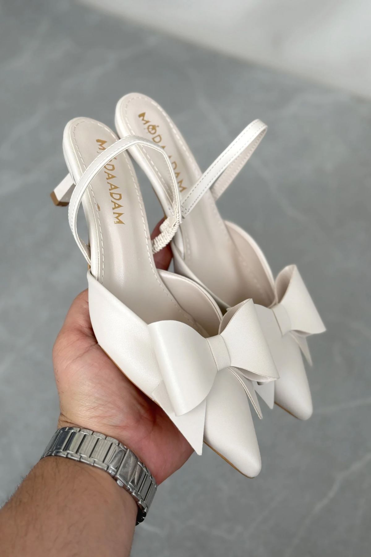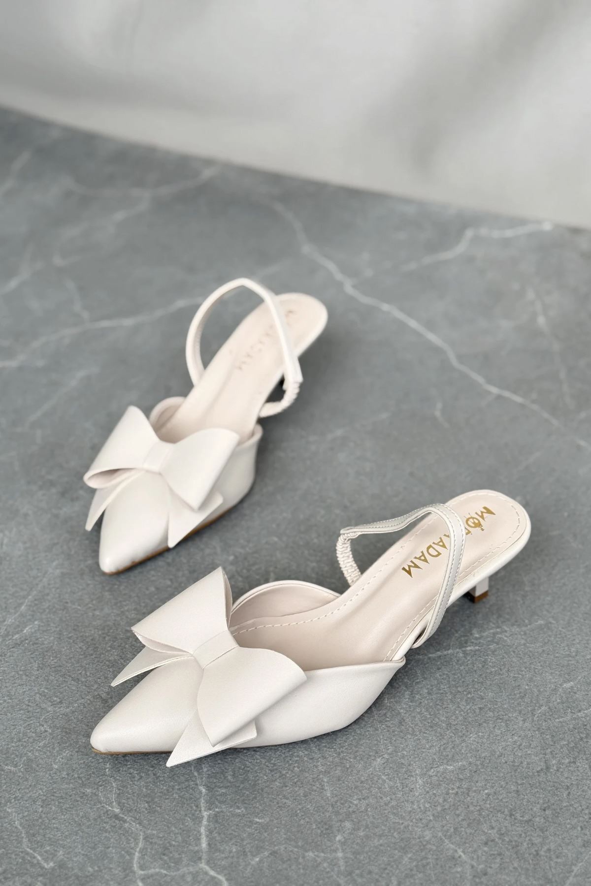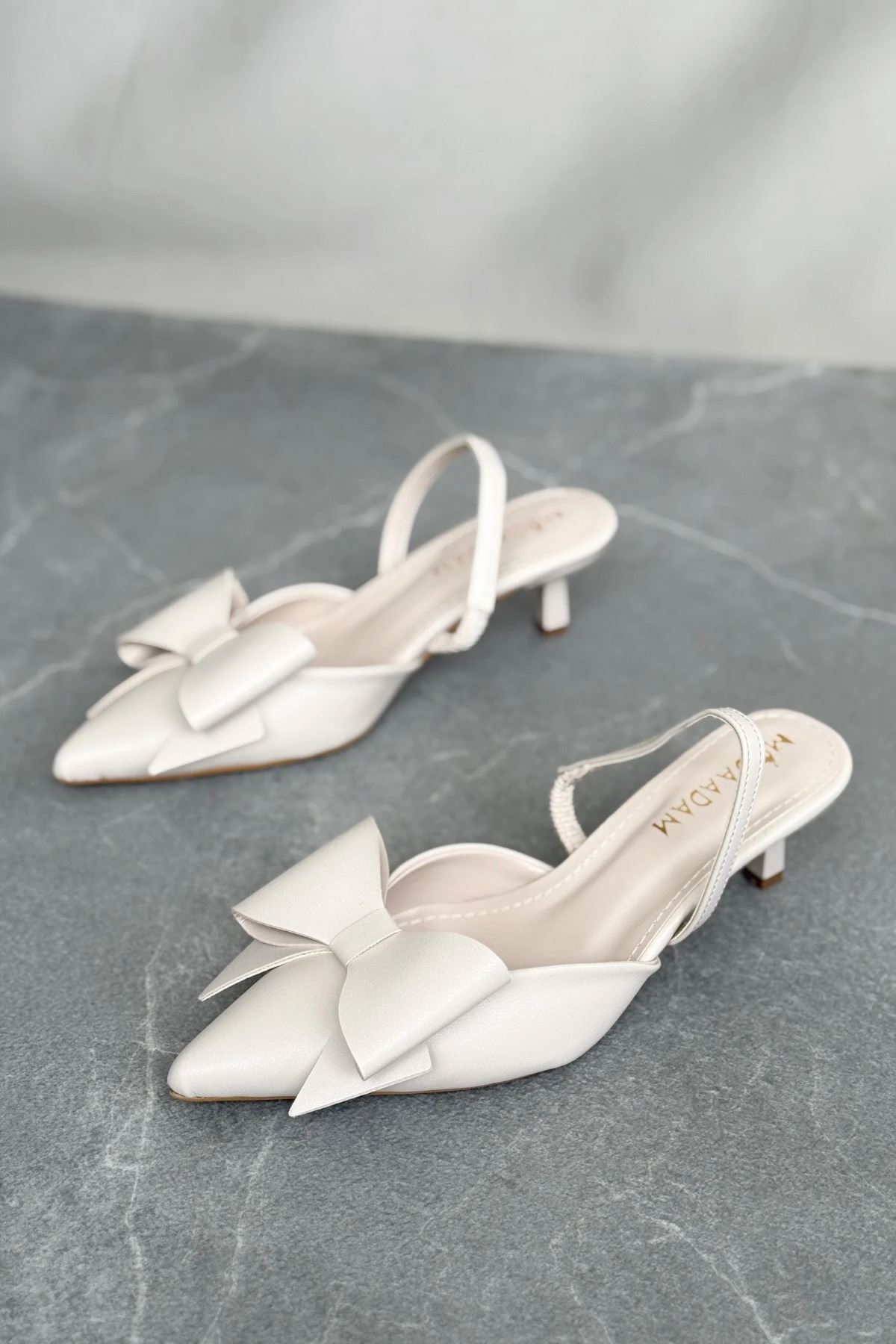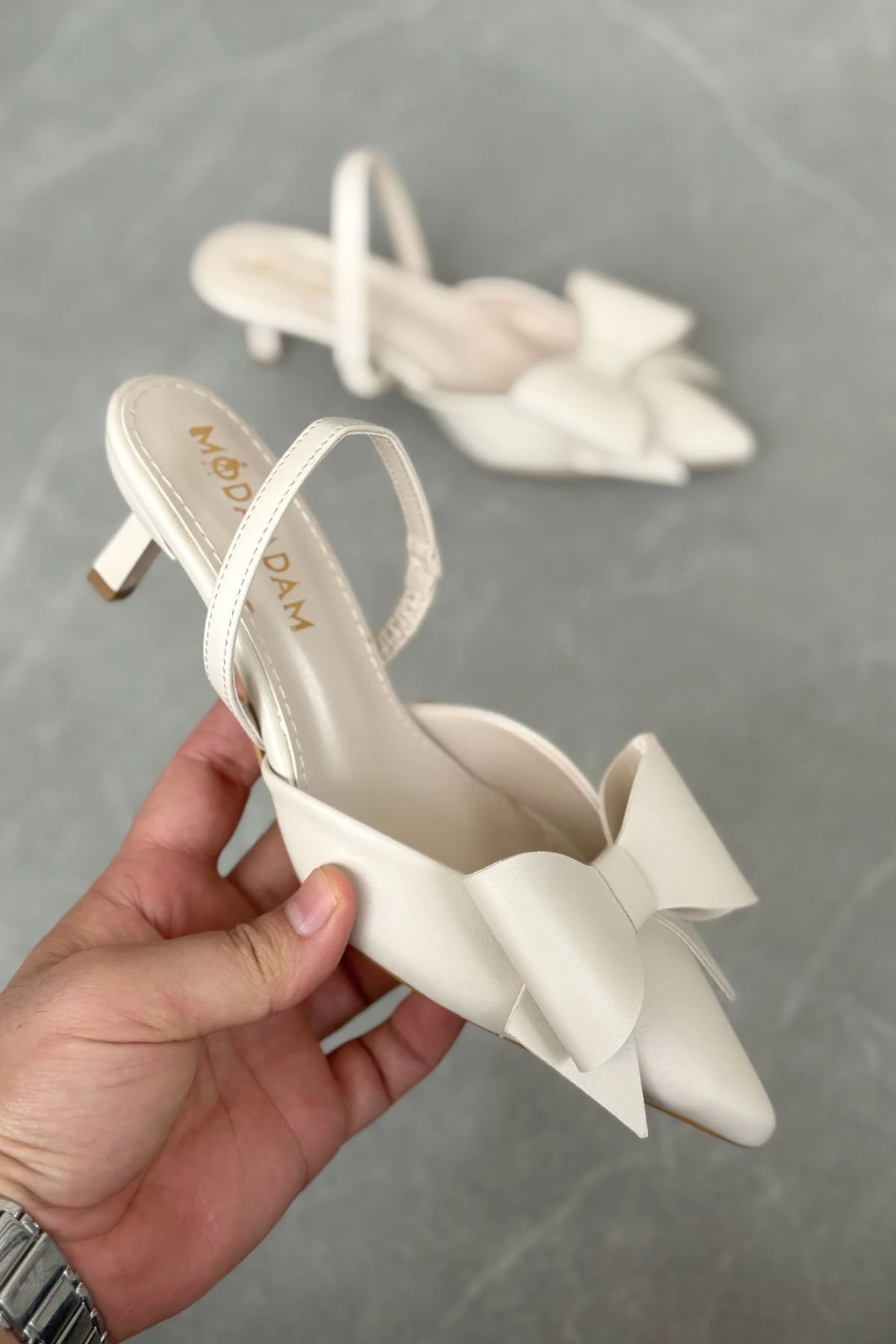 Kadın Cupe İnce Kısa Topuklu Ayakkabı - Ten Deri