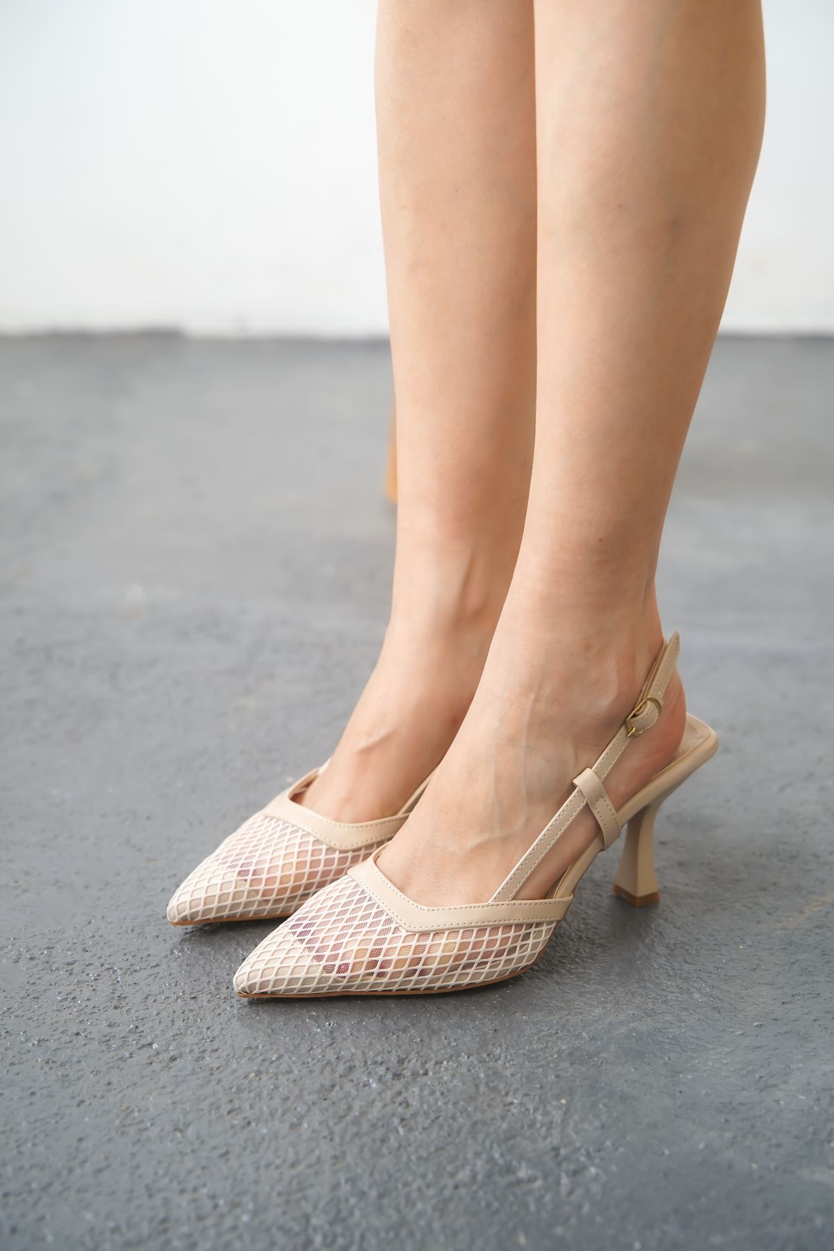 Kadın Dveyn Fileli Topuklu Ayakkabı - Ten