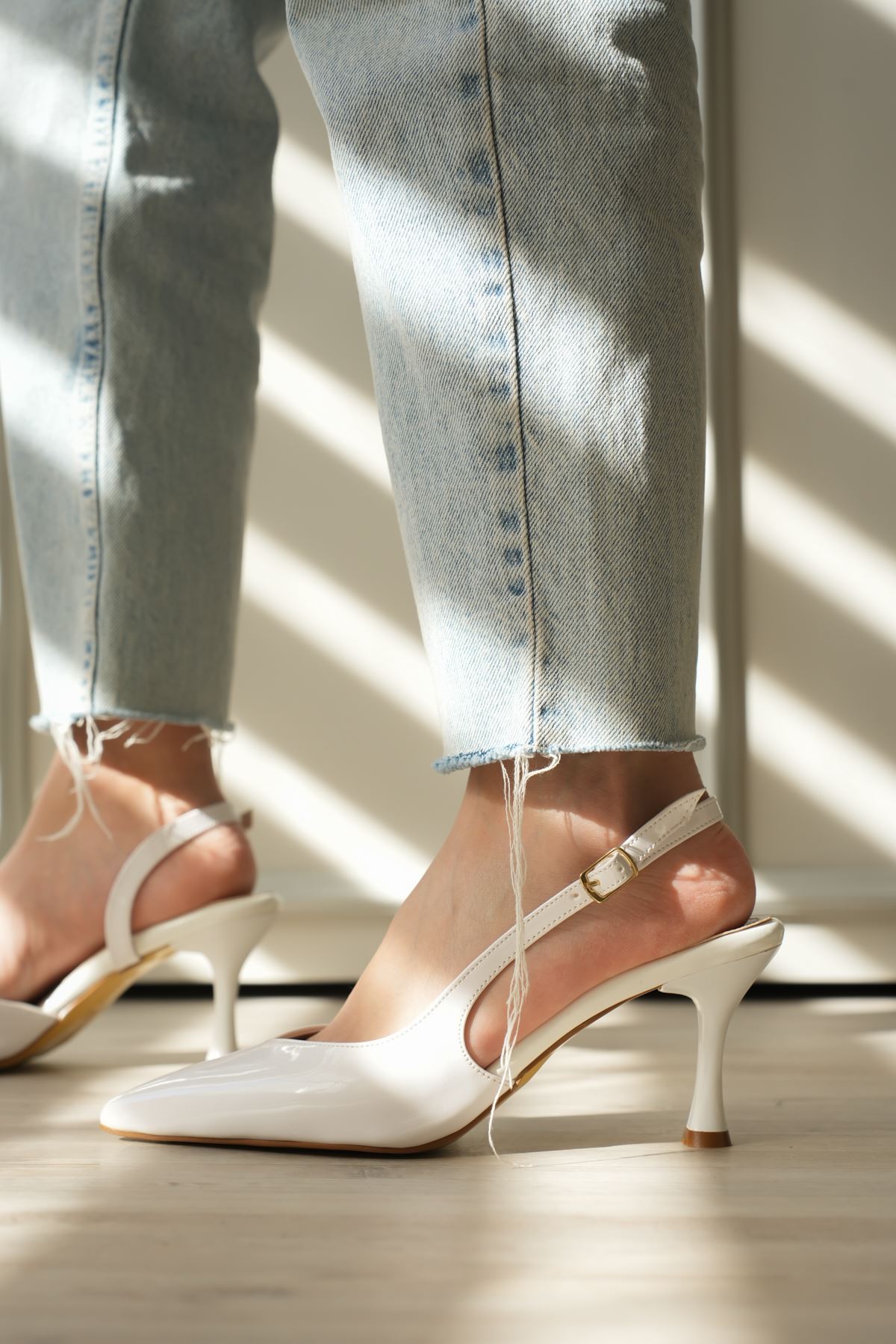 Kadın Eleni İnce Topuklu Ayakkabı - Beyaz-Rugan