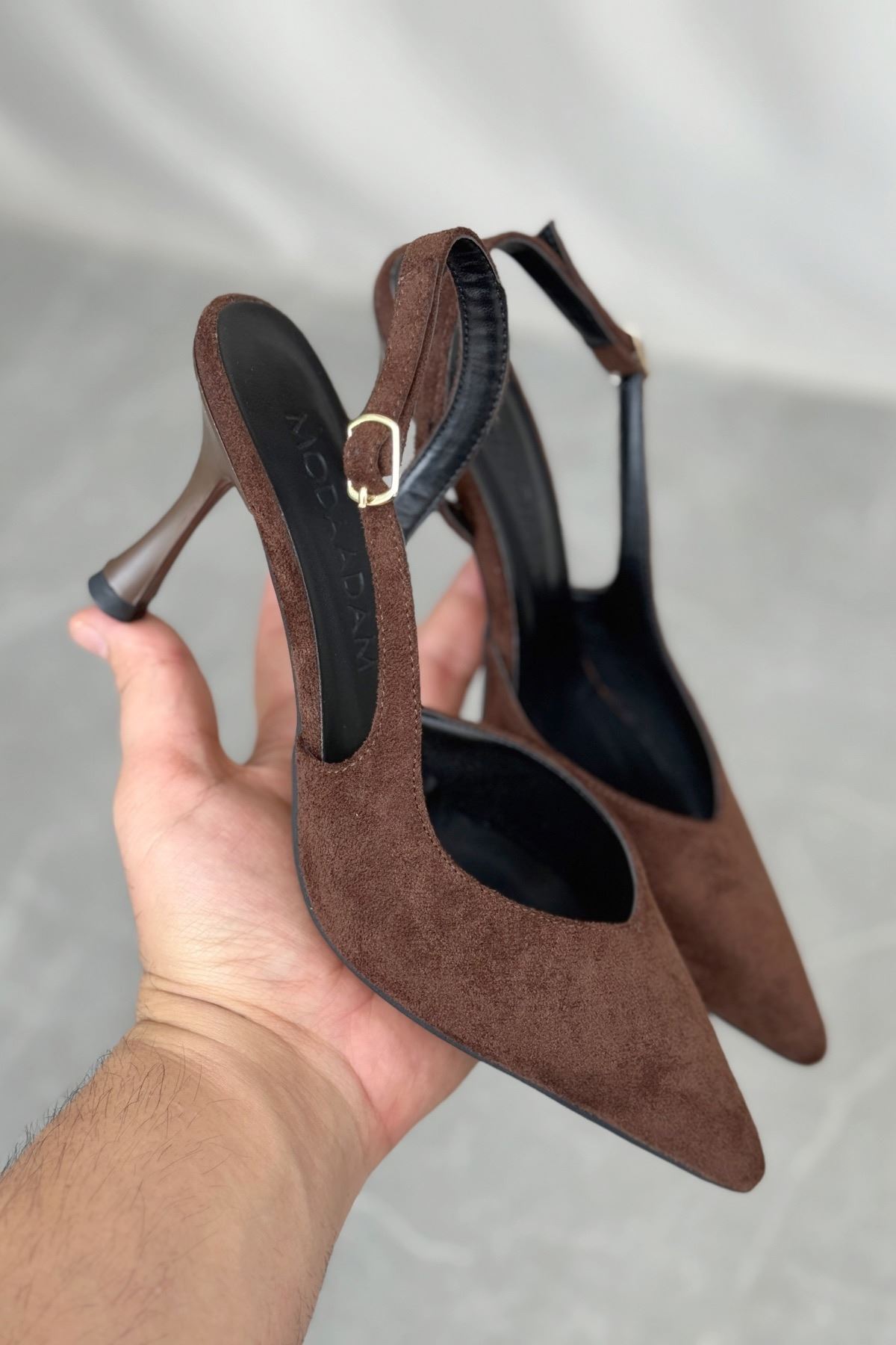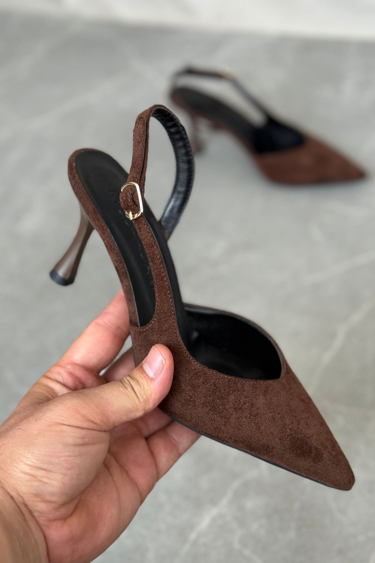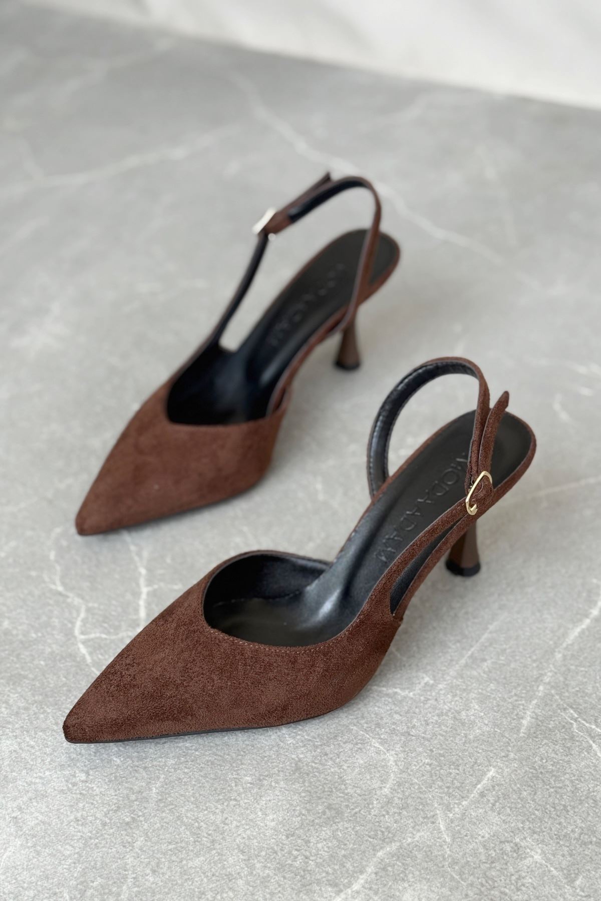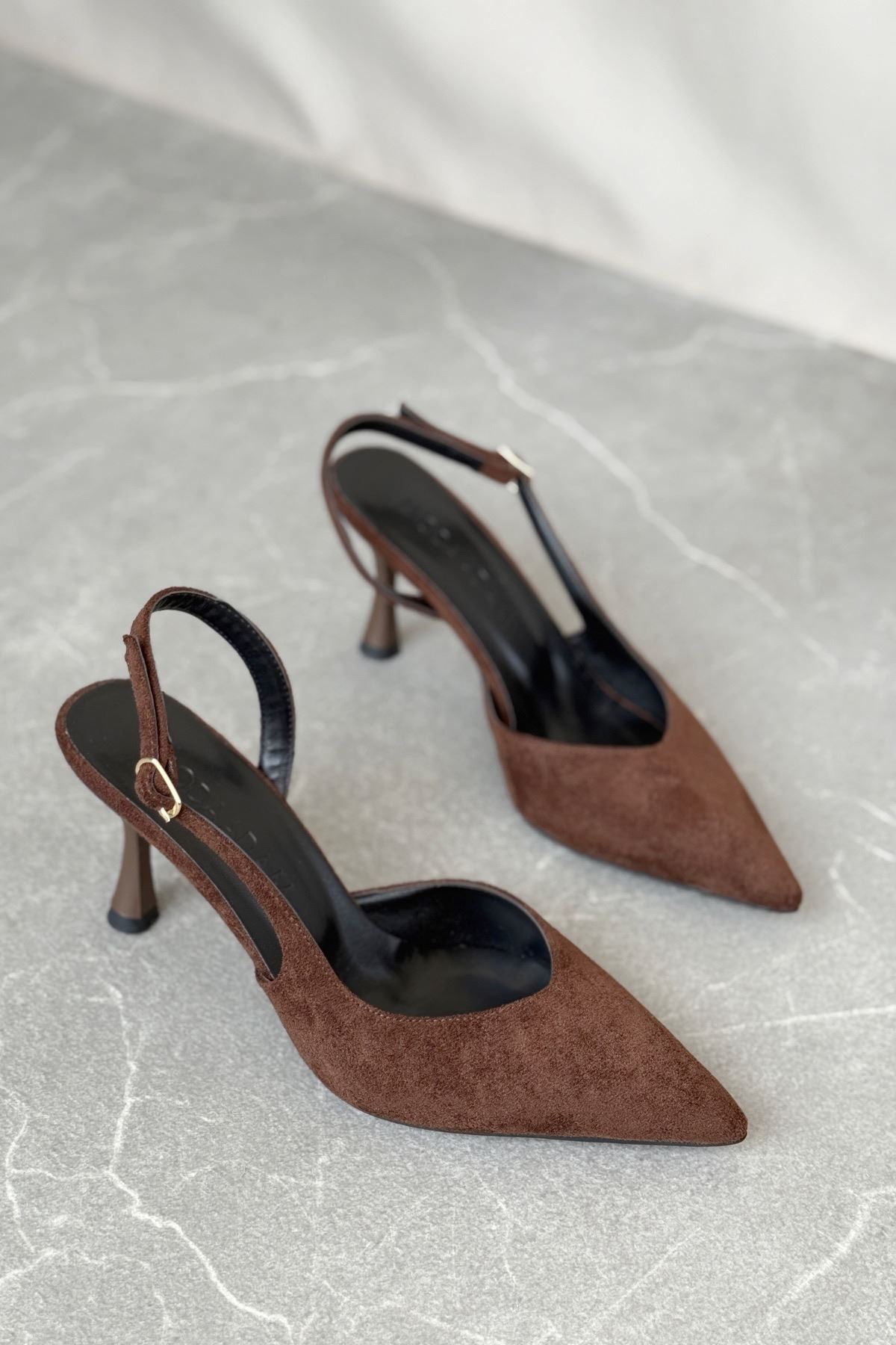 Kadın Eleni İnce Topuklu Ayakkabı - Kahve-Süet