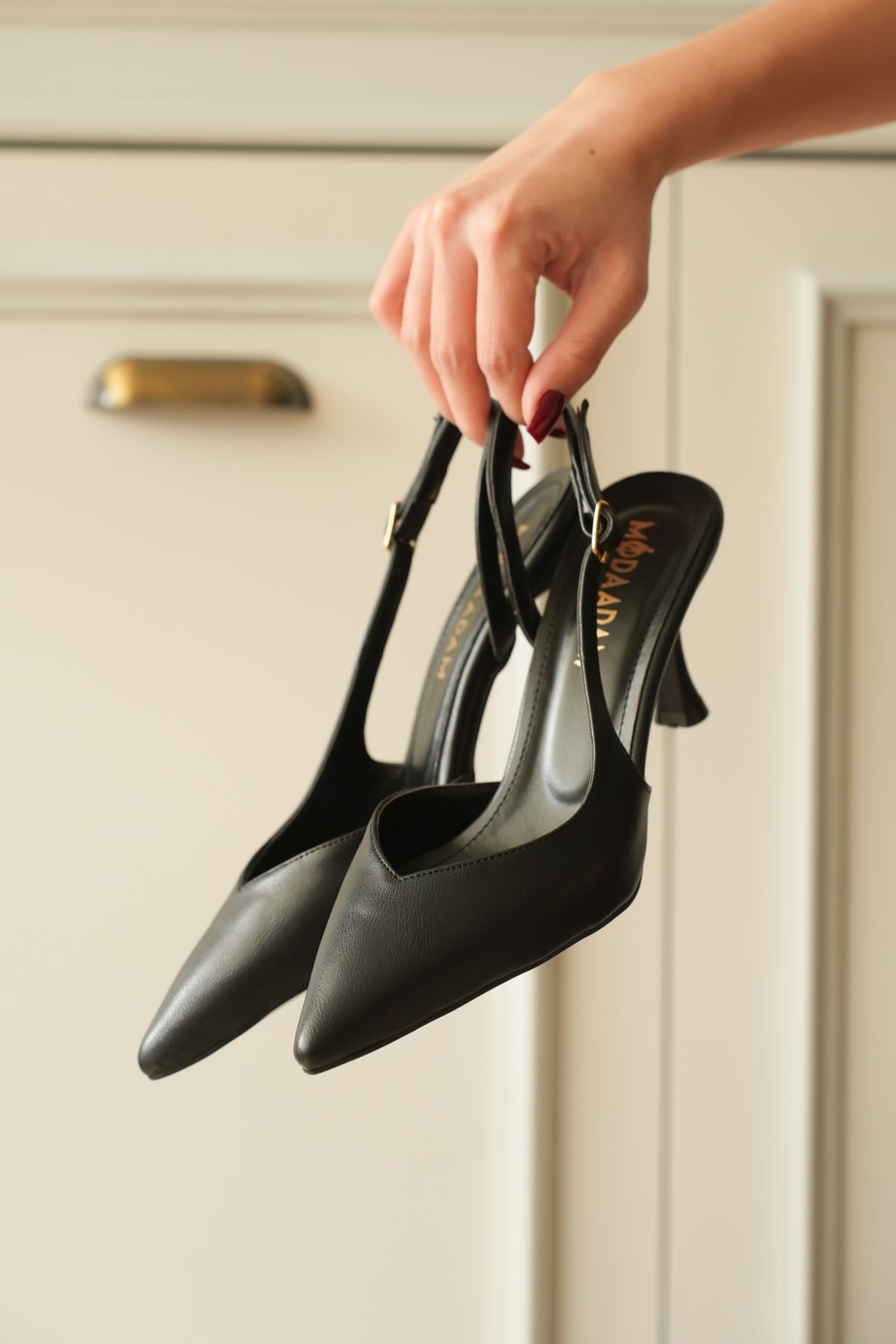 Kadın Eleni İnce Topuklu Ayakkabı - siyah-deri