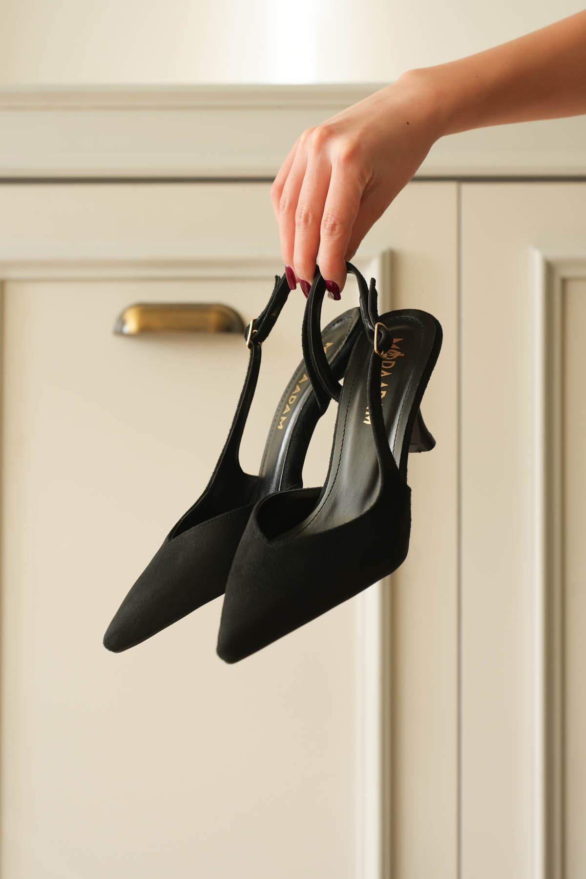 Kadın Eleni İnce Topuklu Ayakkabı - Siyah Süet