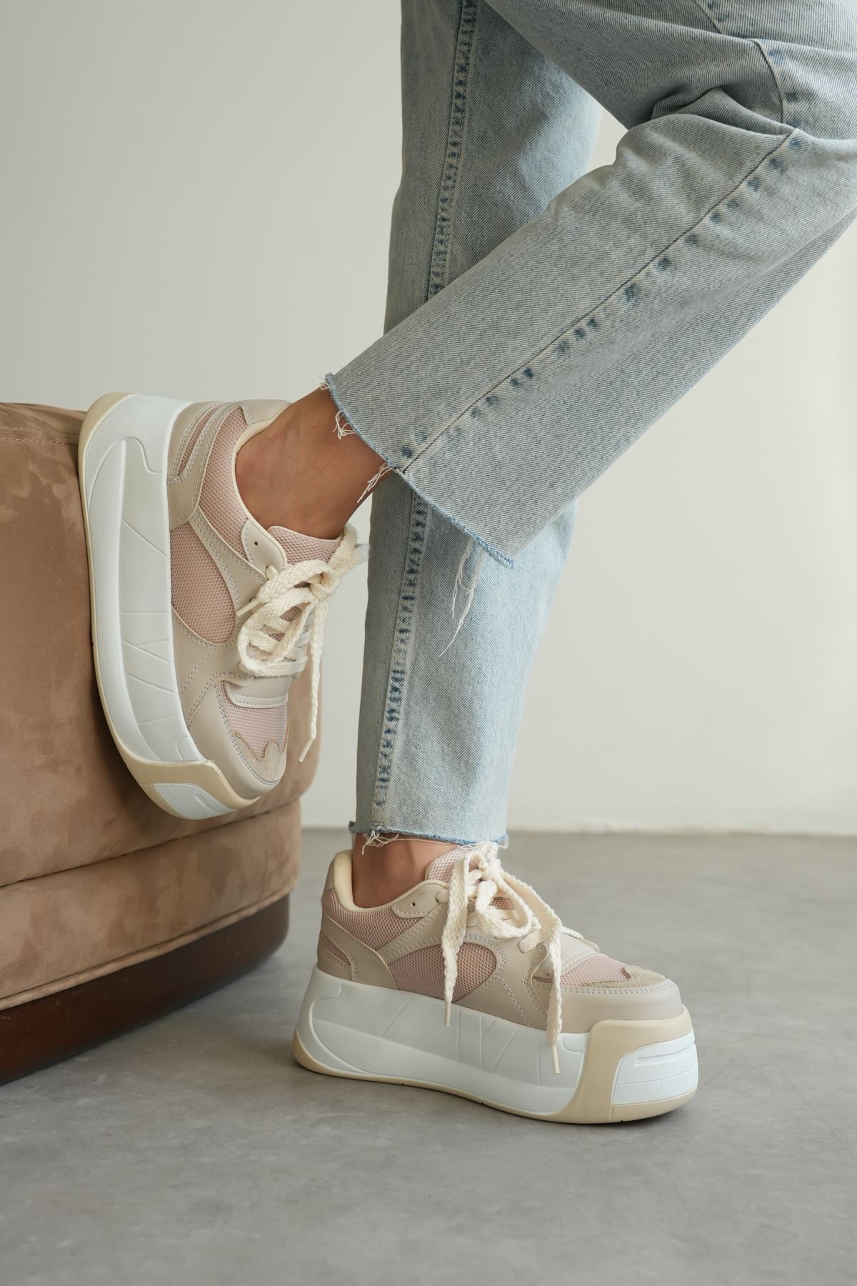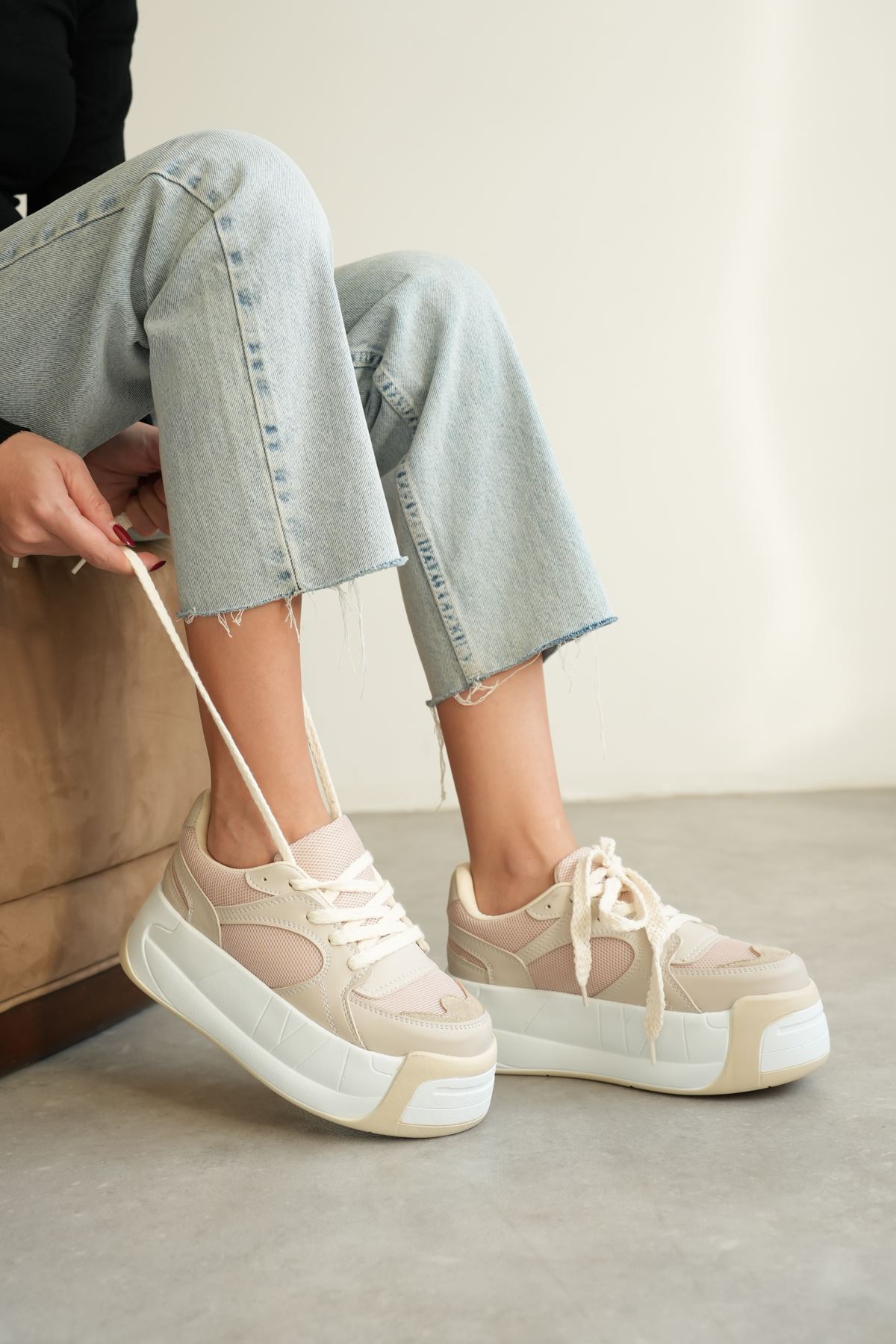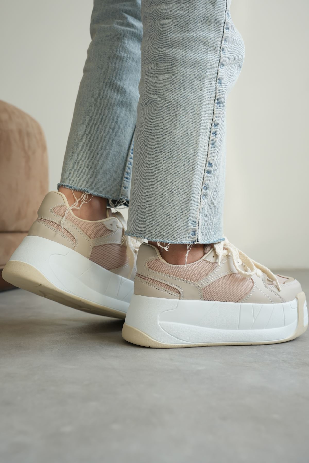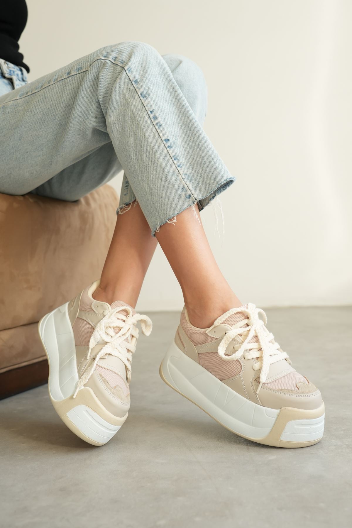 Kadın Gustov Kalın Tabanlı Spor Ayakkabı - Beyaz-Bej