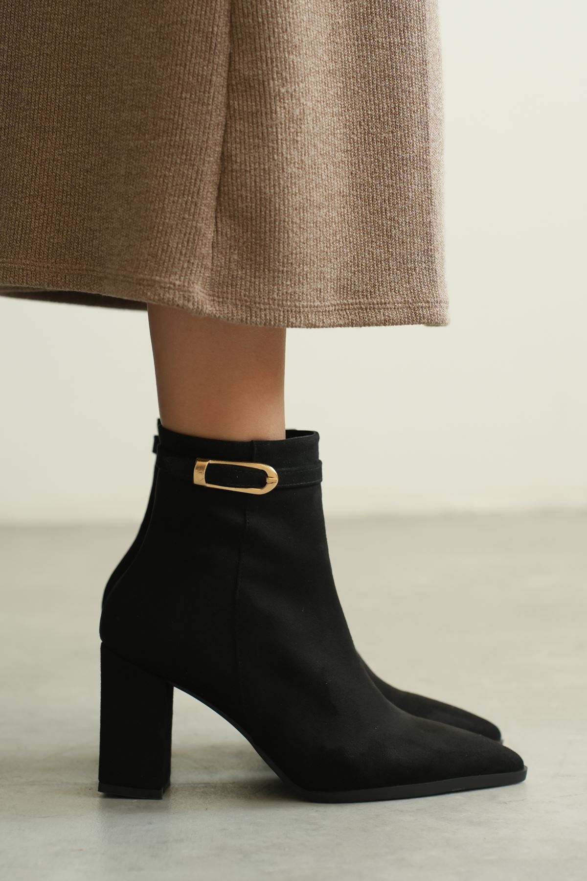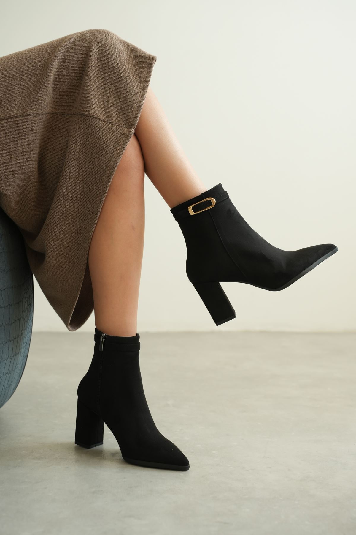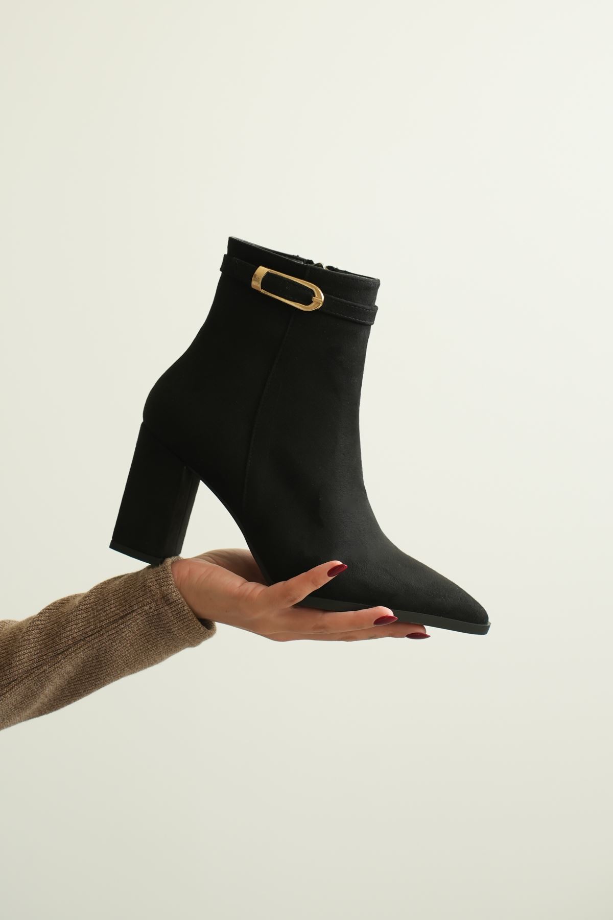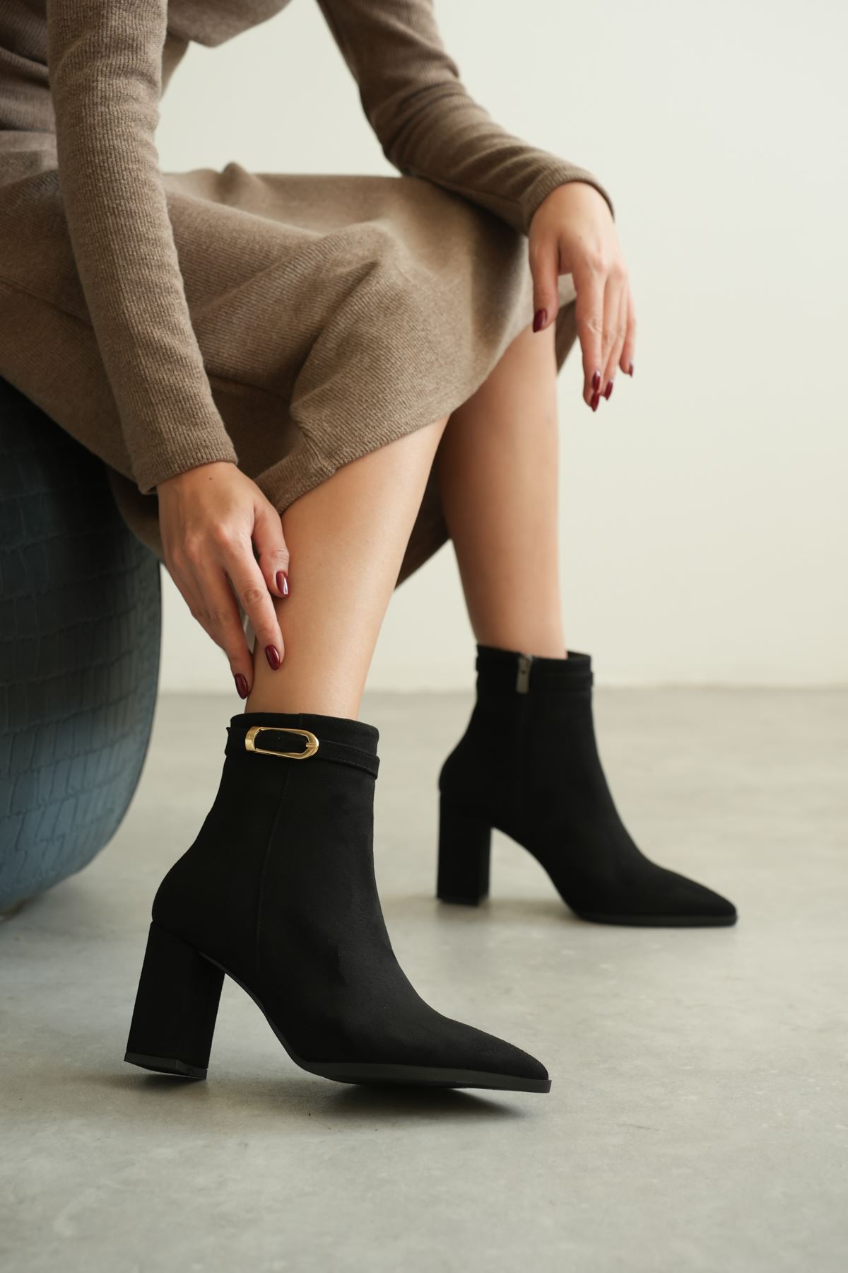 Kadın London Kalın Topuklu Tokalı Bot - Siyah Süet