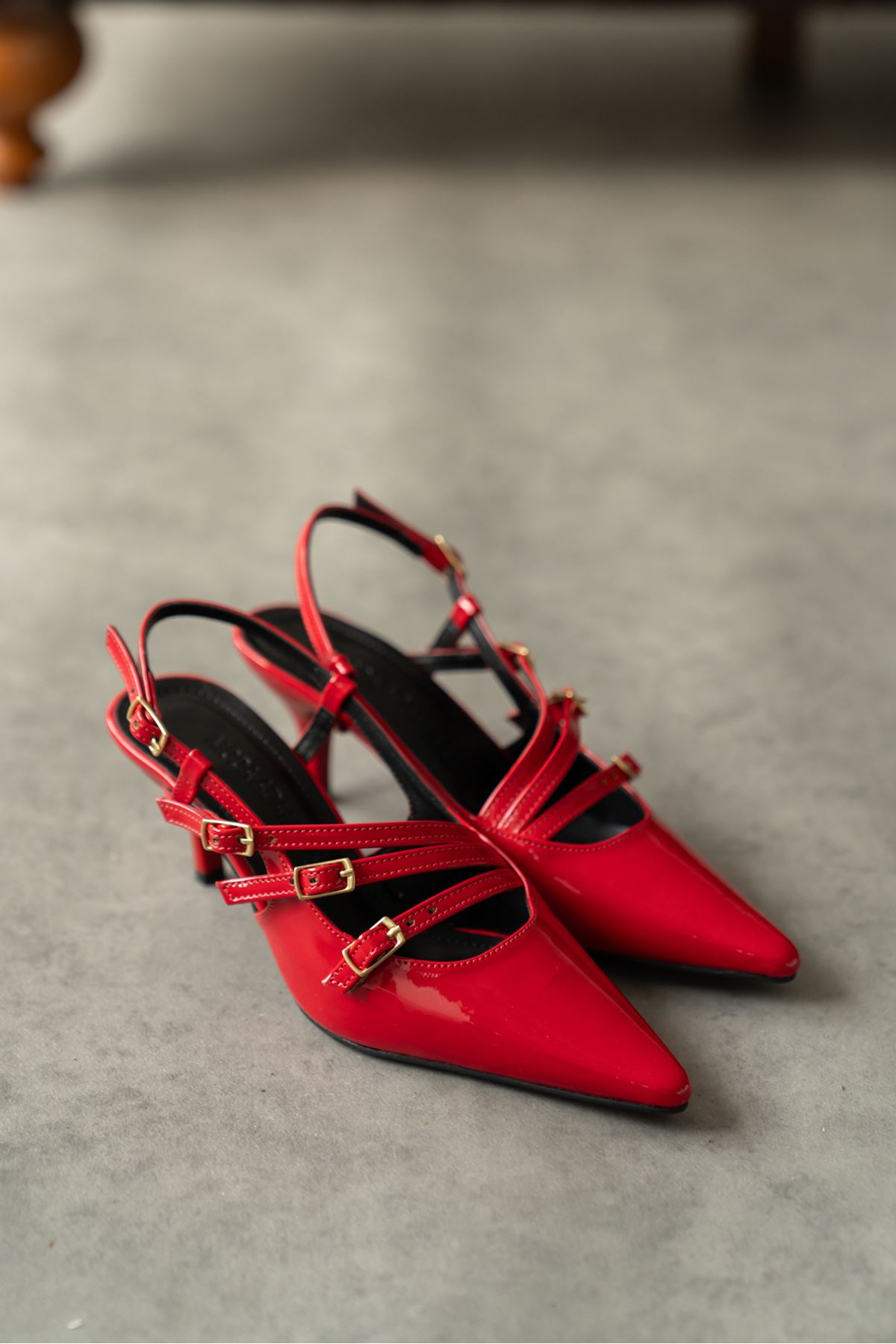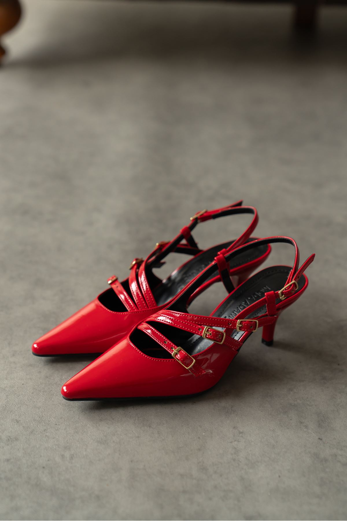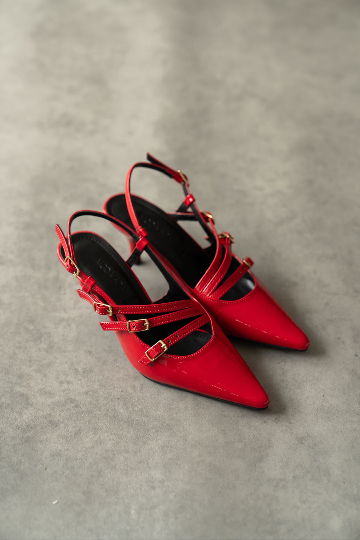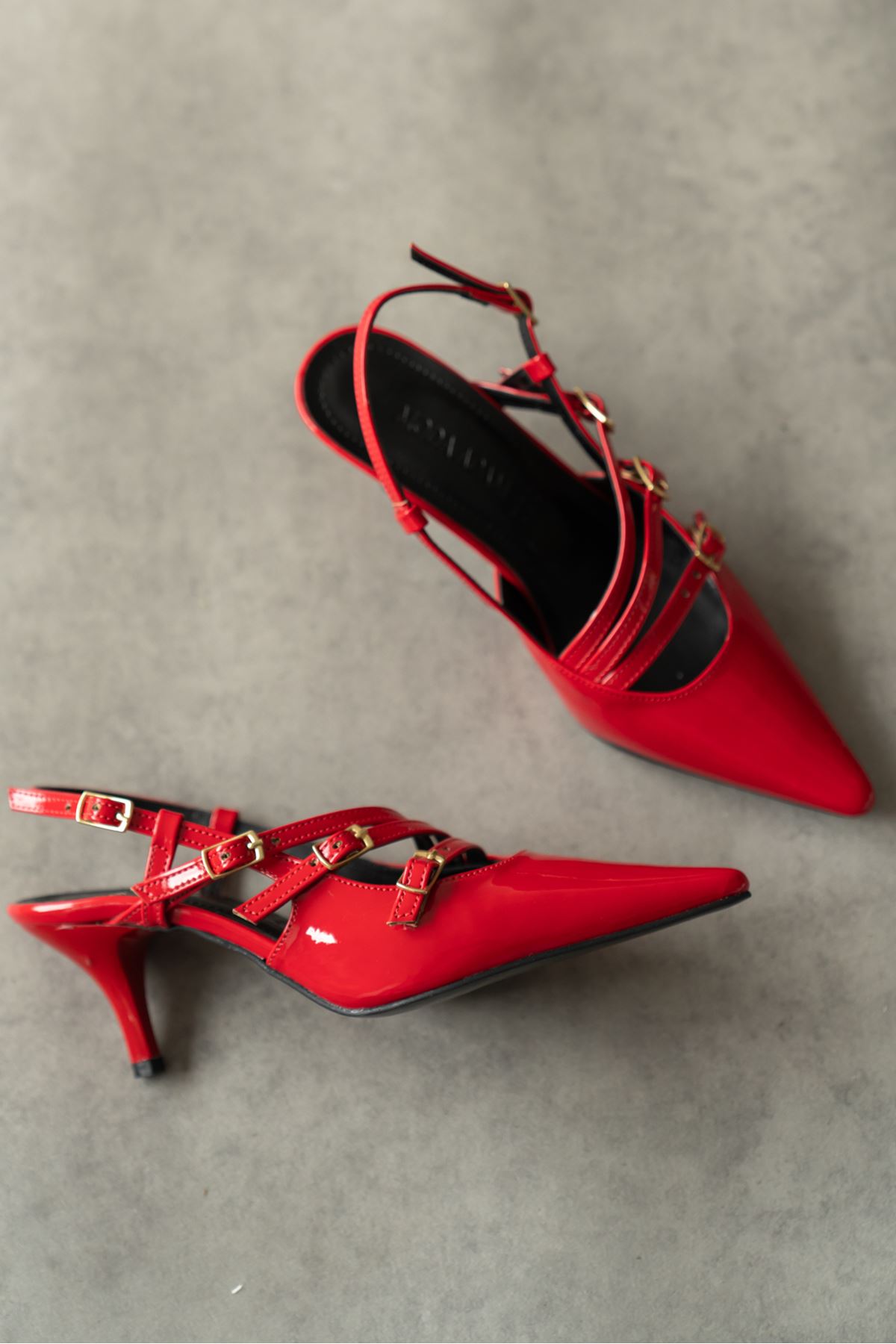 Kadın Marry Tokalı Kısa Topuklu Ayakkabı - Kırmızı-Rugan