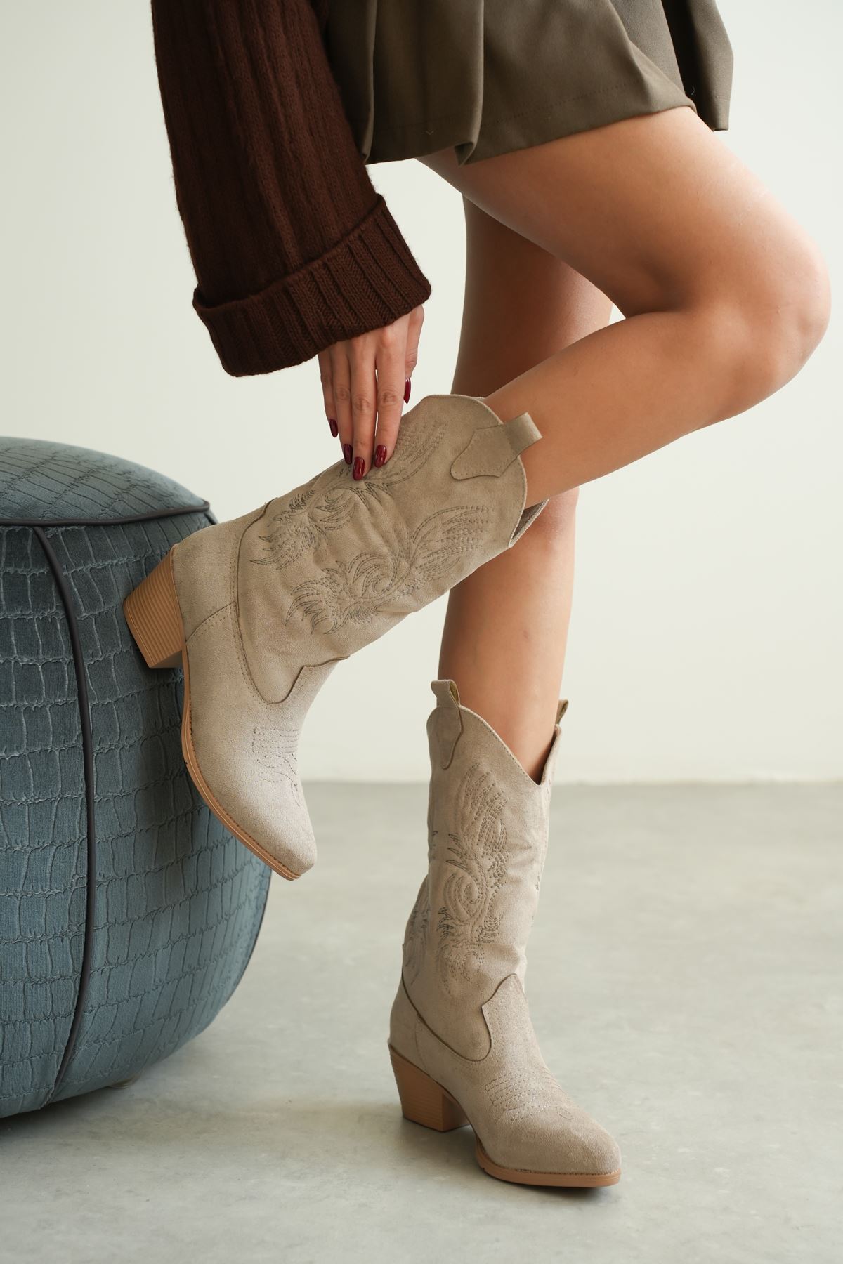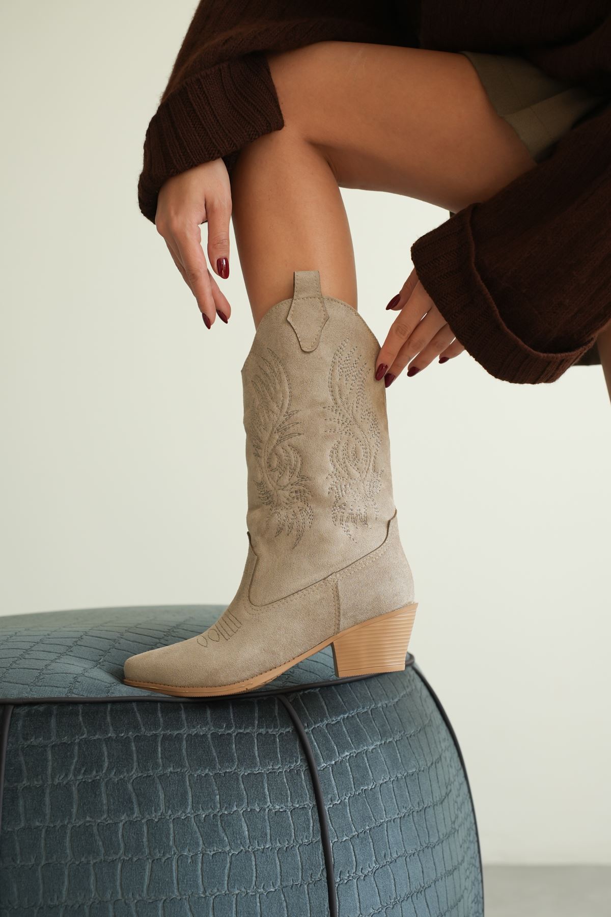 Kadın Meloni Kovboy Çizme - Vizon