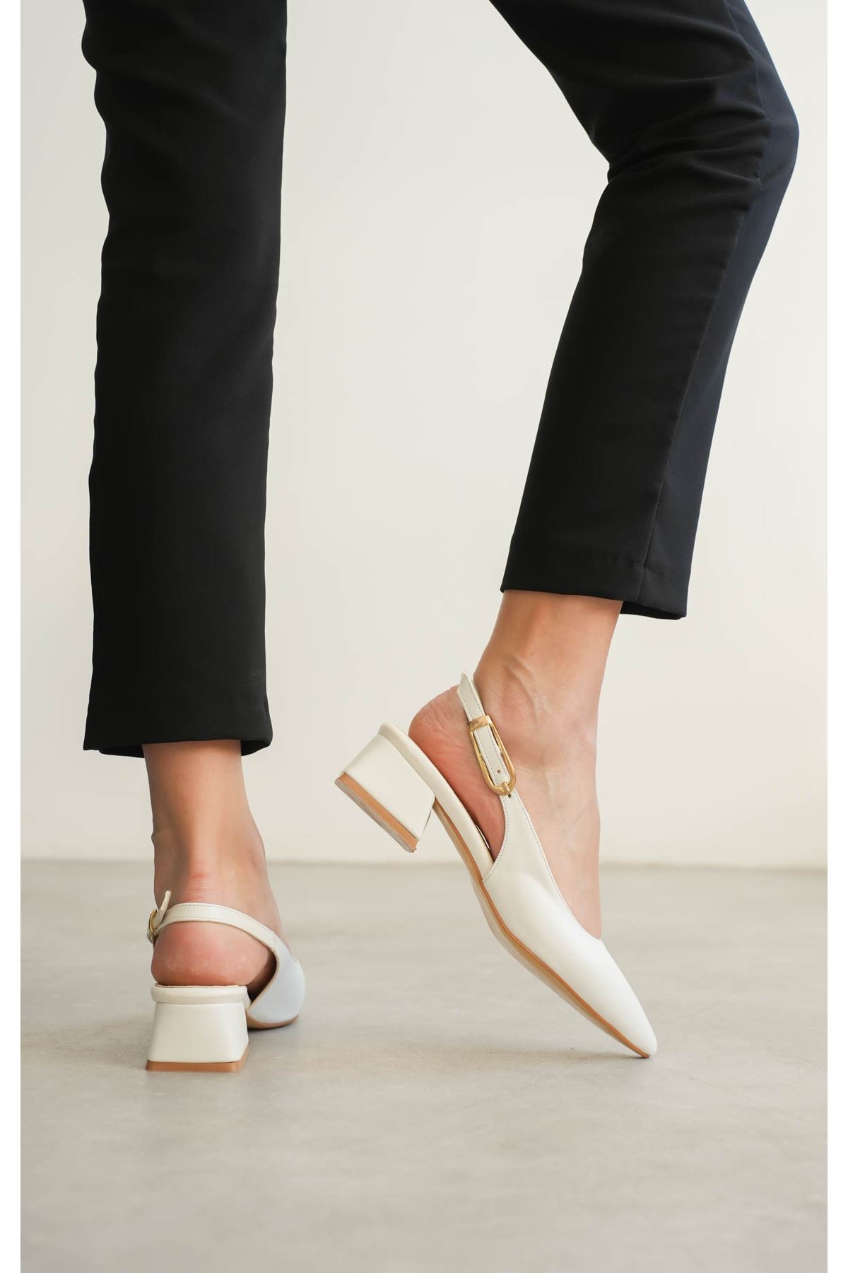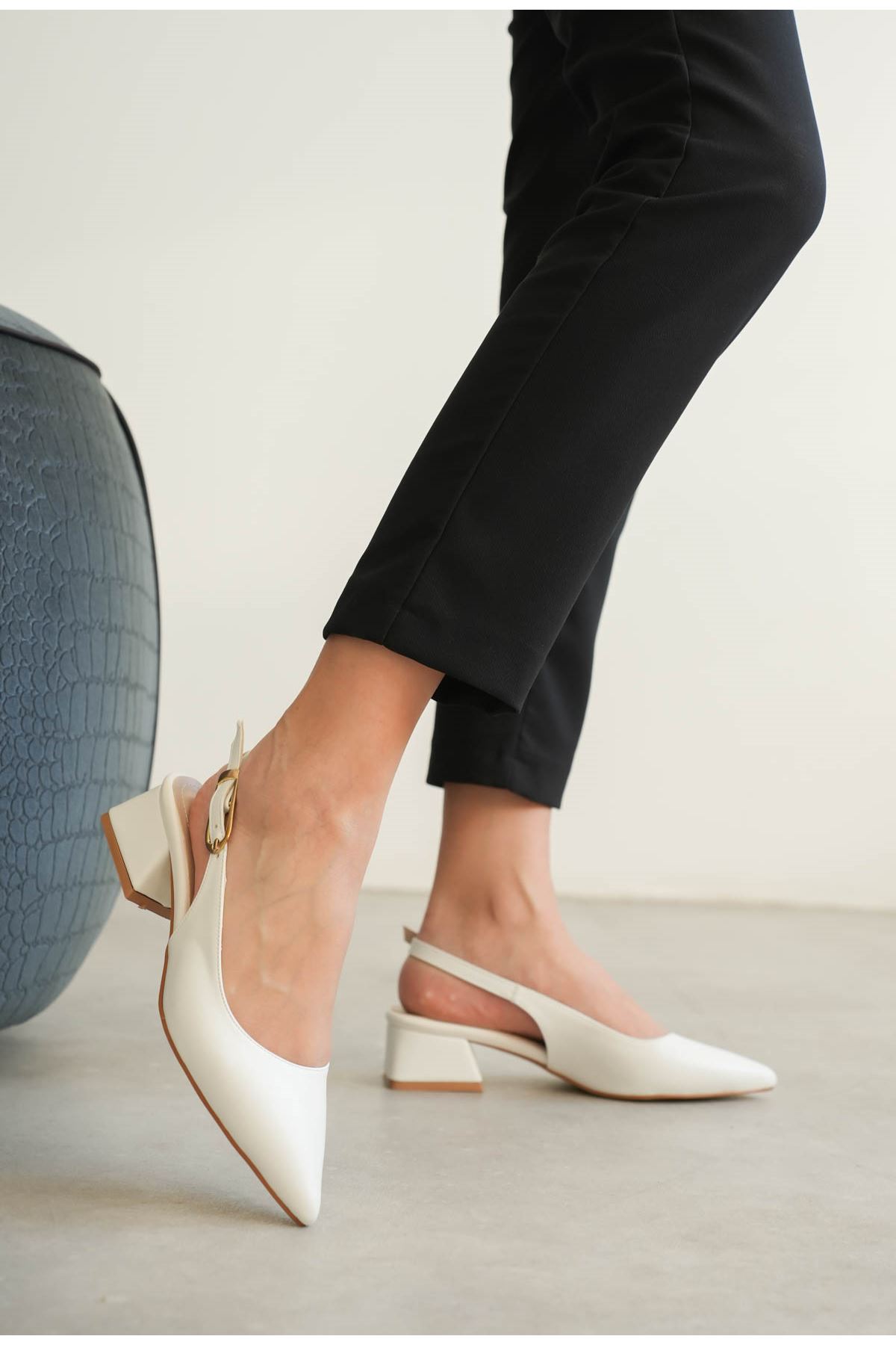 Kadın Mely Tokalı Kısa Topuklu Ayakkabı - Beyaz-Deri