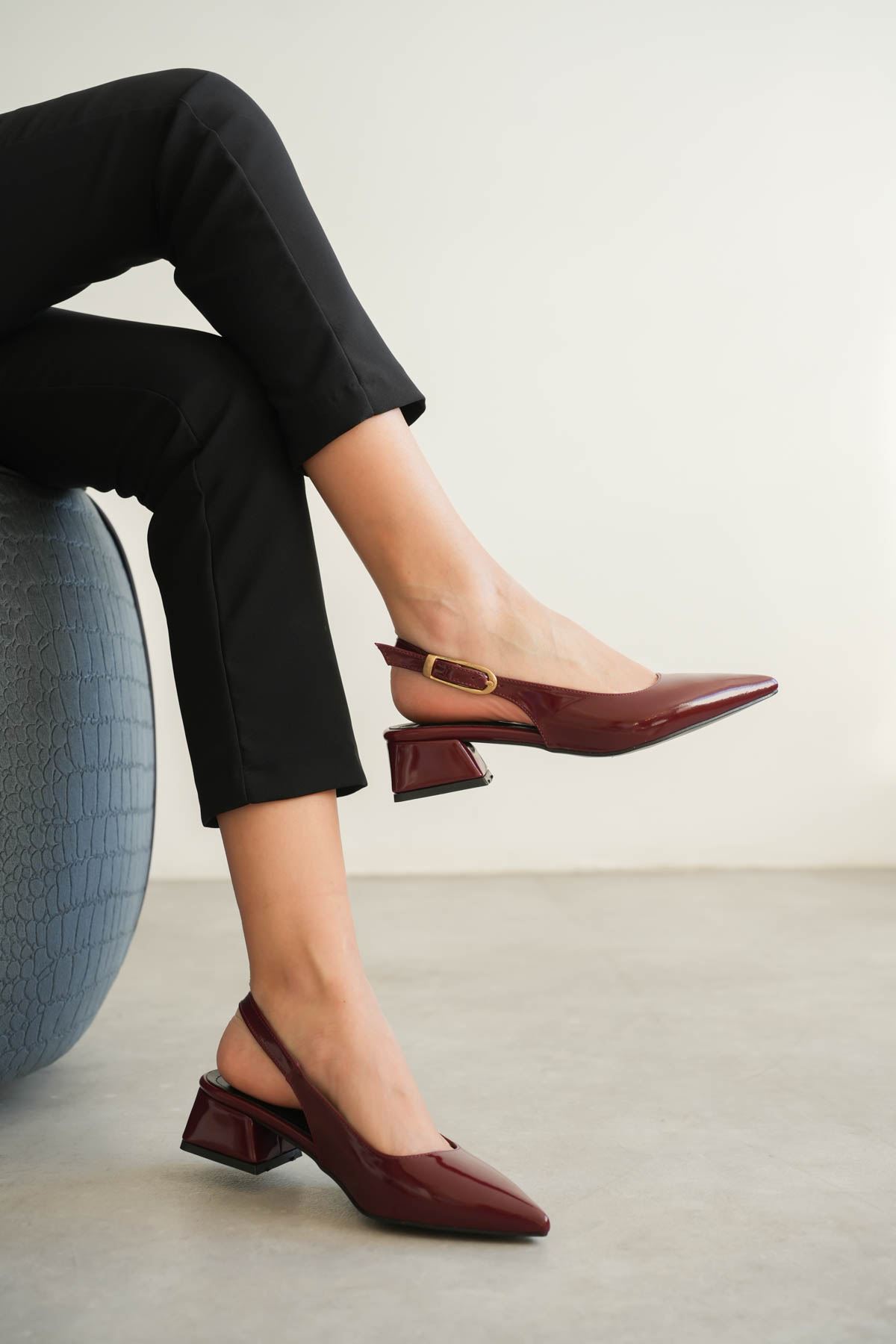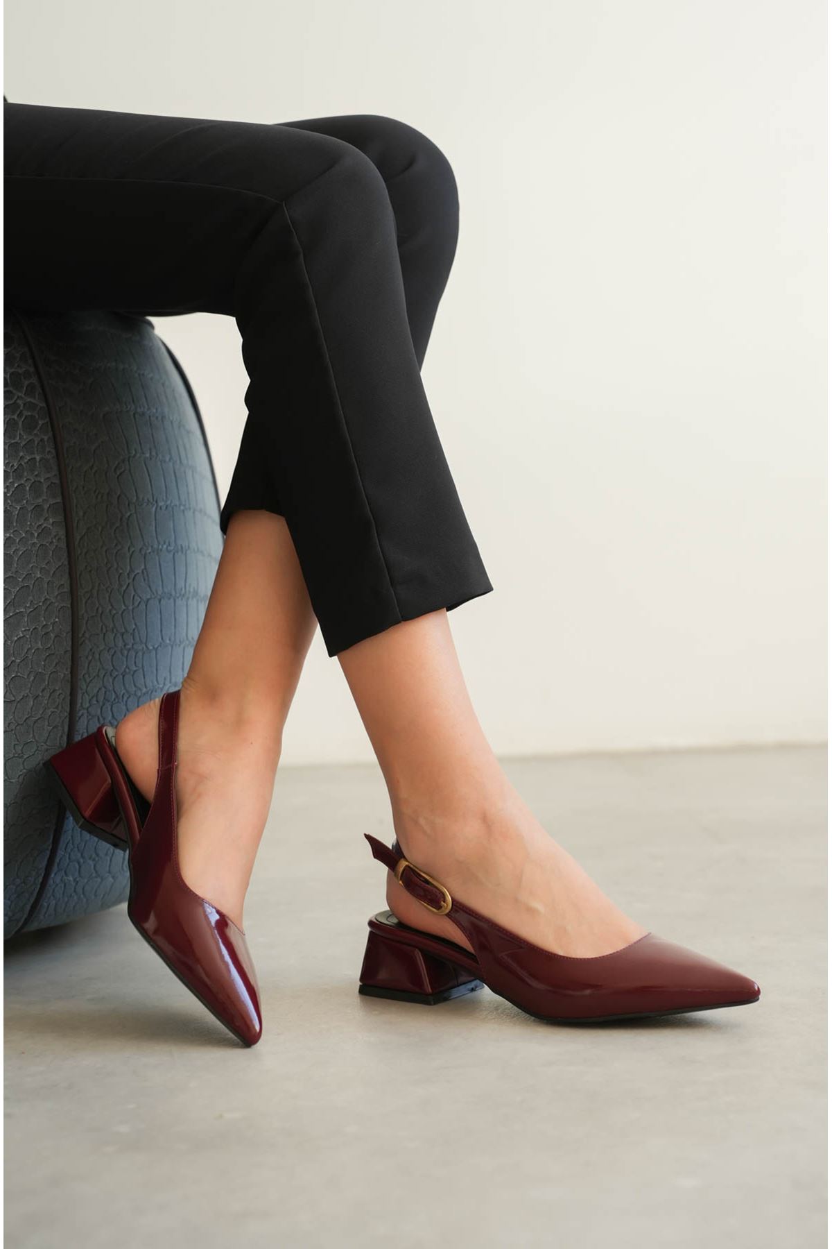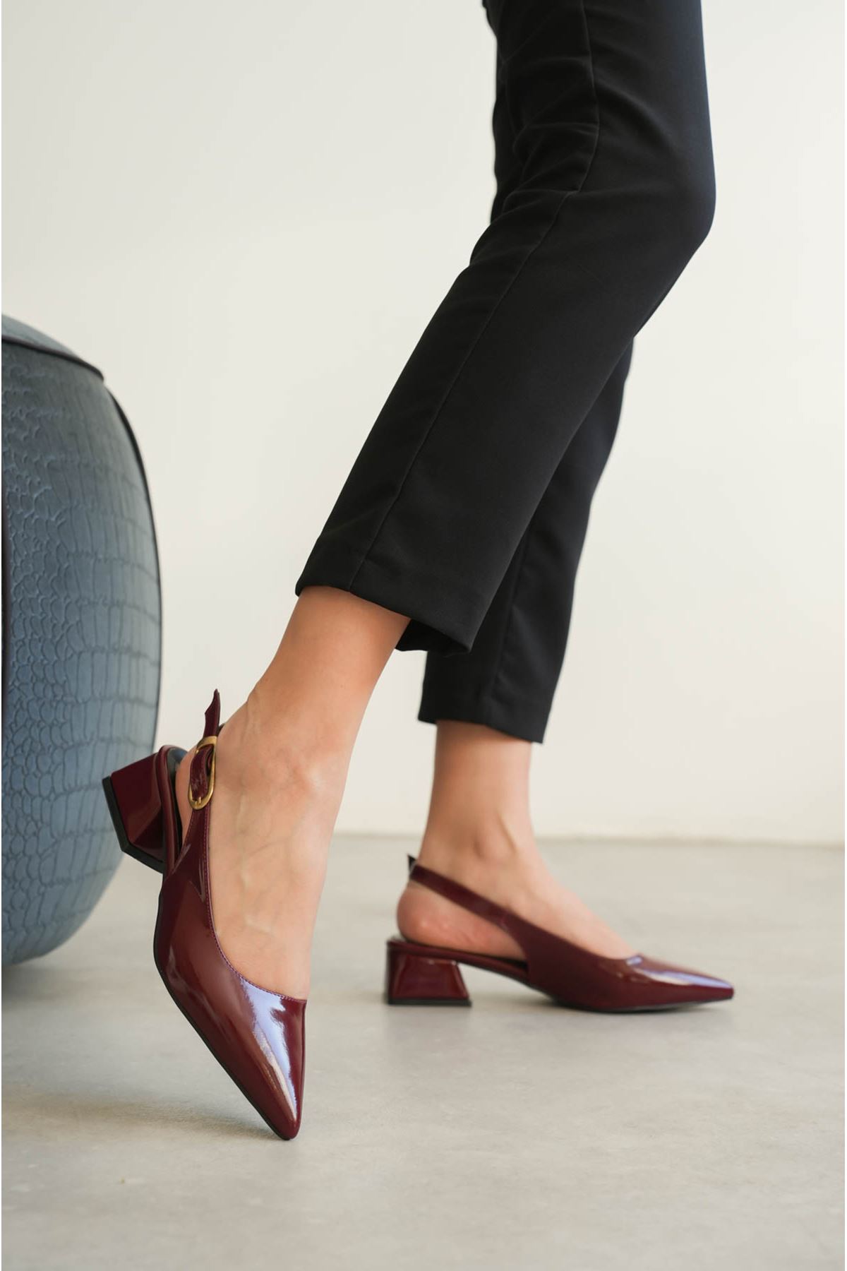 Kadın Mely Tokalı Kısa Topuklu Ayakkabı - Bordo-Rugan