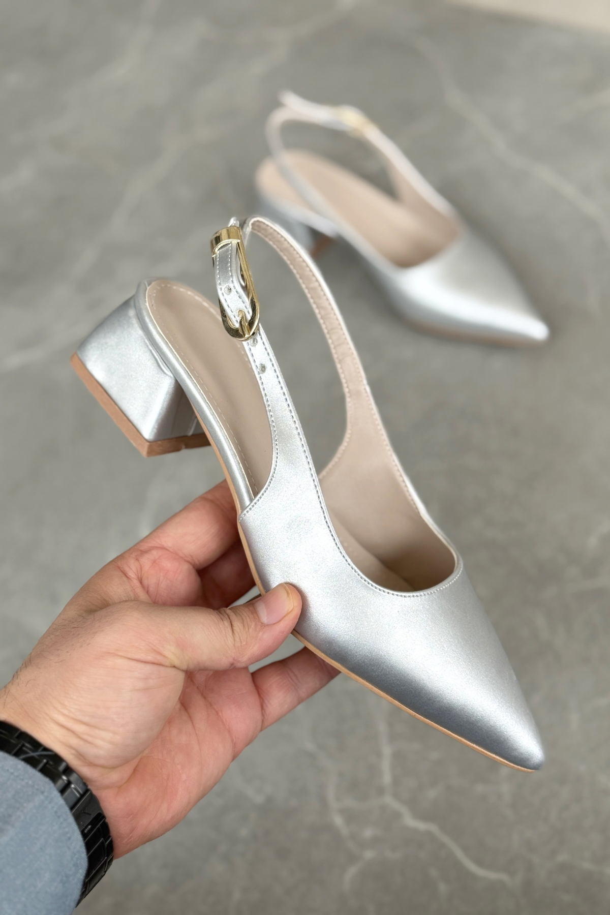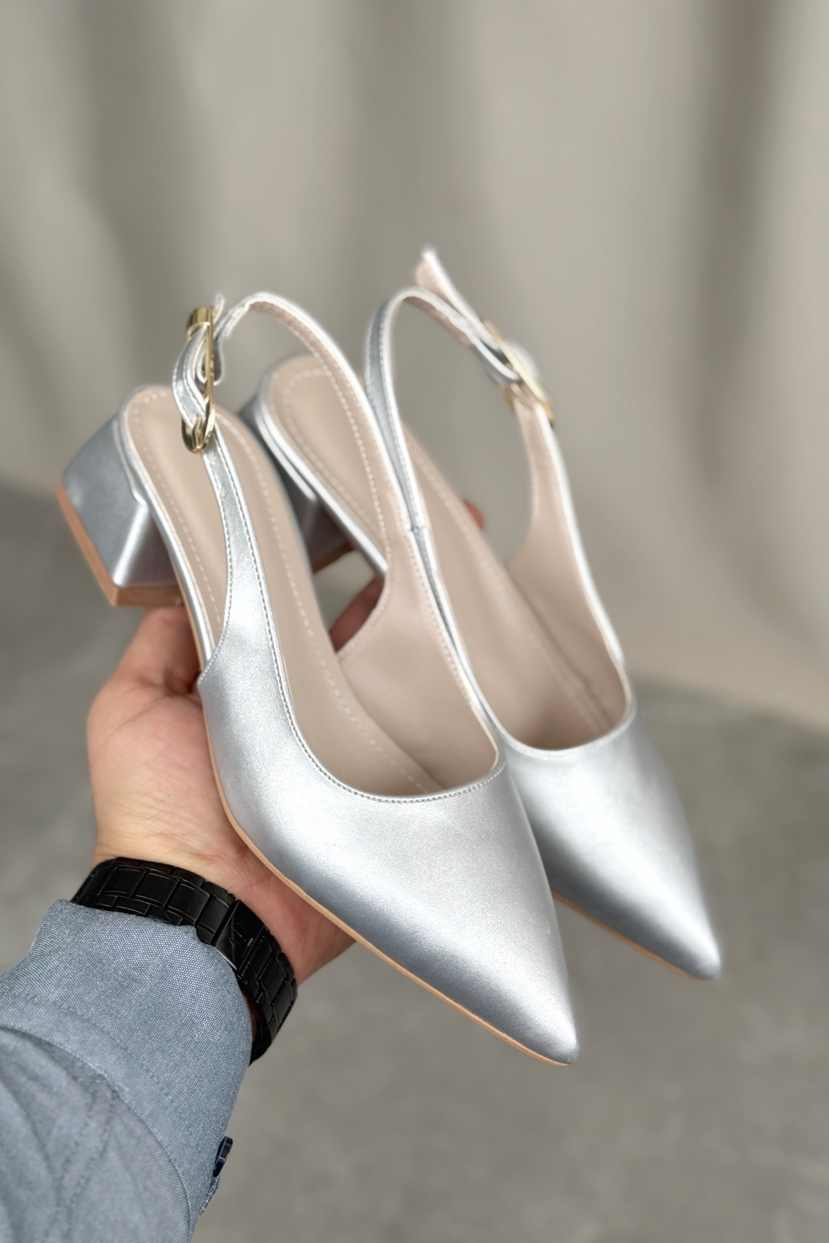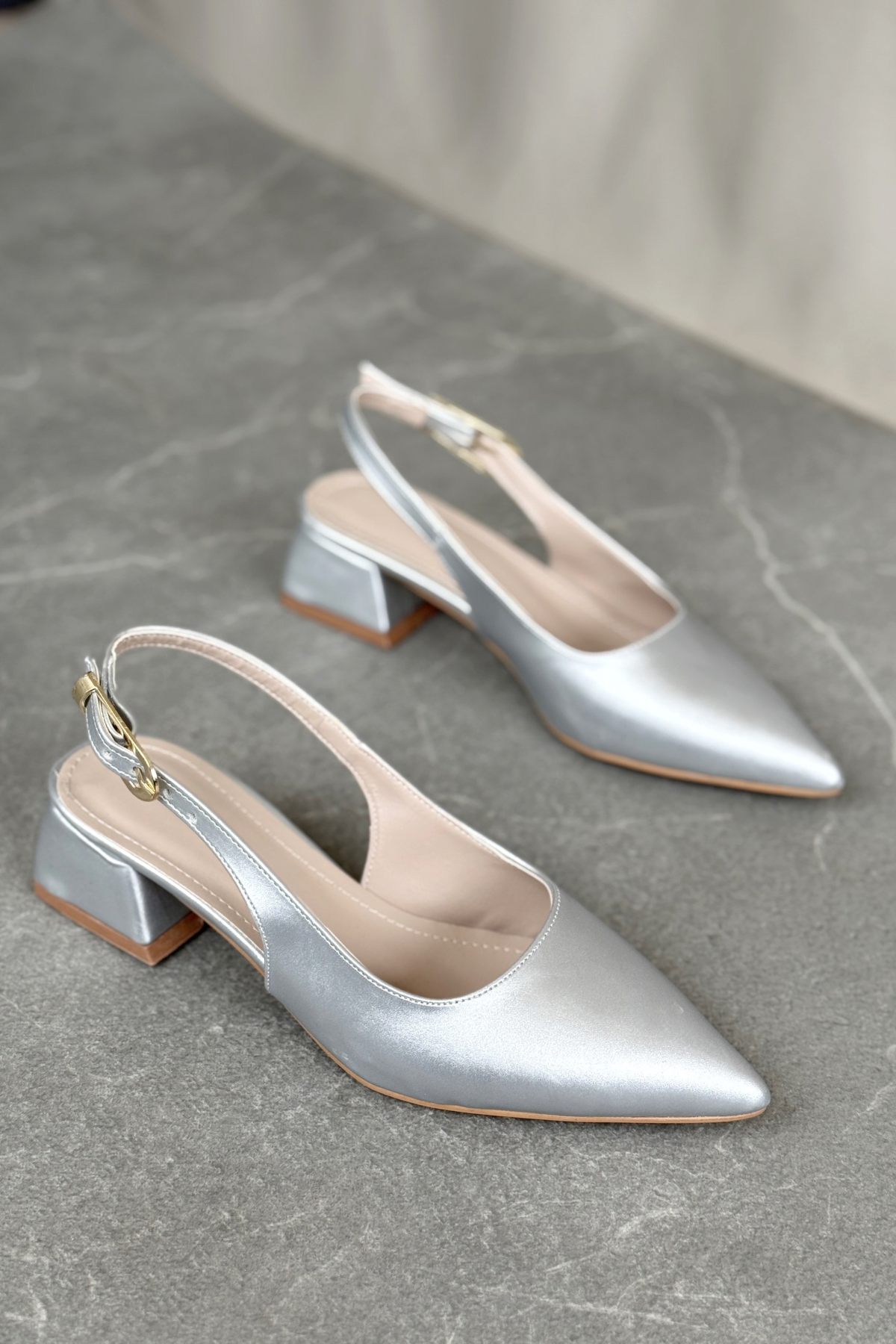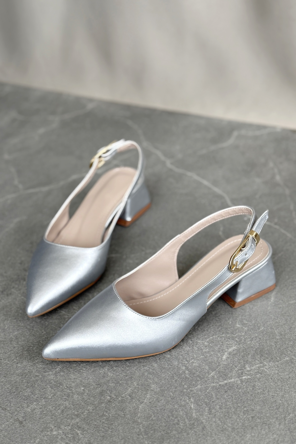 Kadın Mely Tokalı Kısa Topuklu Ayakkabı - Gümüş