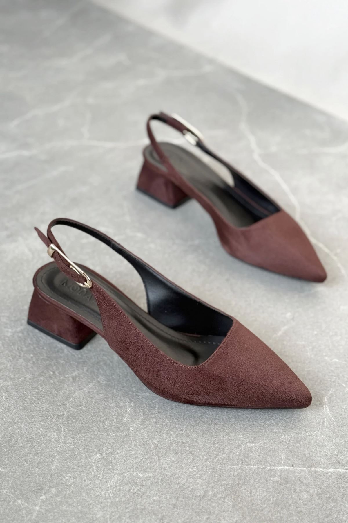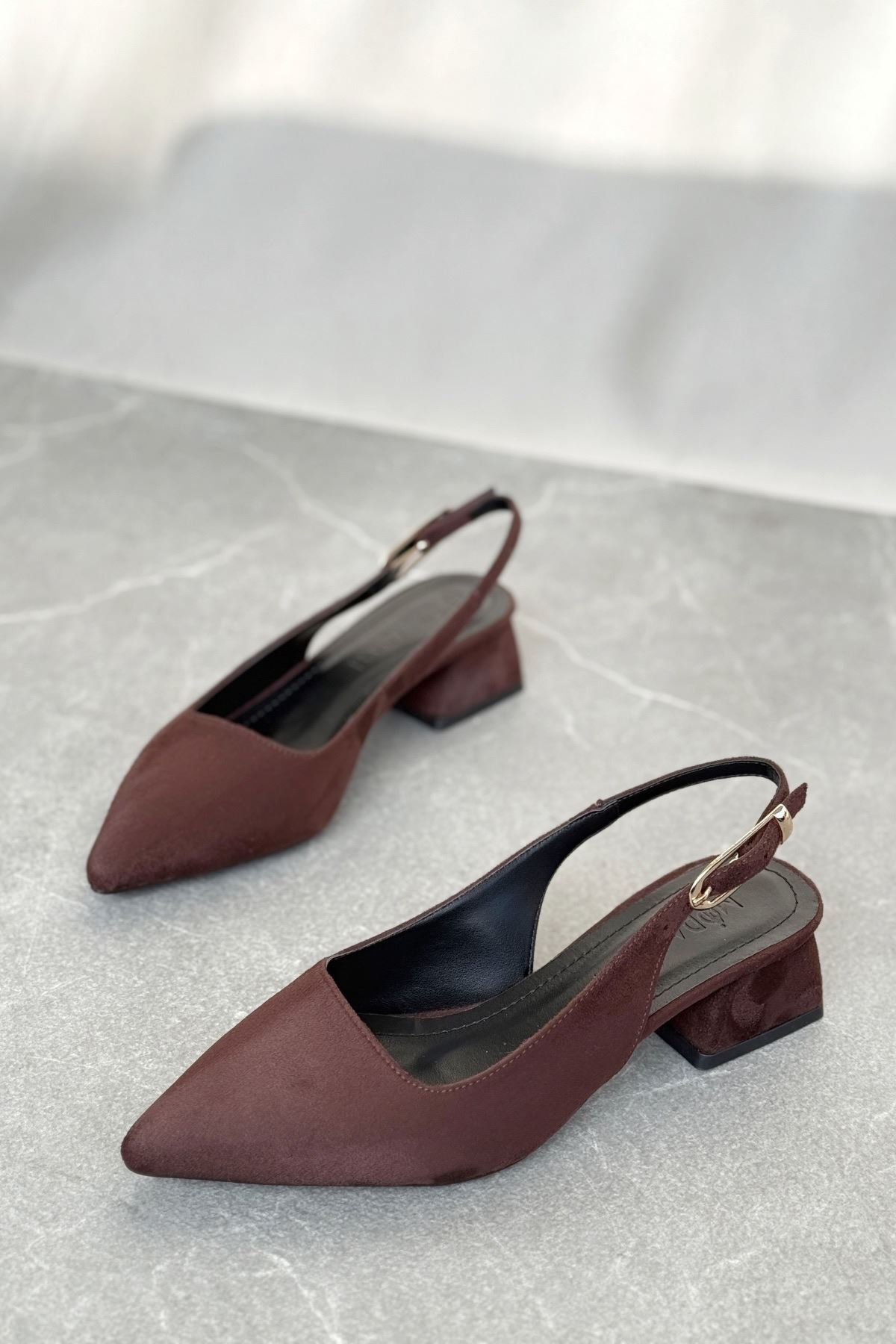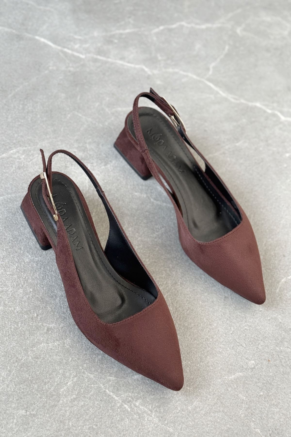 Kadın Mely Tokalı Kısa Topuklu Ayakkabı - Kahve-Süet