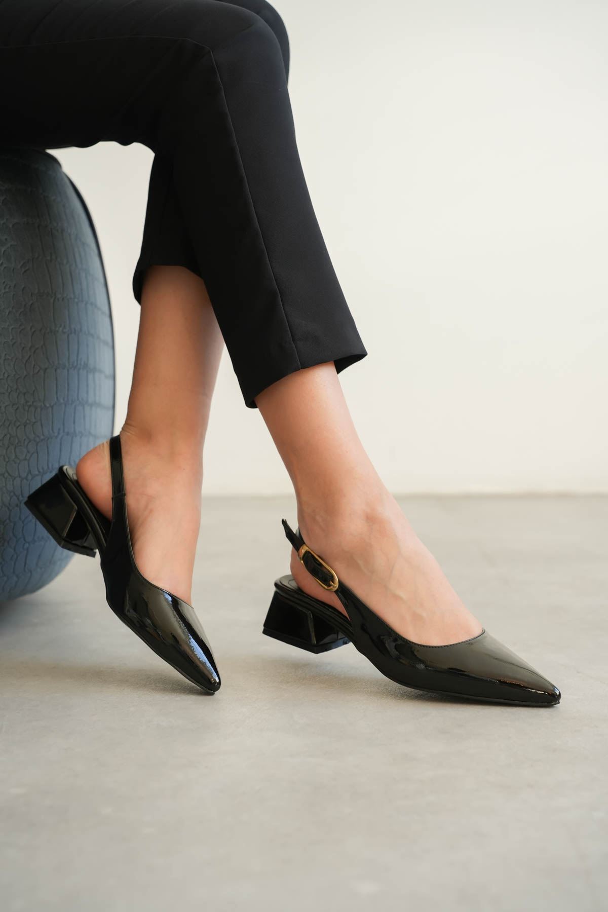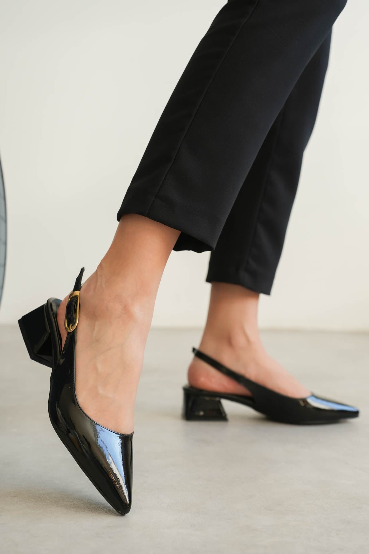 Kadın Mely Tokalı Kısa Topuklu Ayakkabı - siyah-rugan