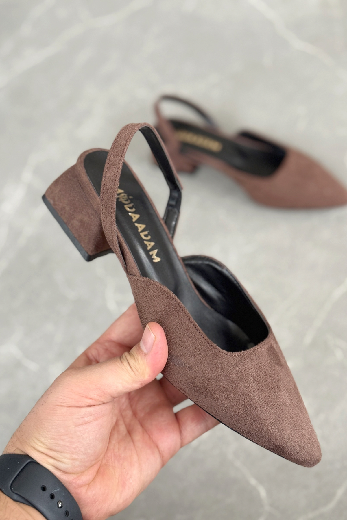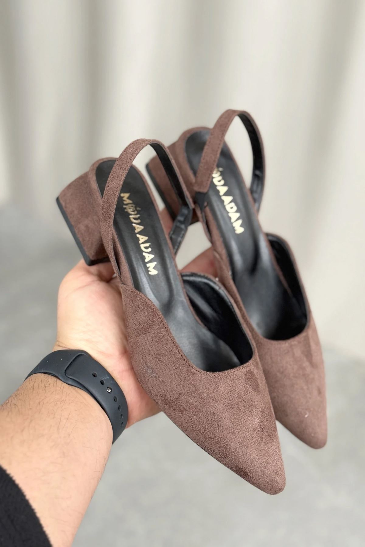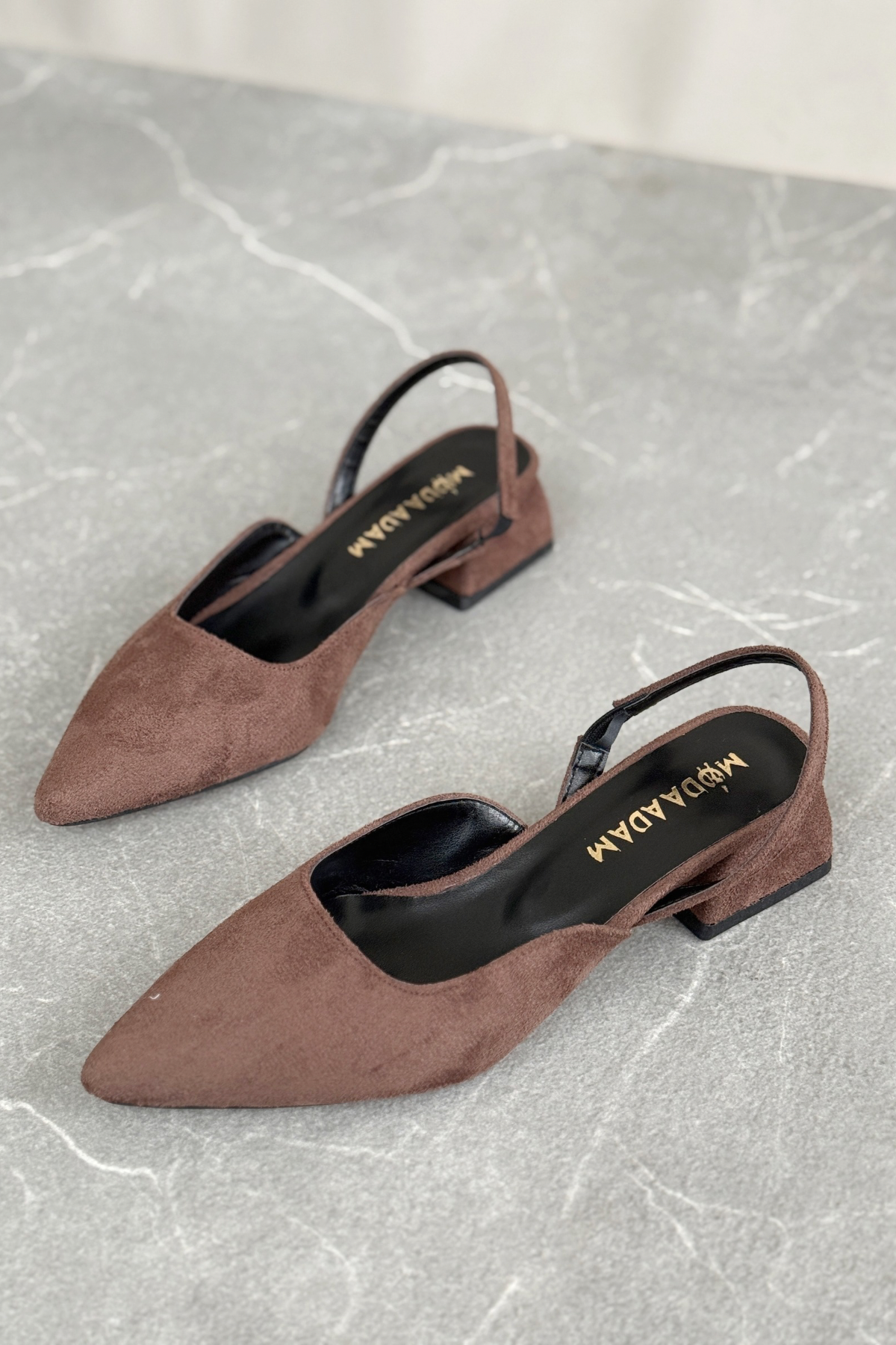 Kadın Monaco Kısa Topuklu Ayakkabı - Kahve-Süet