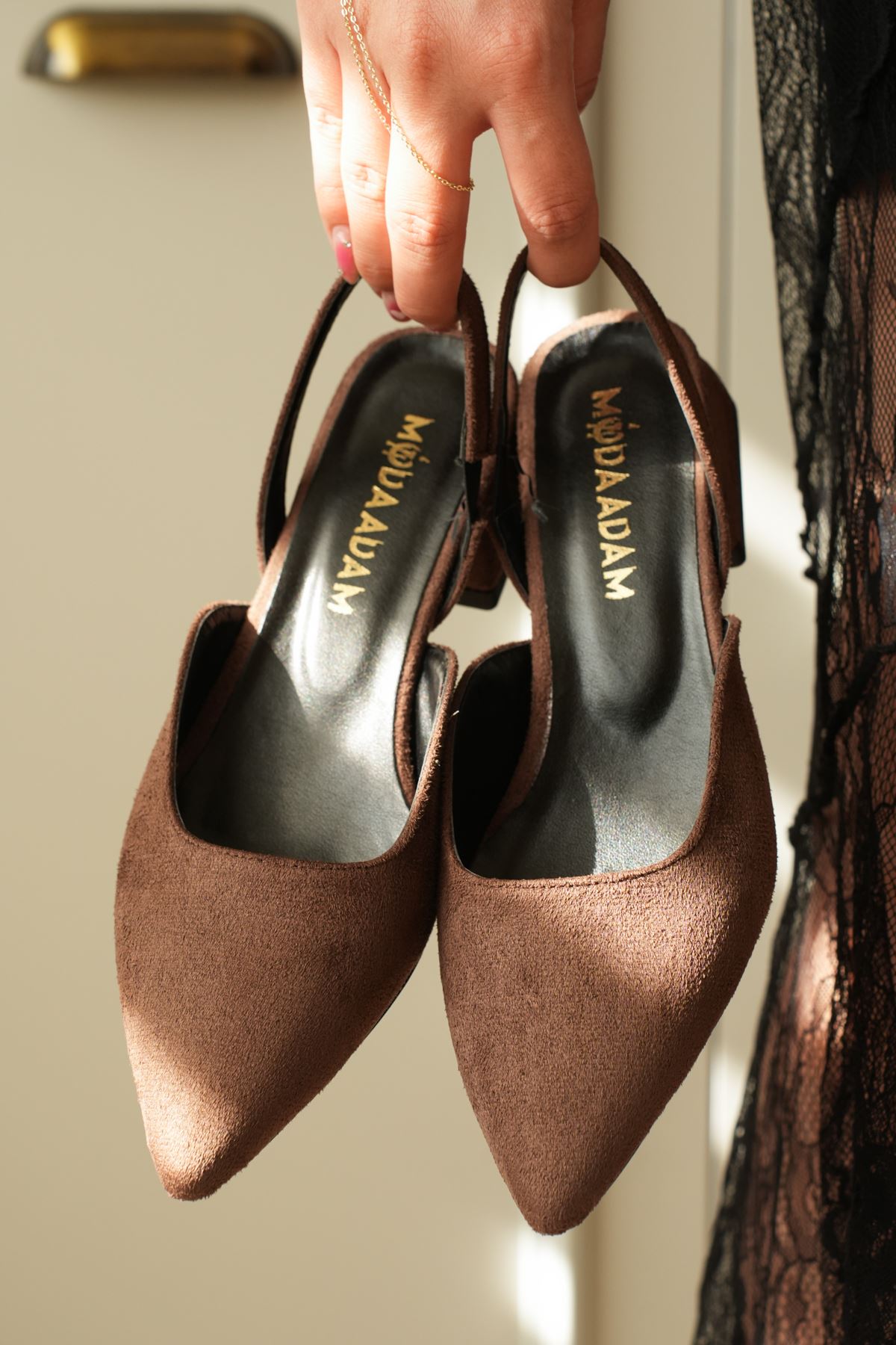 Kadın Monaco Kısa Topuklu Ayakkabı - Kahve-Süet