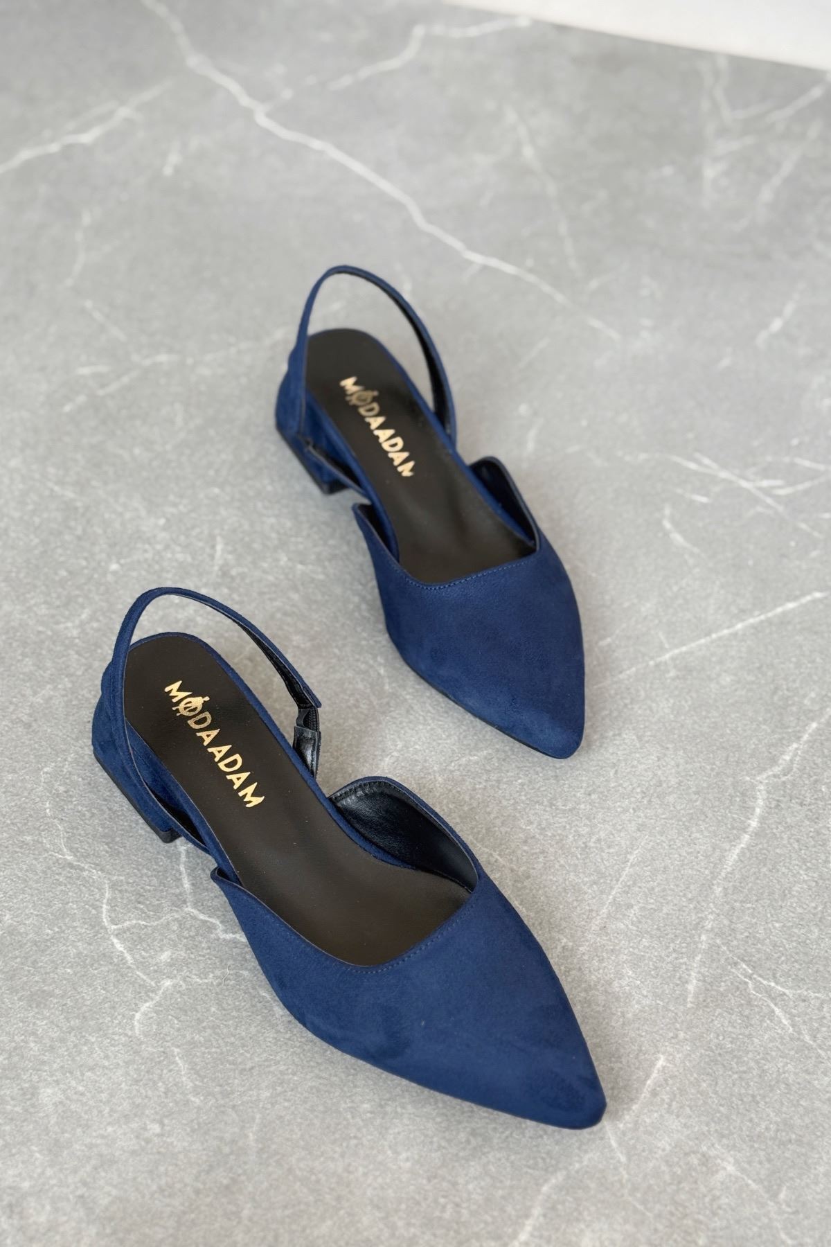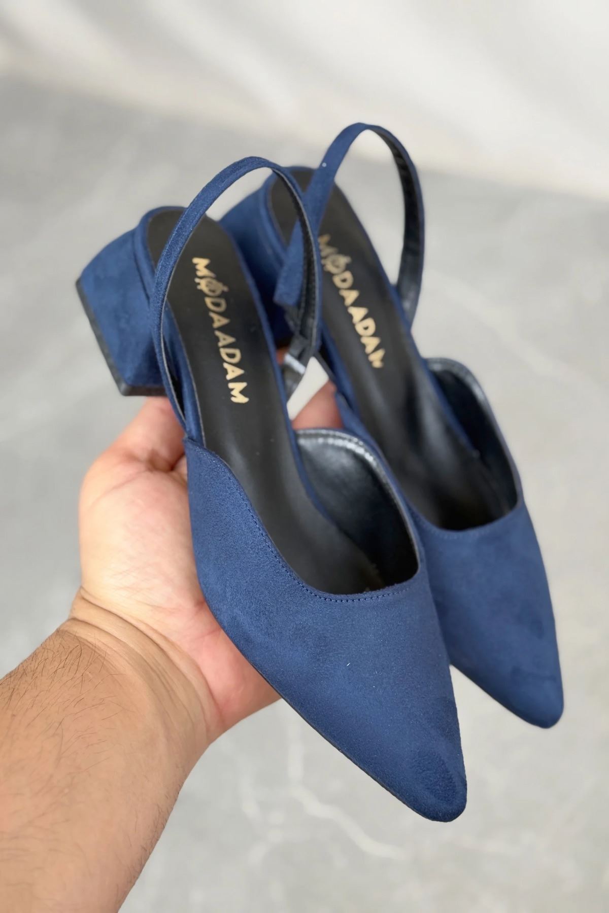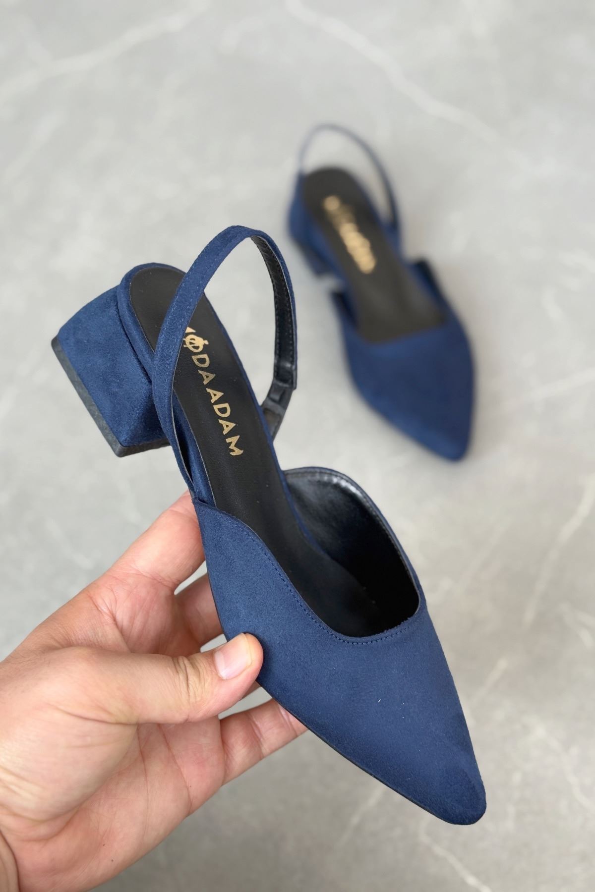 Kadın Monaco Kısa Topuklu Ayakkabı - Lacivert-Süet