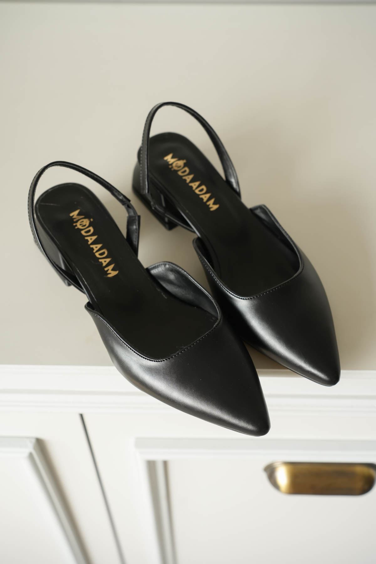 Kadın Monaco Kısa Topuklu Ayakkabı - siyah-deri