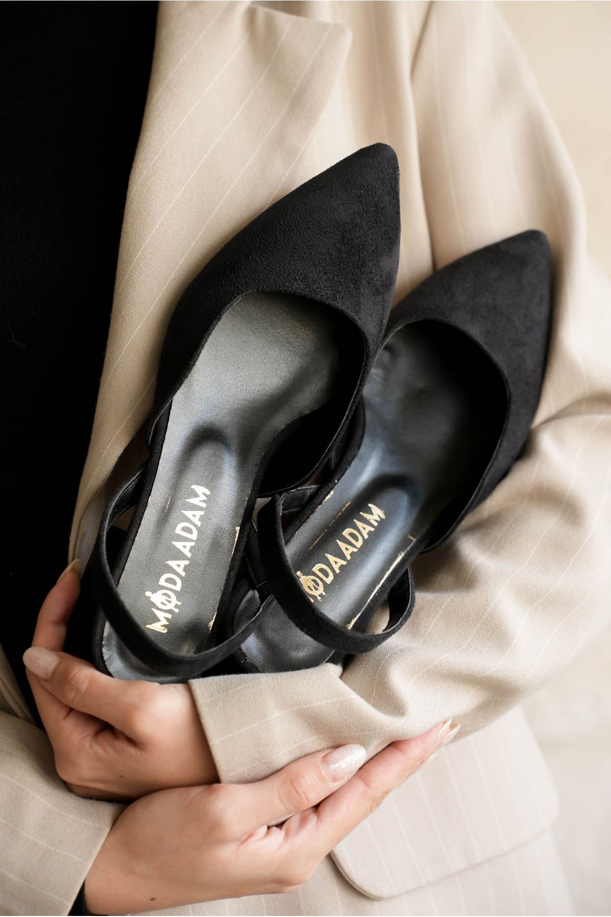 Kadın Monaco Kısa Topuklu Ayakkabı - Siyah Süet