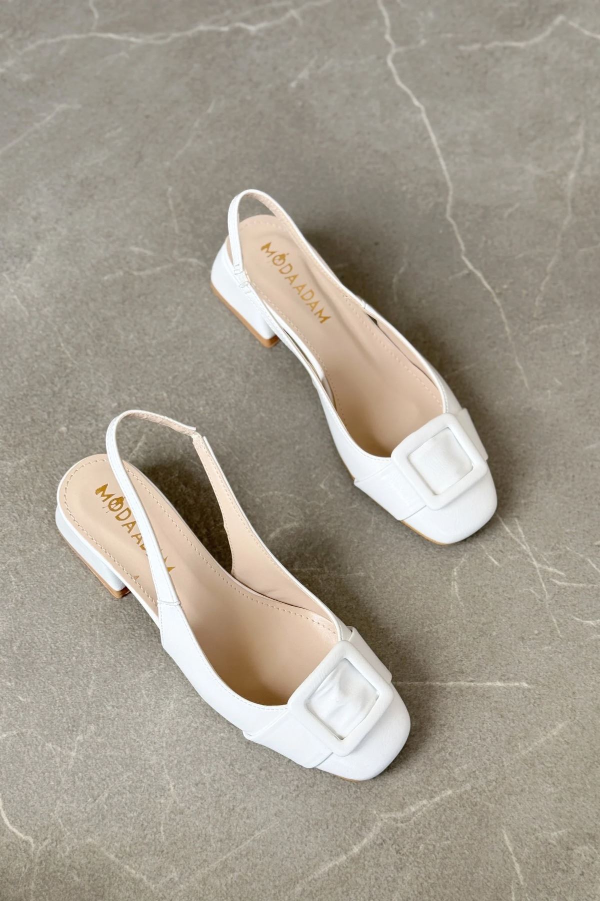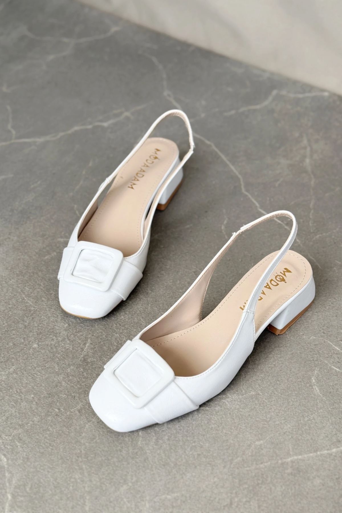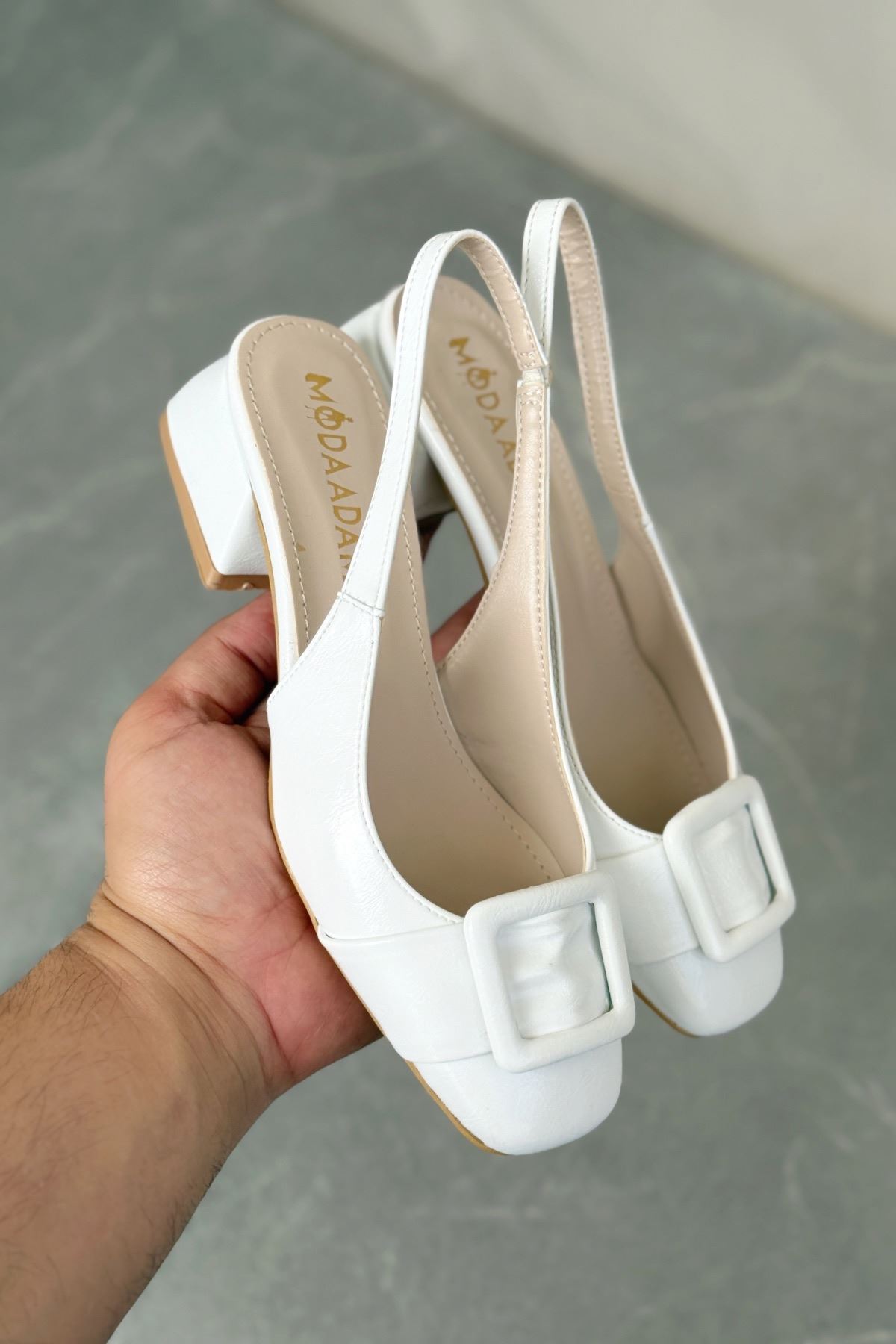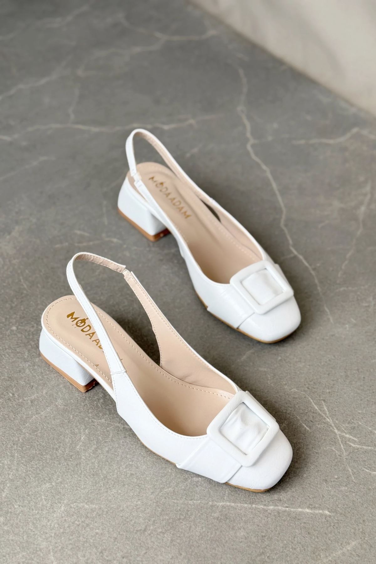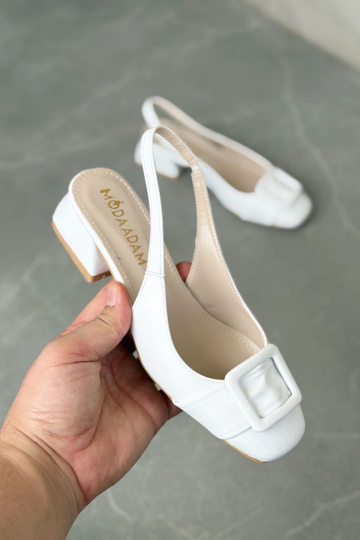 Kadın Monet Kısa Topuklu Ayakkabı - Beyaz-Rugan