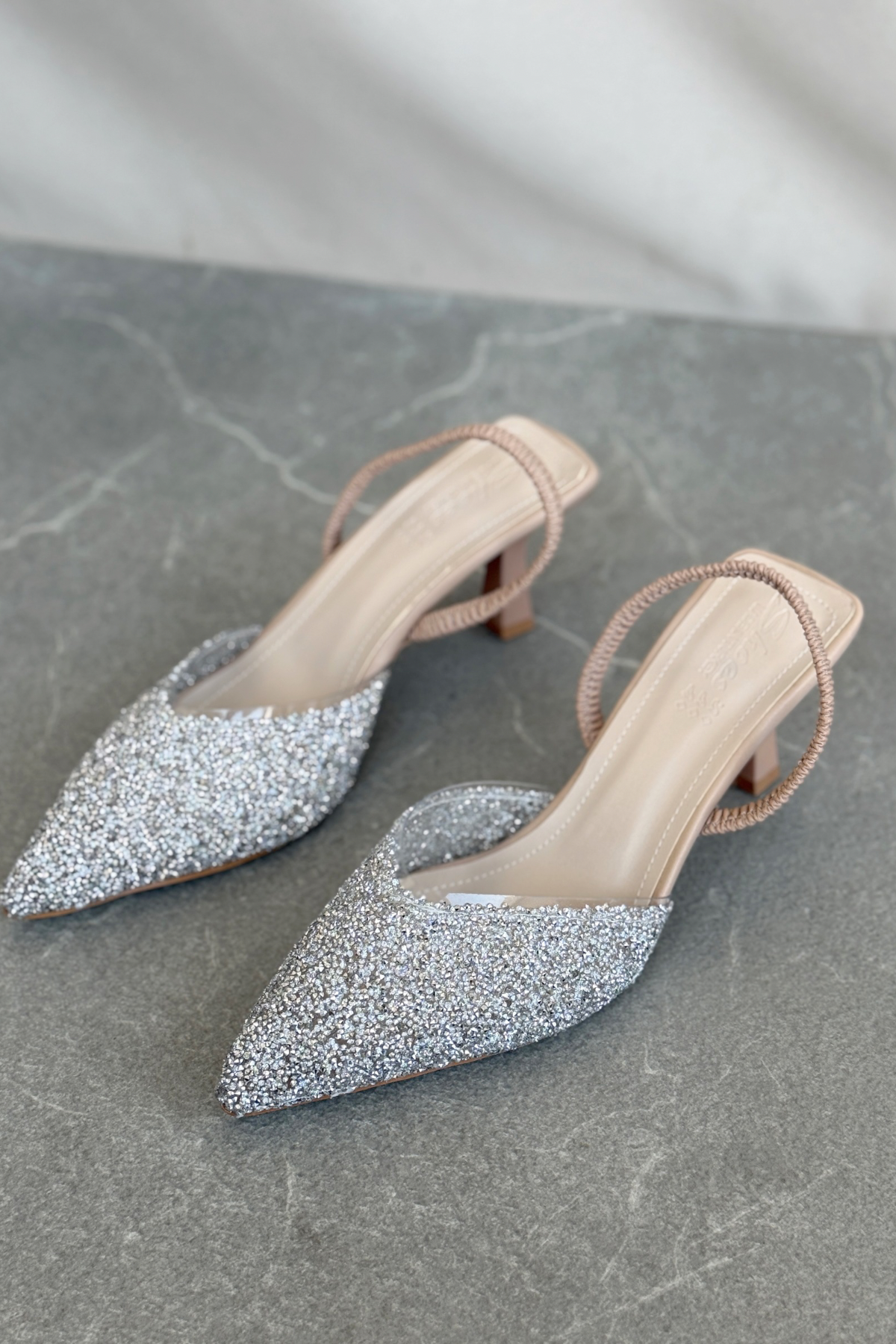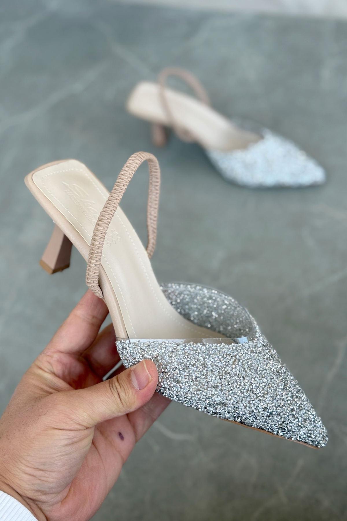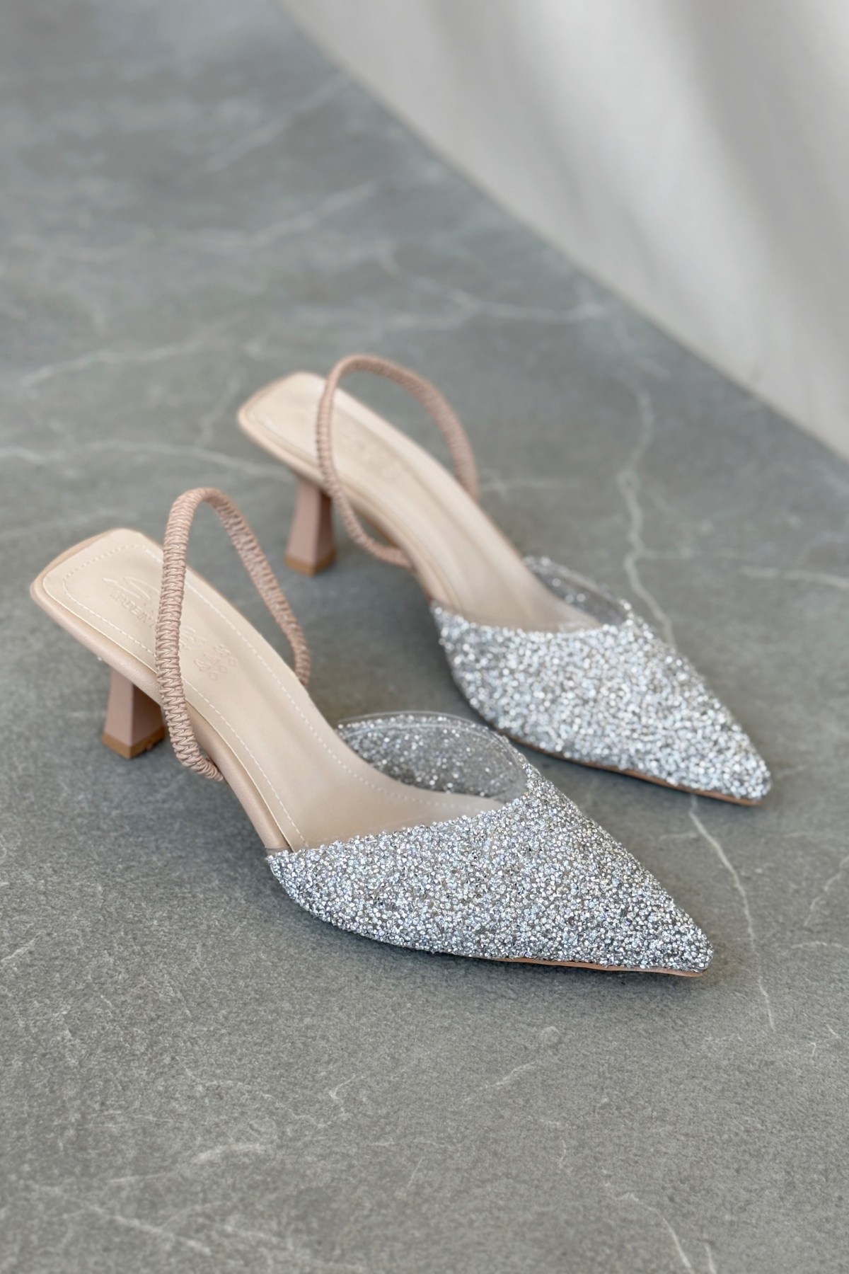 Kadın Monezza Topuklu Cam Kırığı Taşlı Ayakkabı - Nude