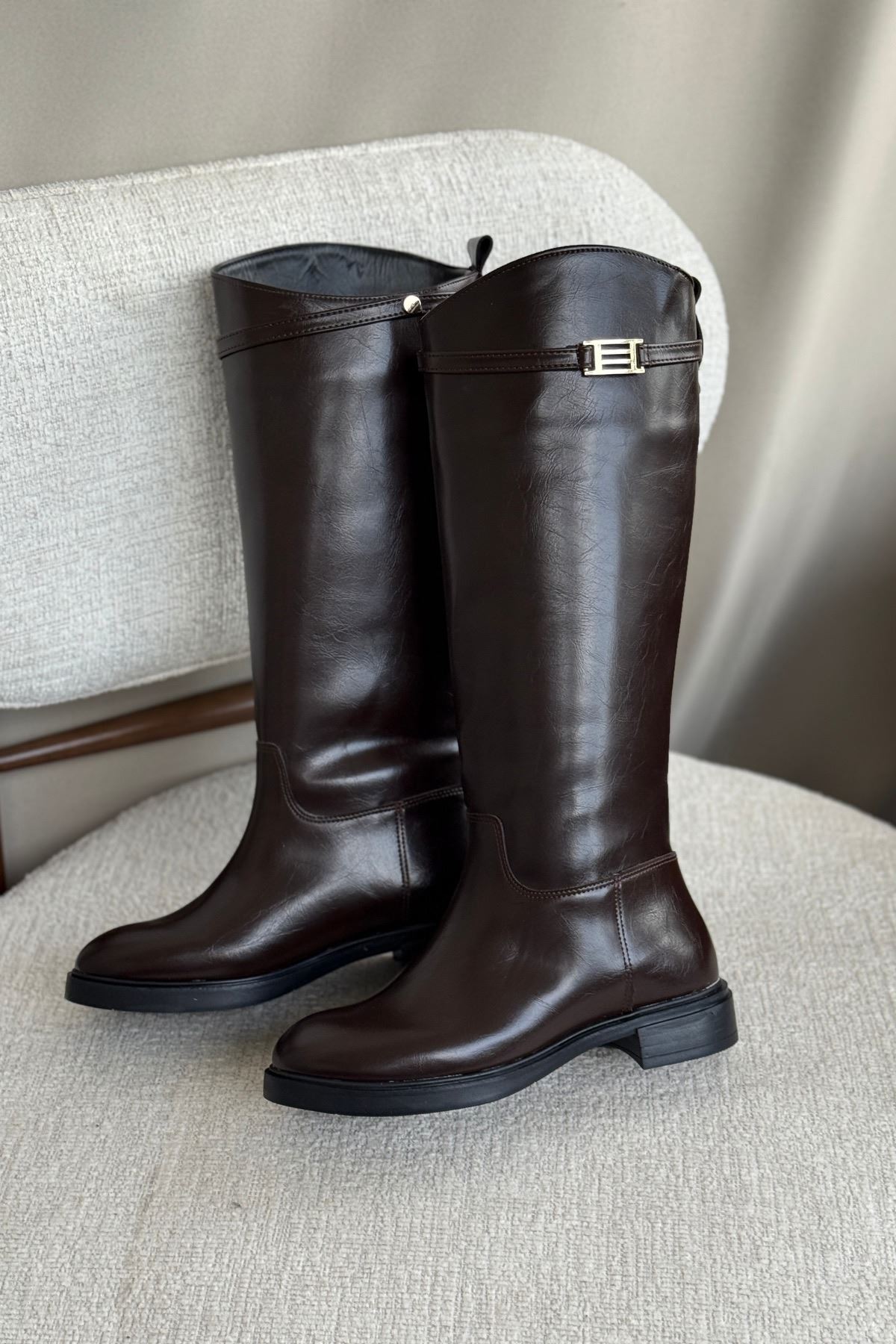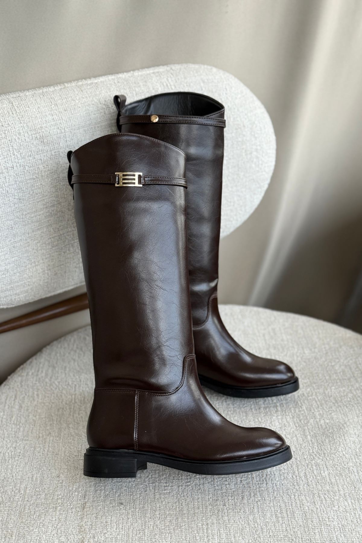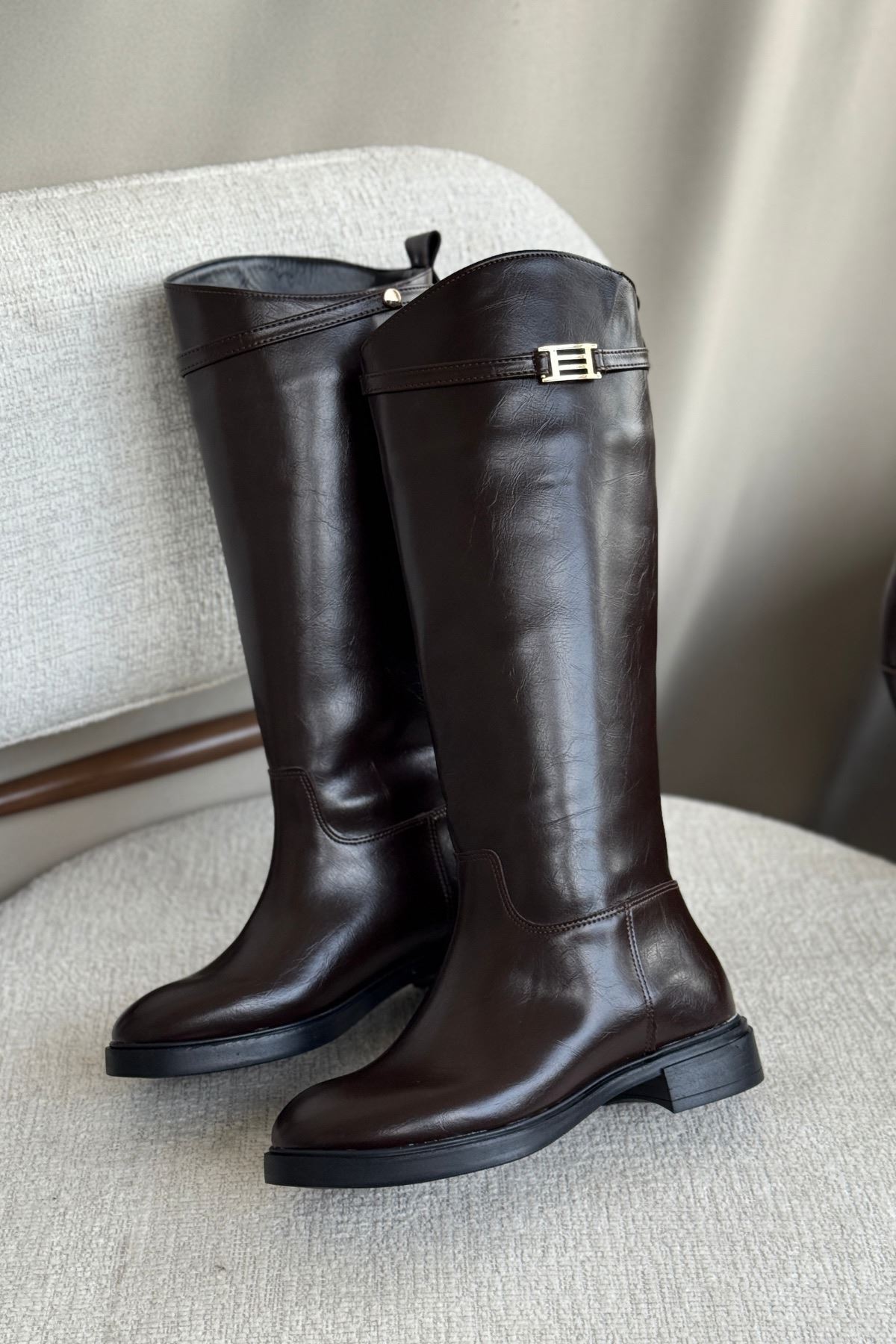 Kadın Nantes Düz Tabanlı Tokalı Çizme - siyah-rugan