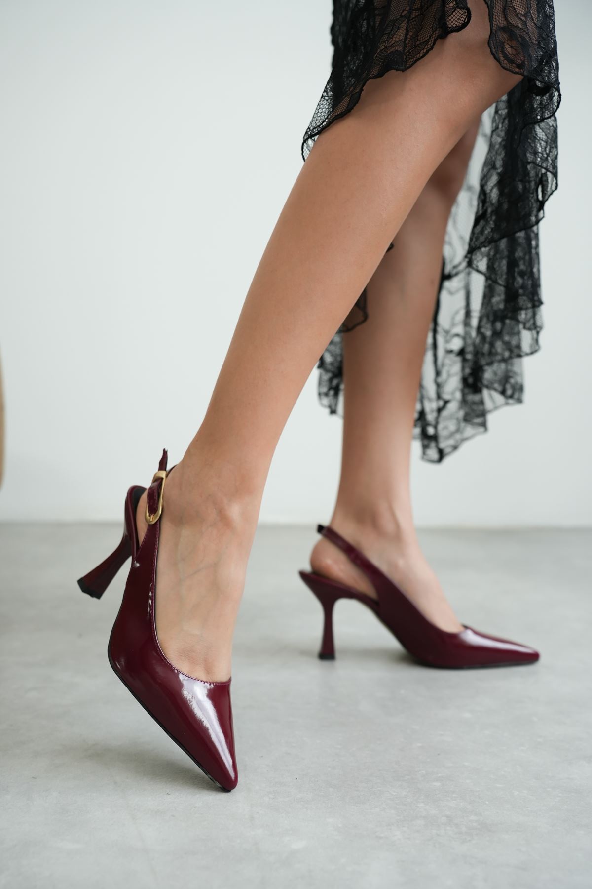 Kadın Ovis Sivri Topuklu Ayakkabı - Bordo-Rugan