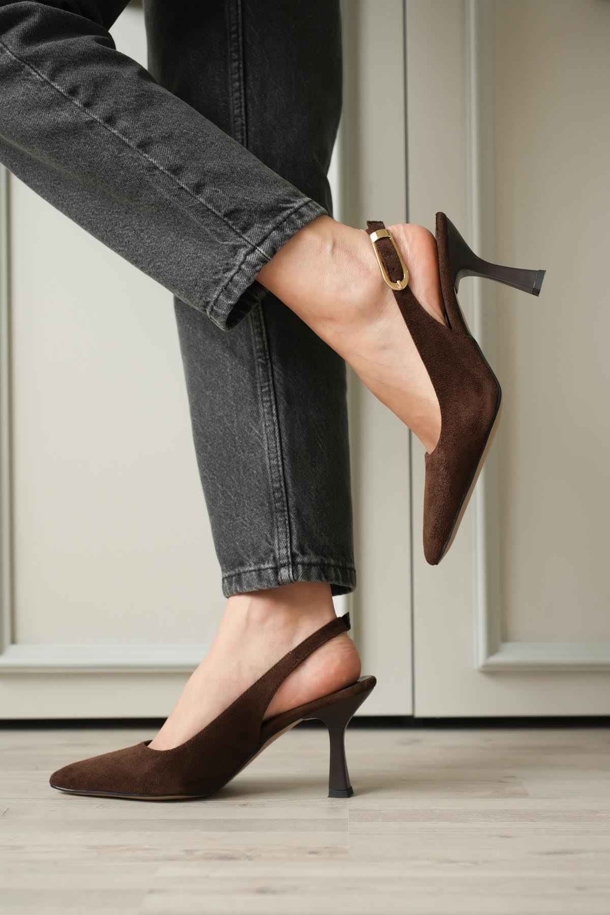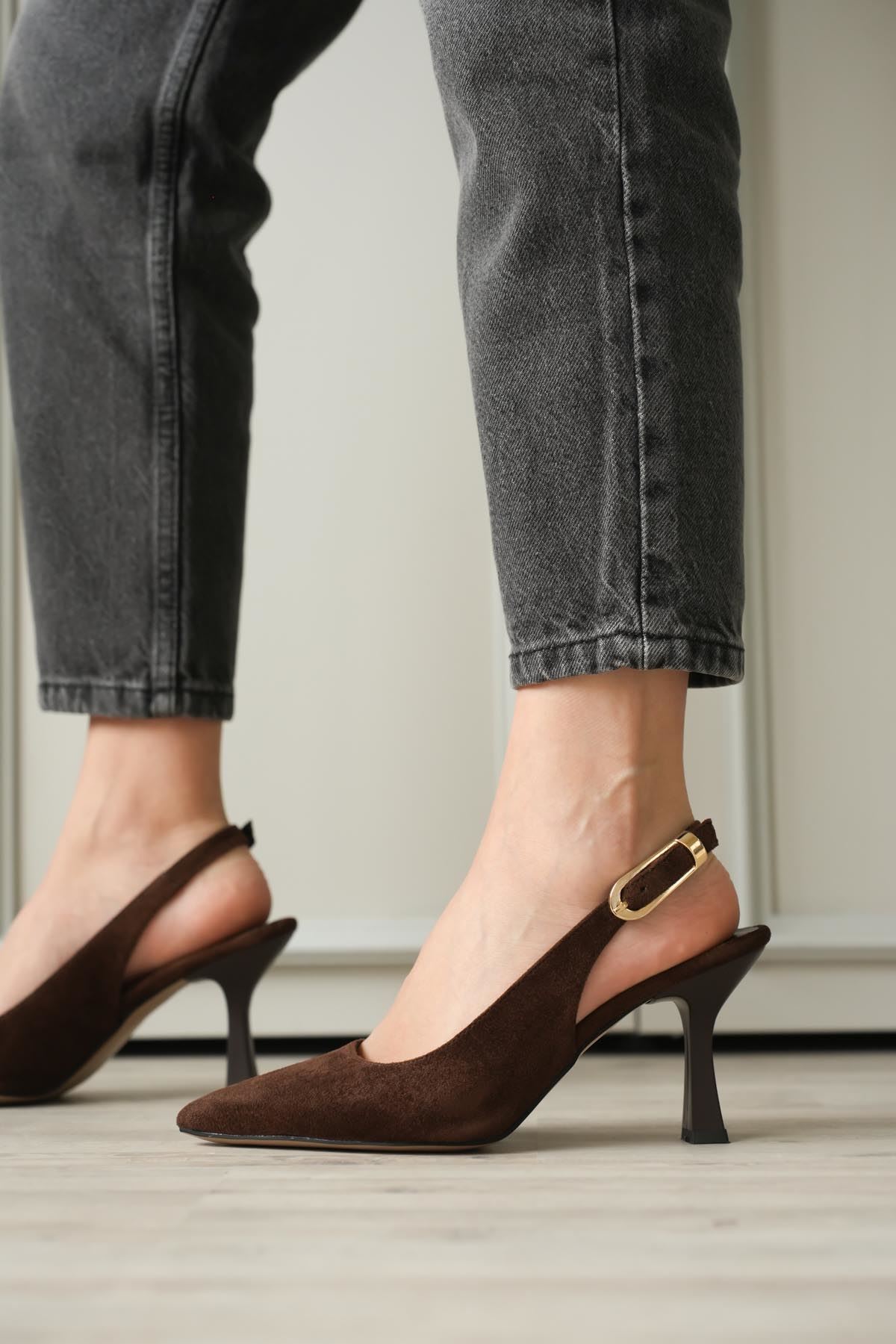 Kadın Ovis Sivri Topuklu Ayakkabı - Kahve-Süet