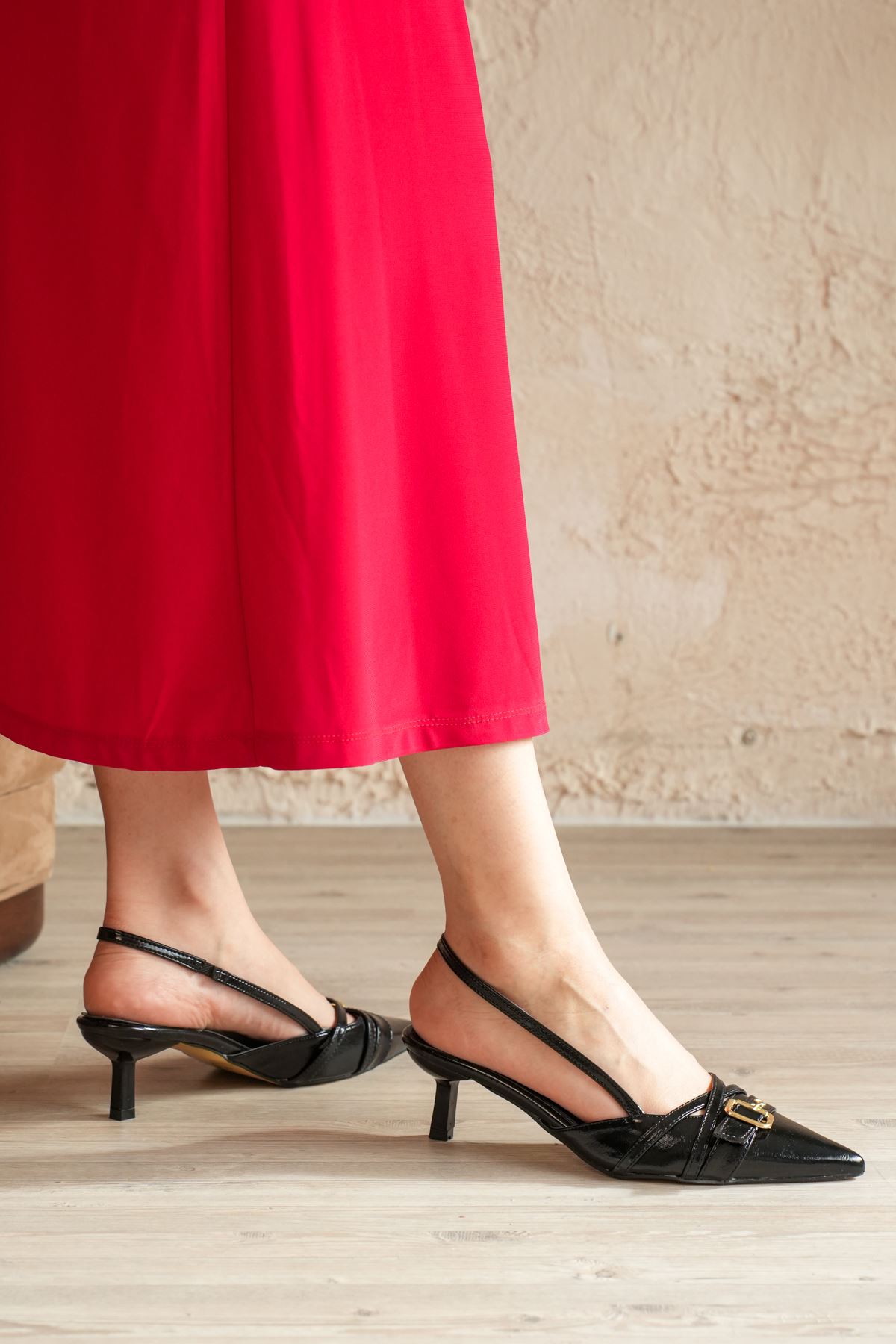 Kadın Paris İnce Kısa Topuklu Ayakkabı - siyah-rugan