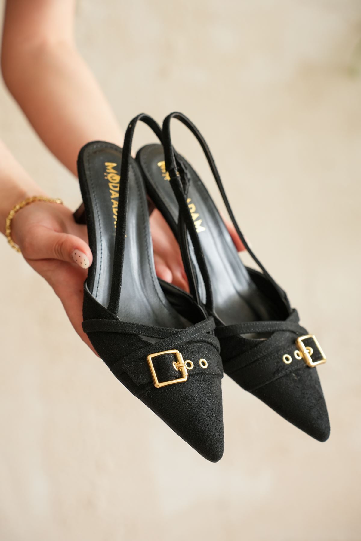 Kadın Paris İnce Kısa Topuklu Ayakkabı - Siyah Süet