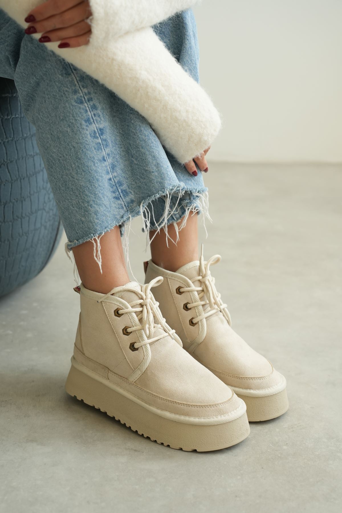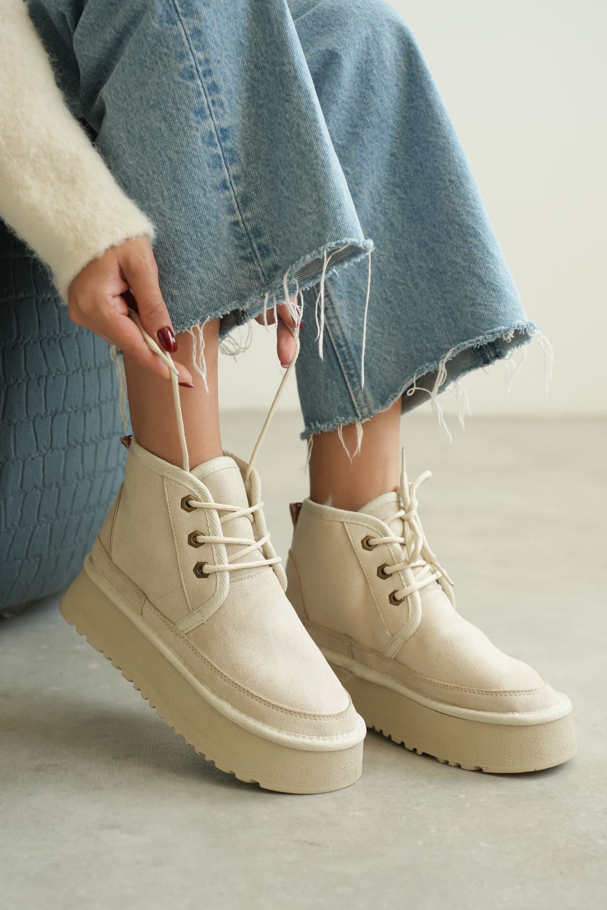 Kadın Pastor Kürklü Kısa Bot - Ten Süet