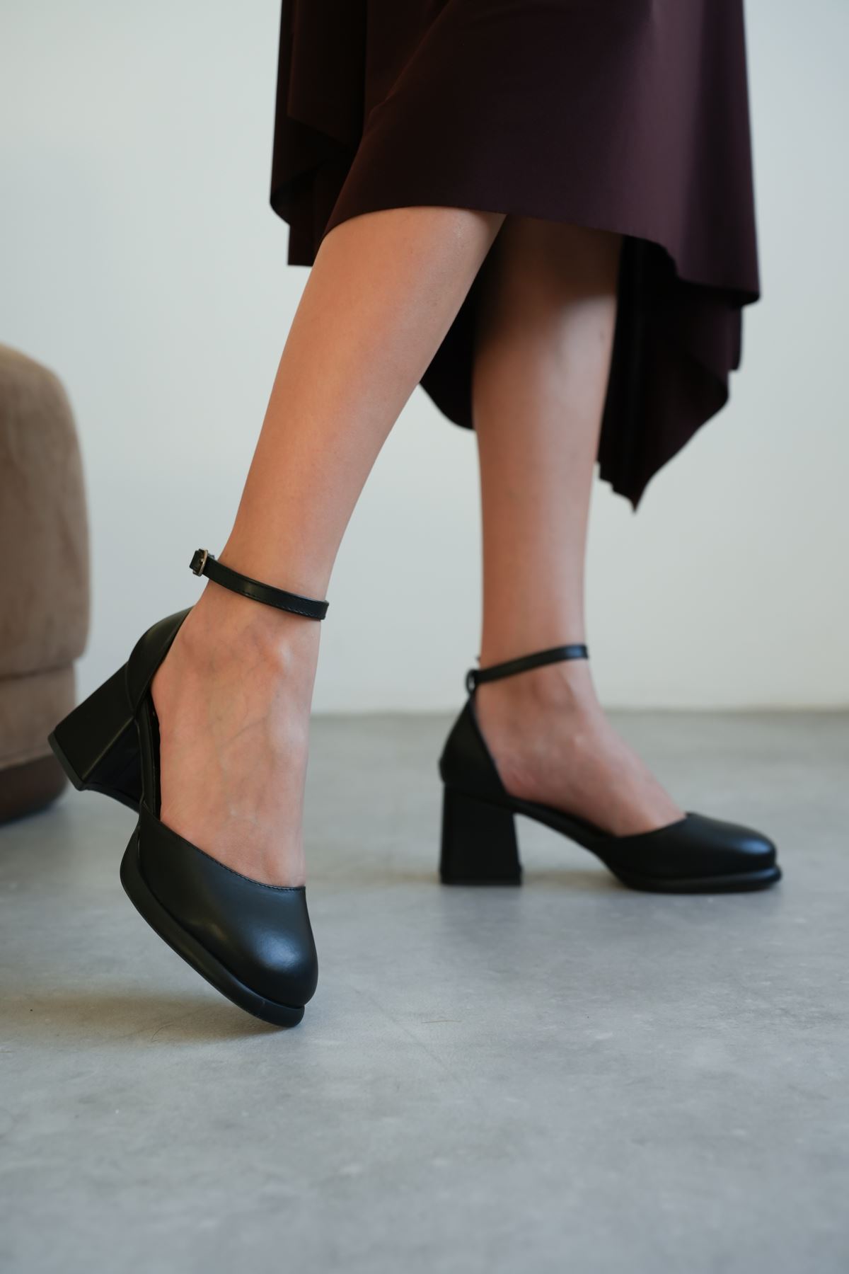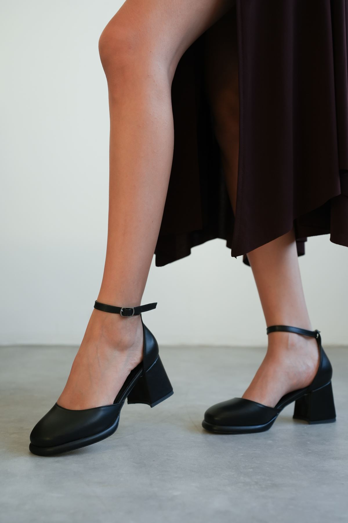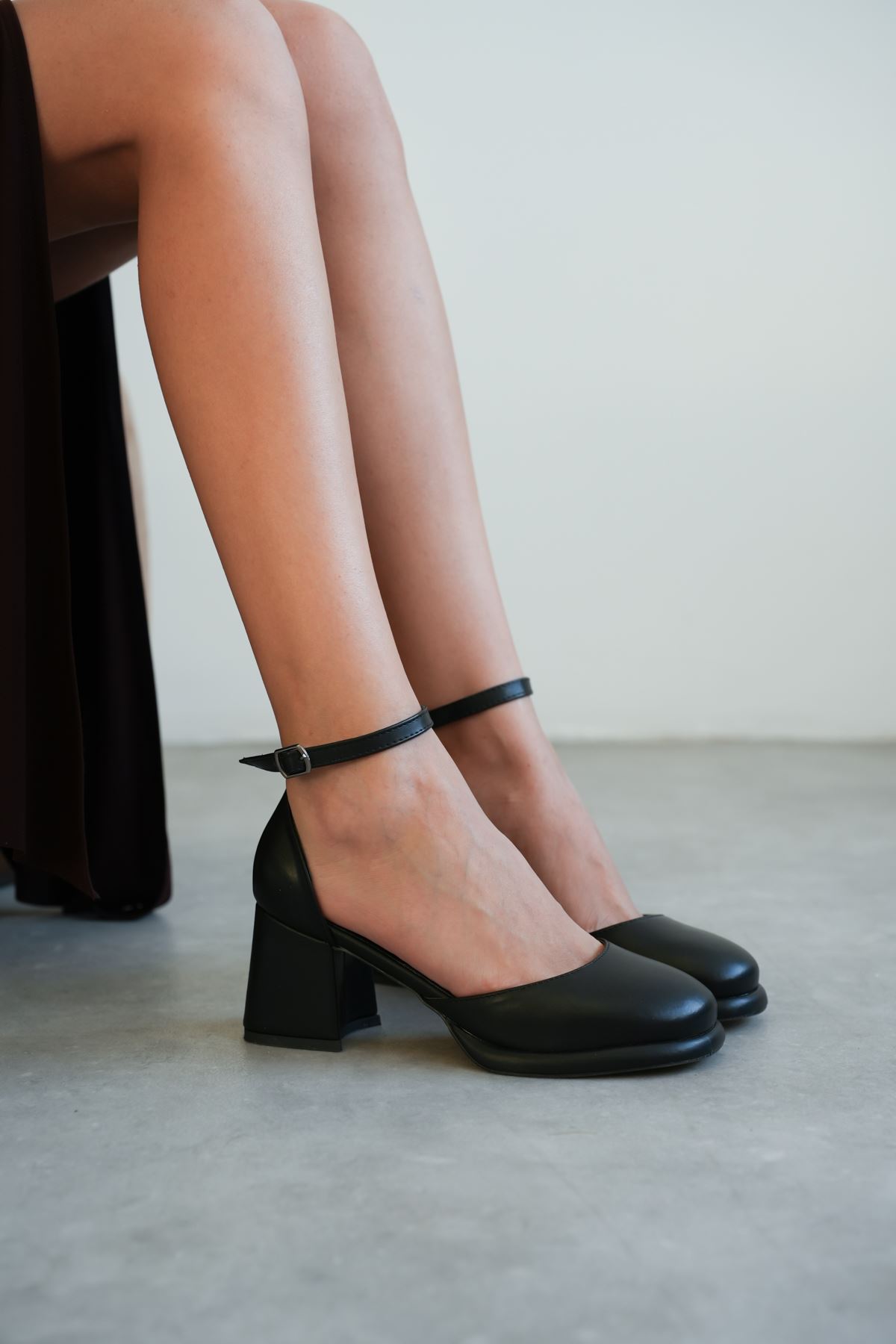 Kadın Penida Platform Topuklu Ayakkabı - siyah-deri