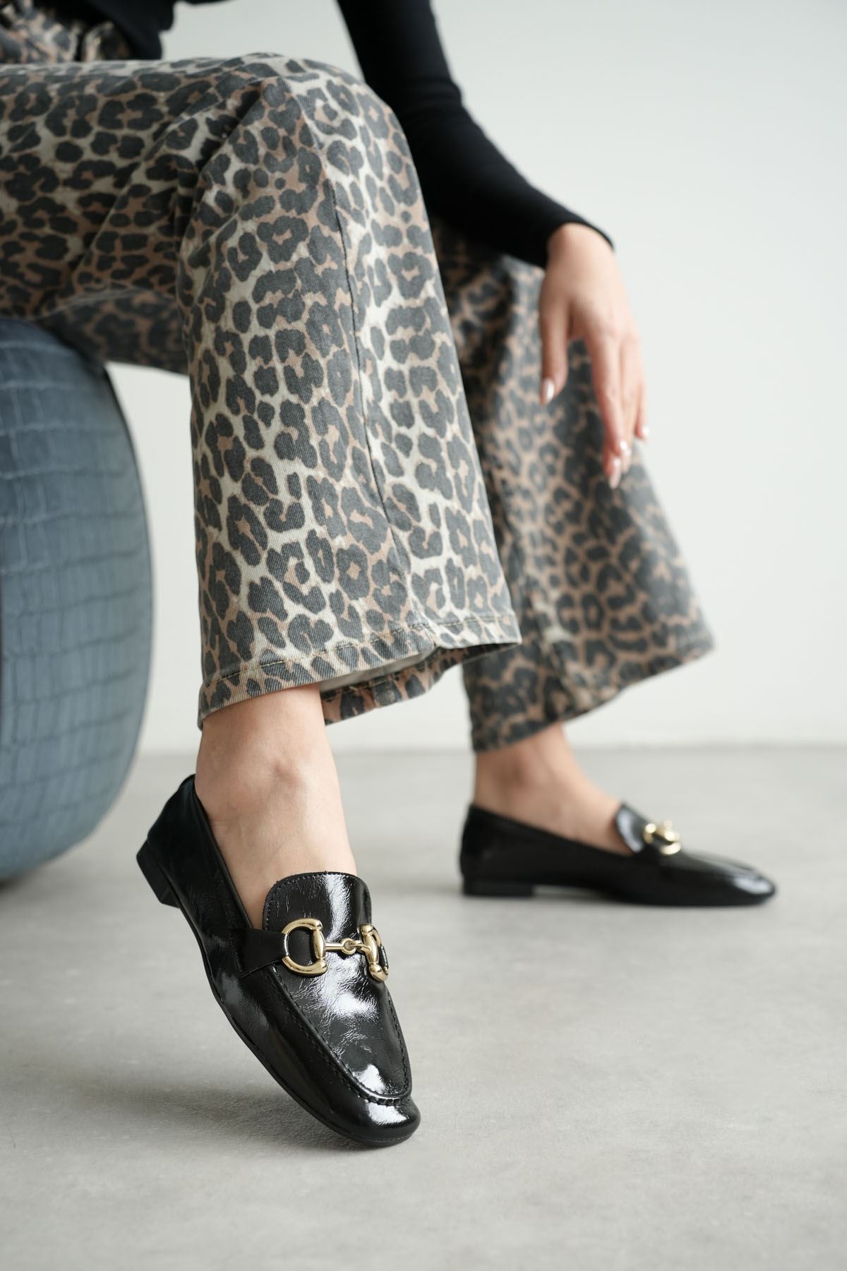 Kadın Pixo Düz Taban Babet - siyah-rugan