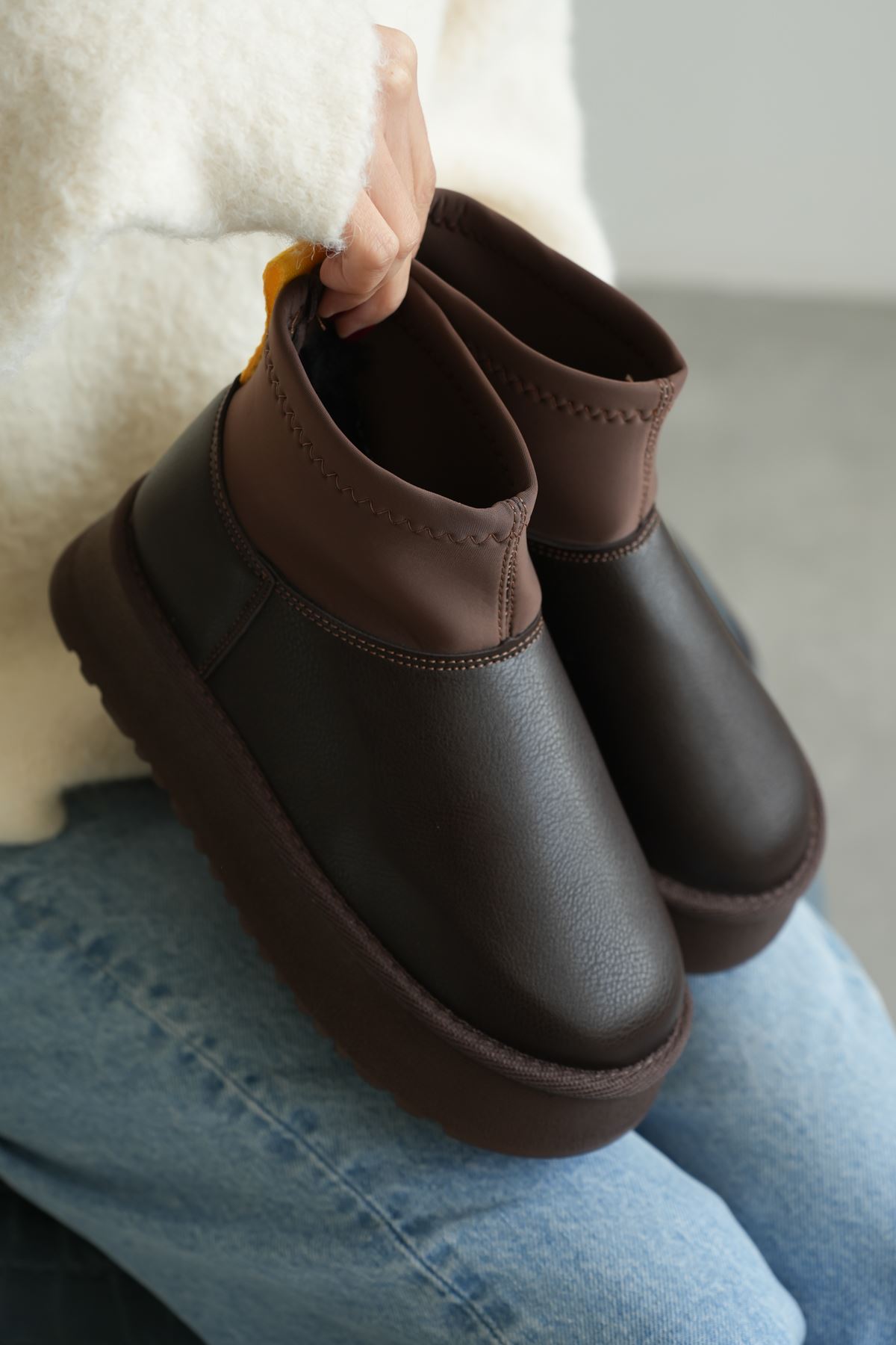Kadın Royal Streç Kısa Bot - Kahve-Deri