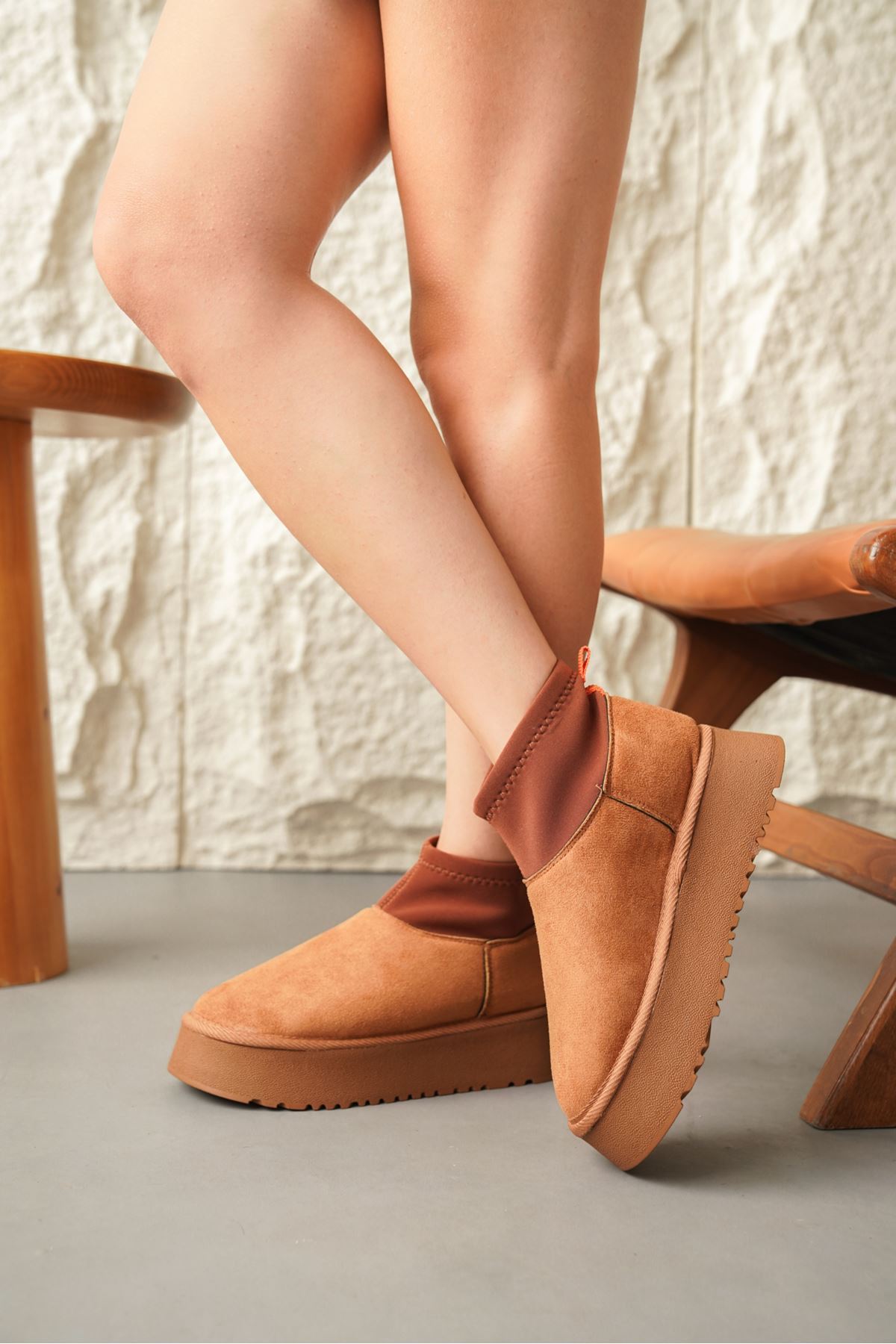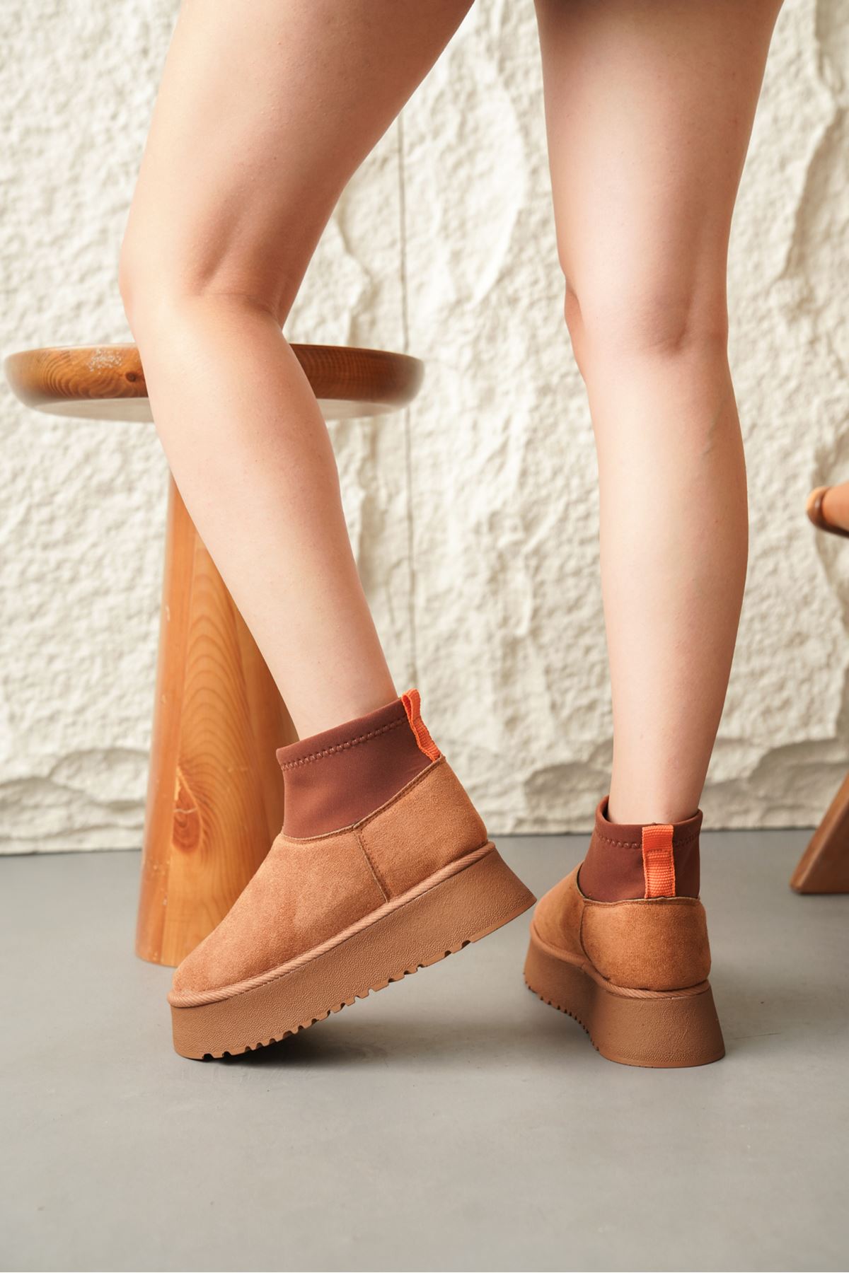 Kadın Royal Streç Kısa Bot - Taba Süet
