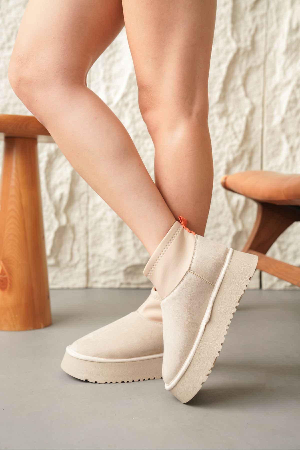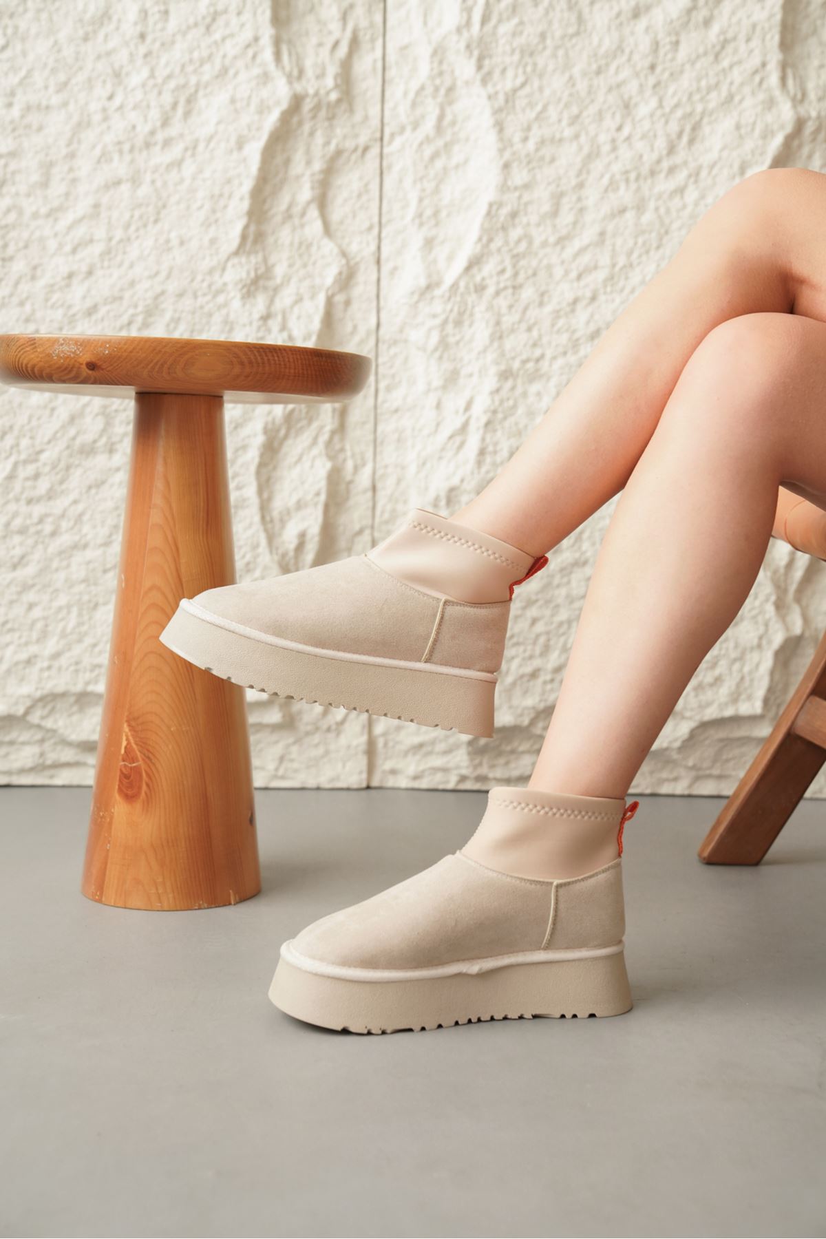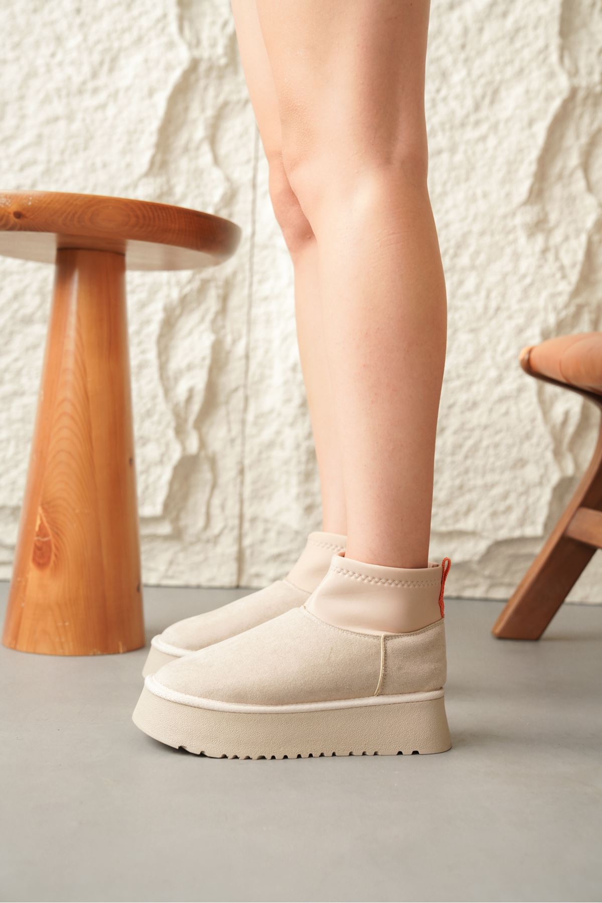 Kadın Royal Streç Kısa Bot - Ten Süet