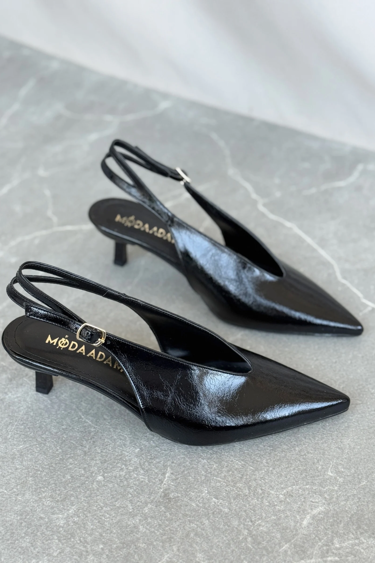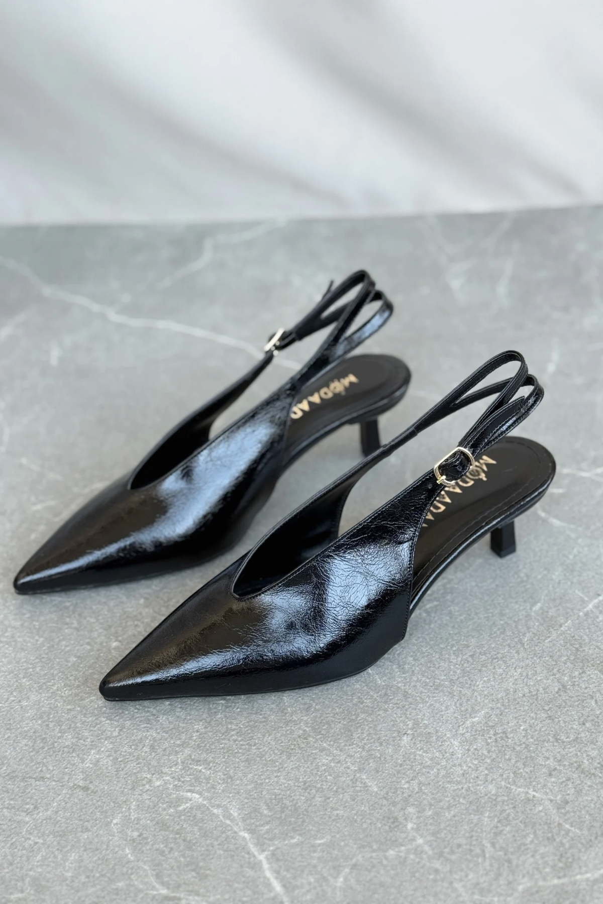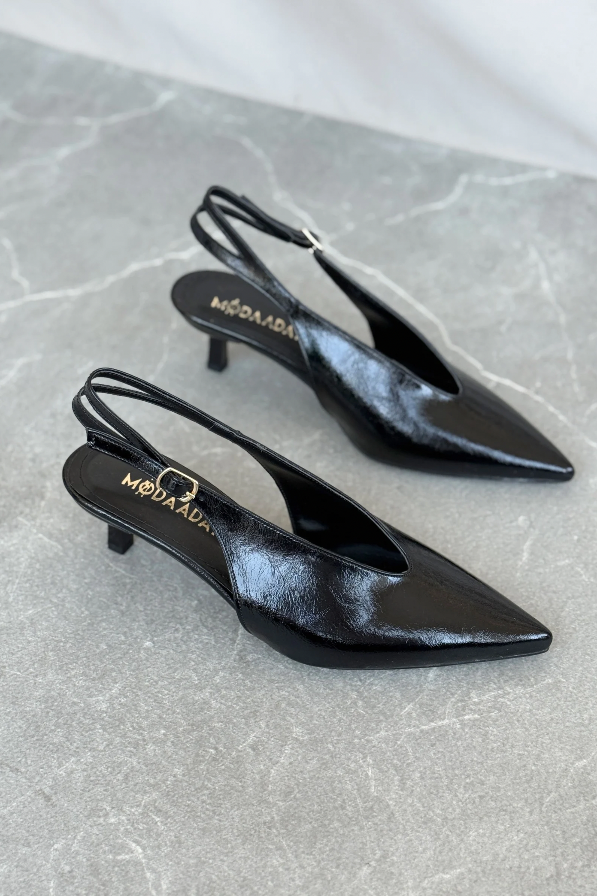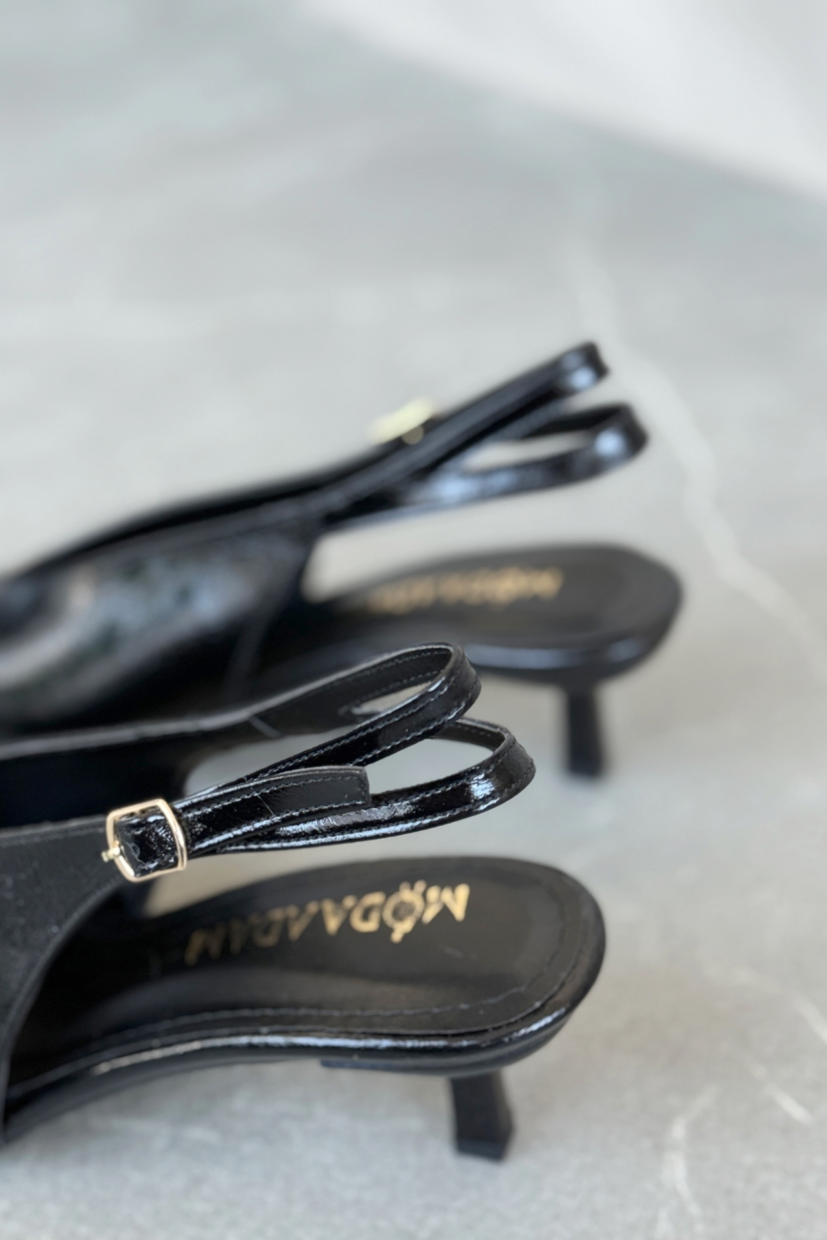 Kadın Runva İnce Kısa Topuklu Ayakkabı - siyah-rugan