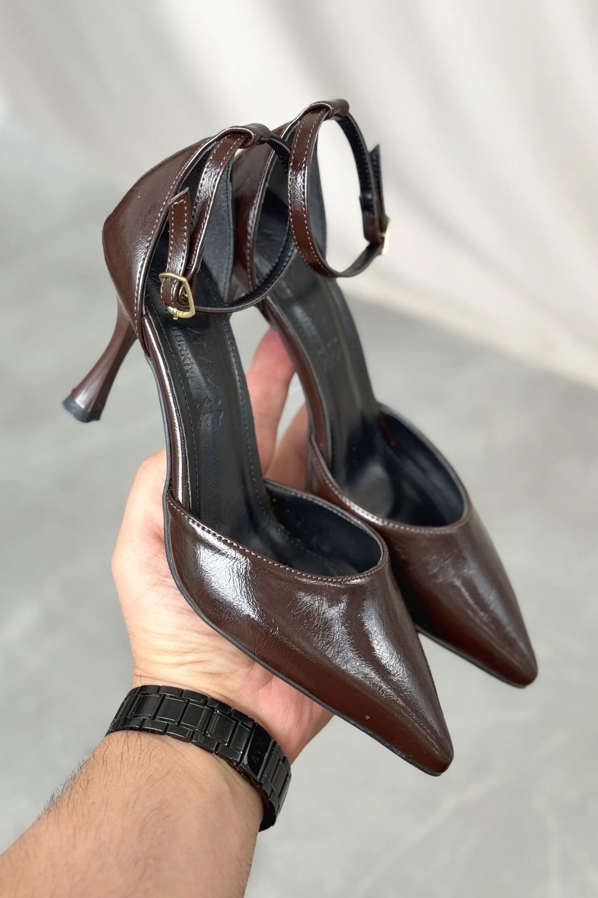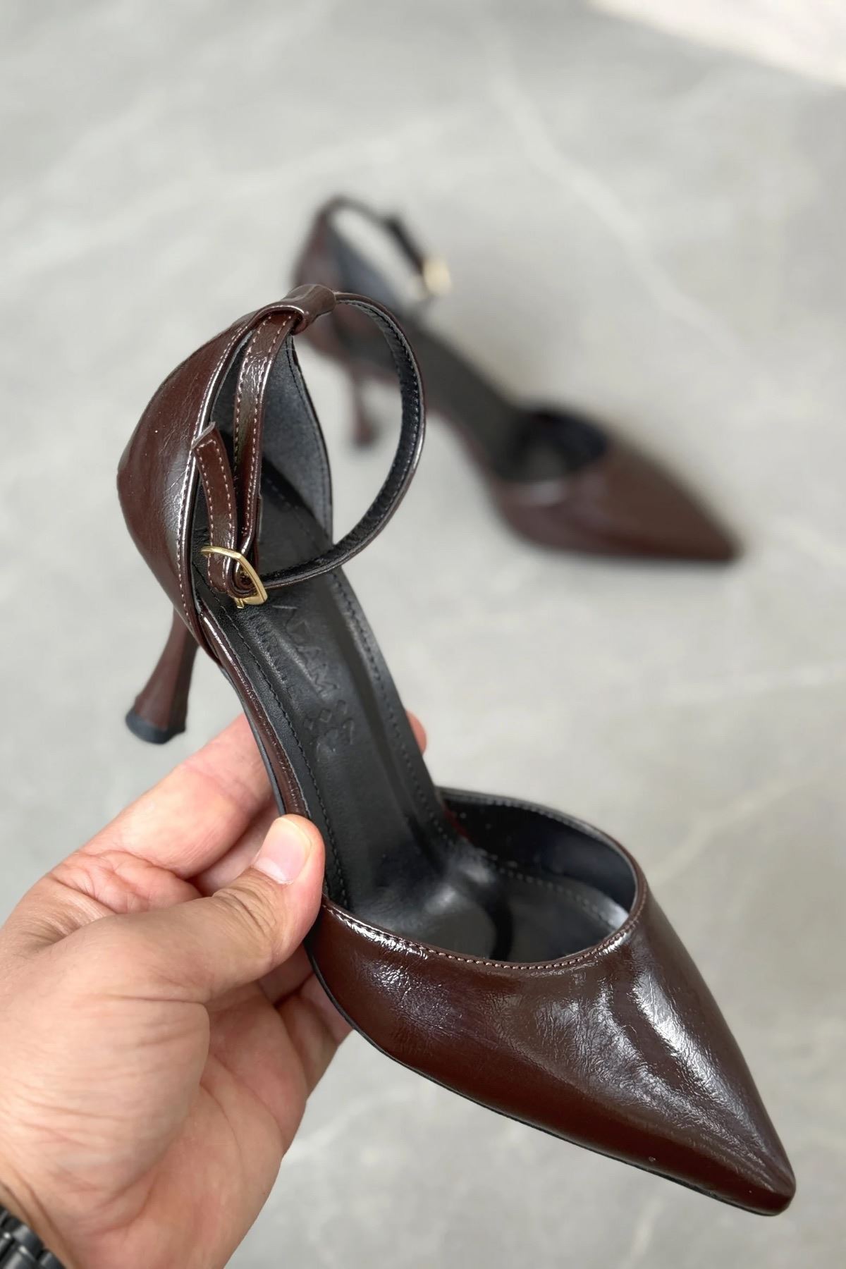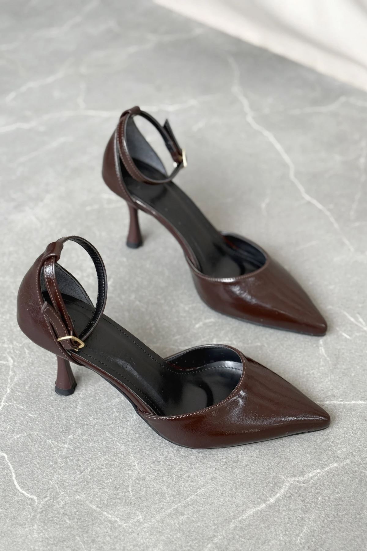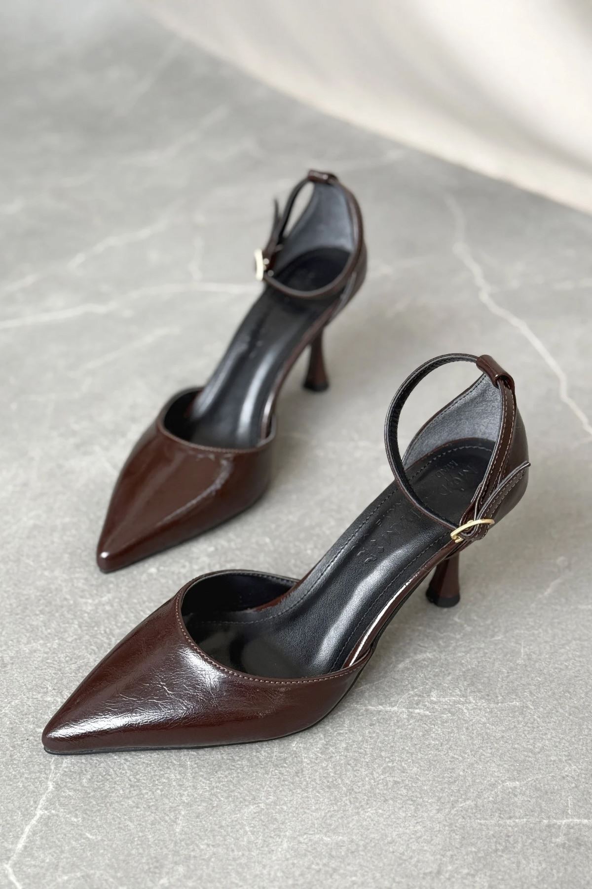 Kadın Rustik İnce Topuklu Ayakkabı - Kahve-Rugan