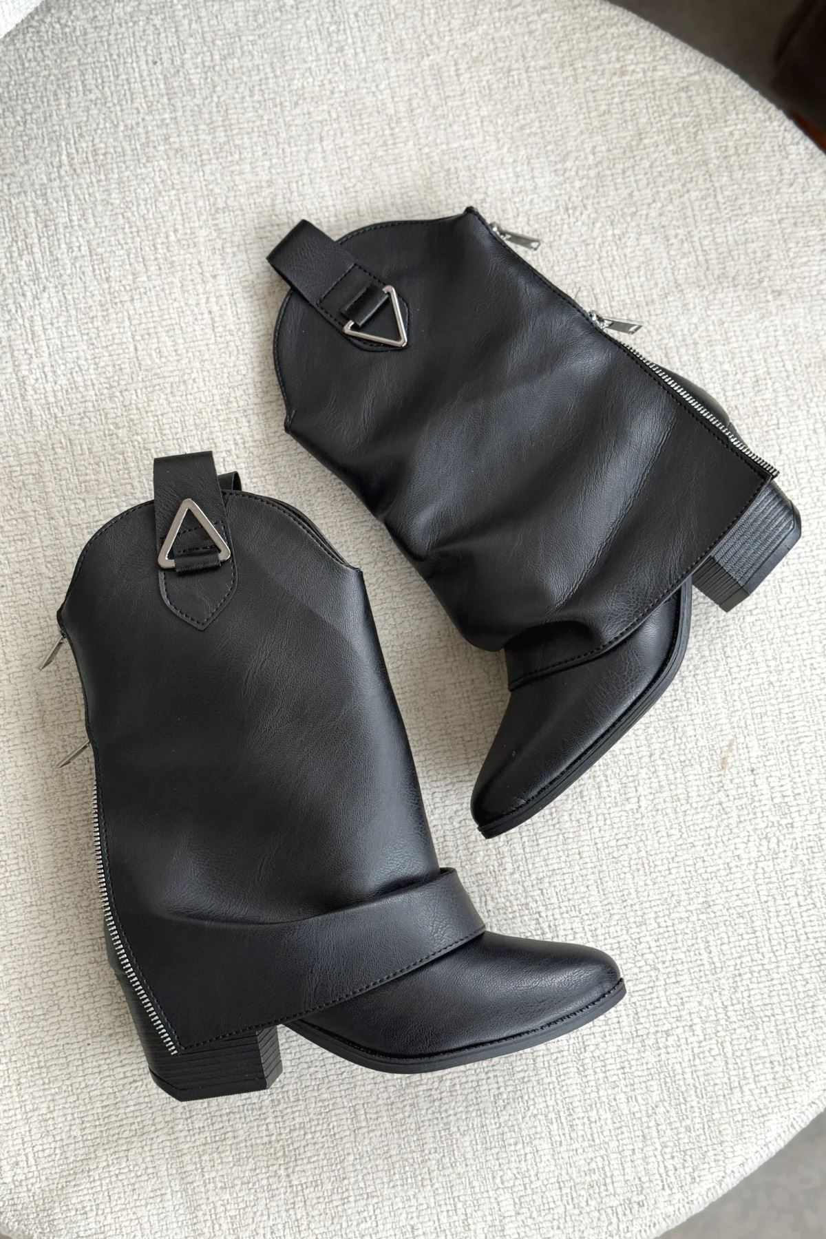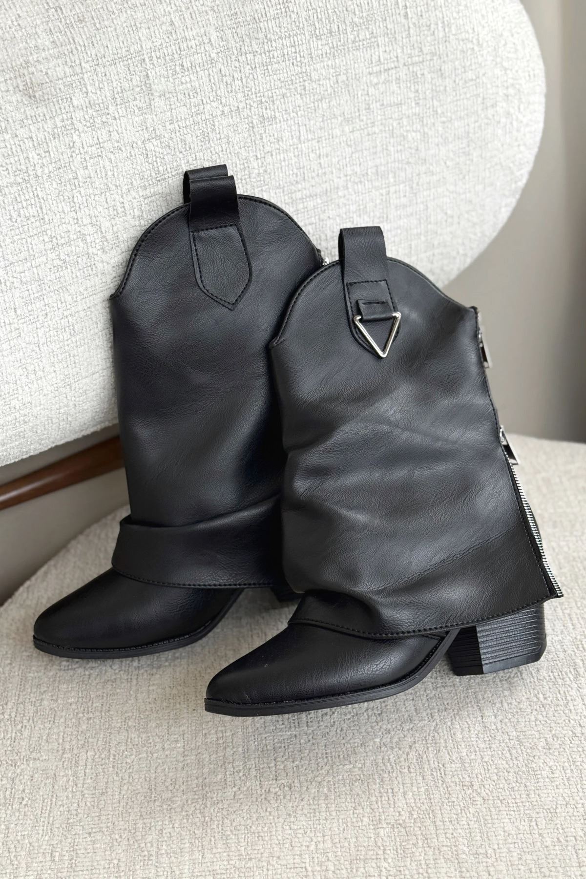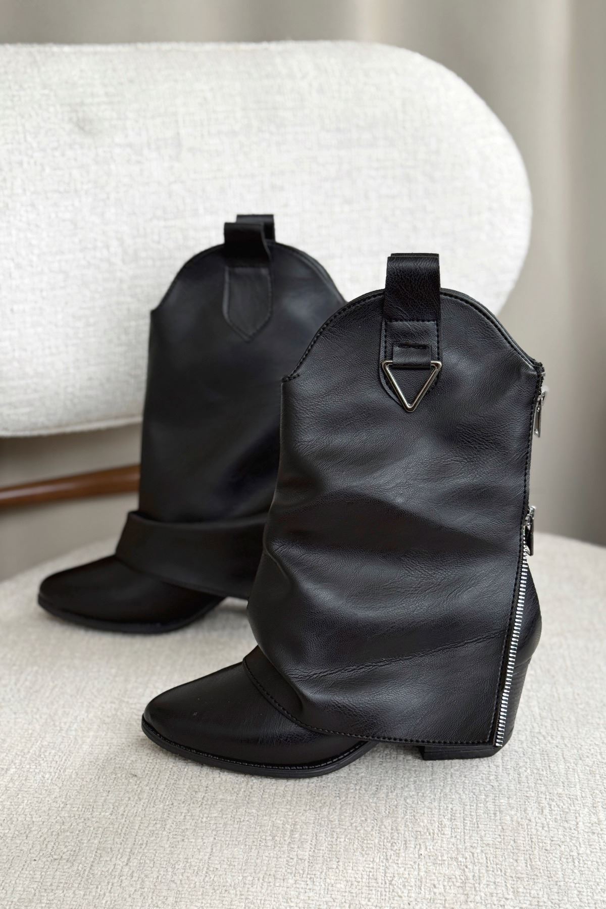 Kadın Silver Kovboy Geniş Konç Çizme - siyah-deri