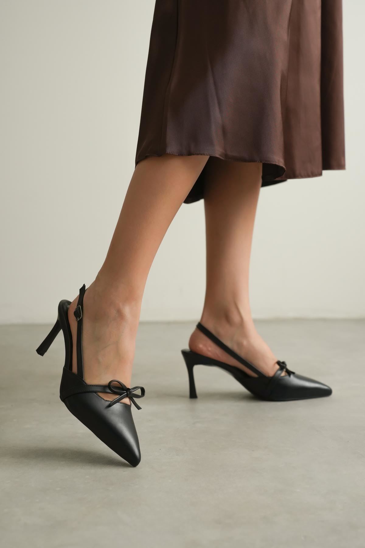 Kadın Sinco Fiyonklu Topuklu Ayakkabı - siyah-deri