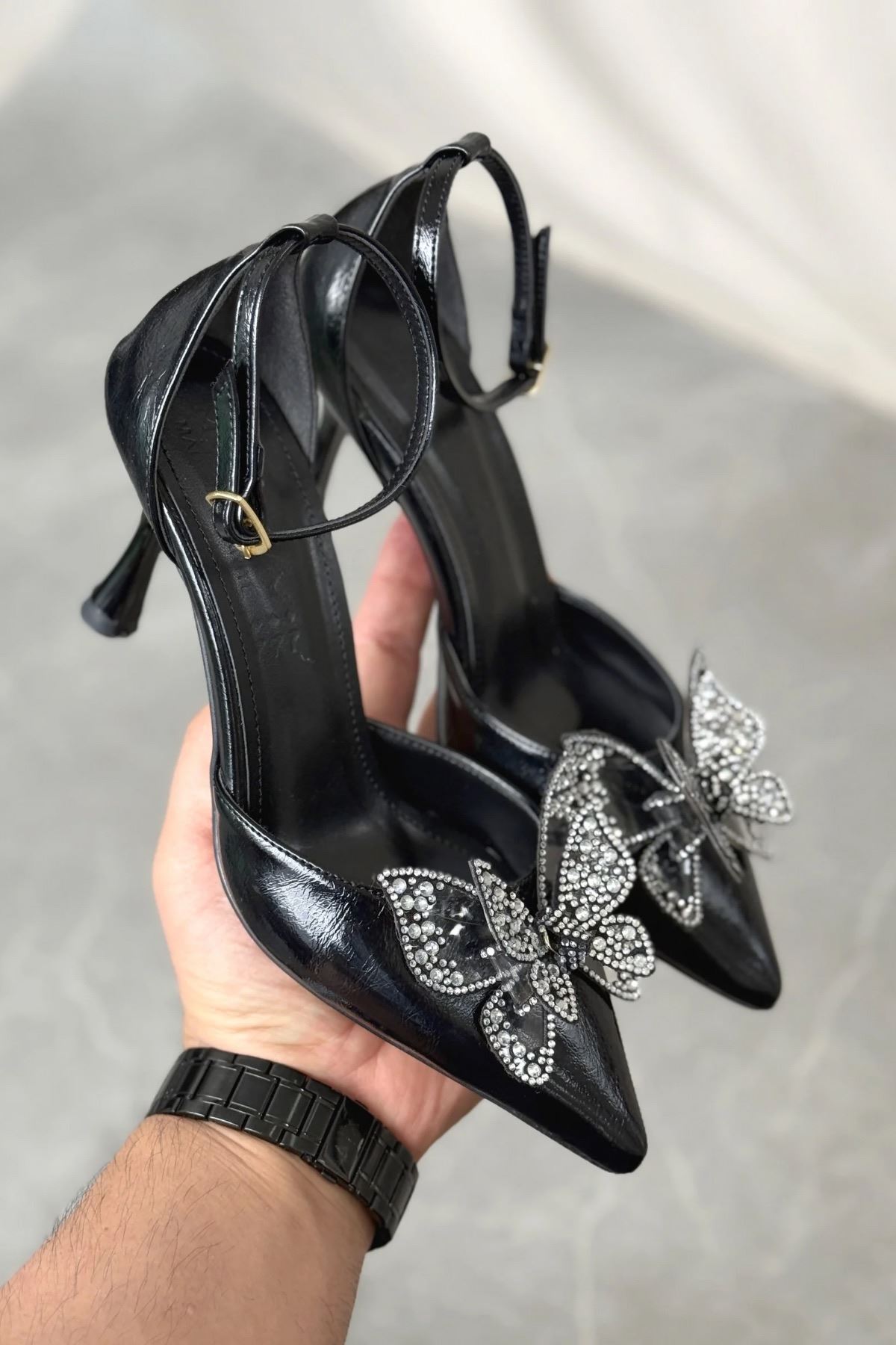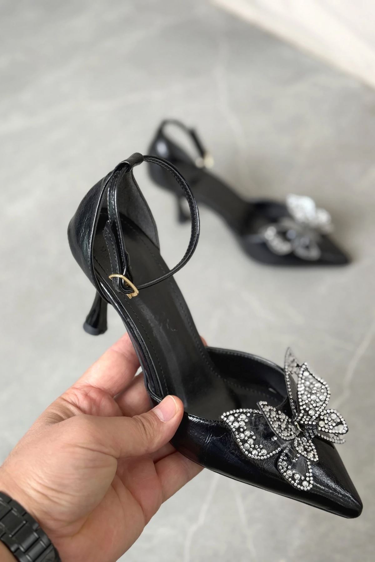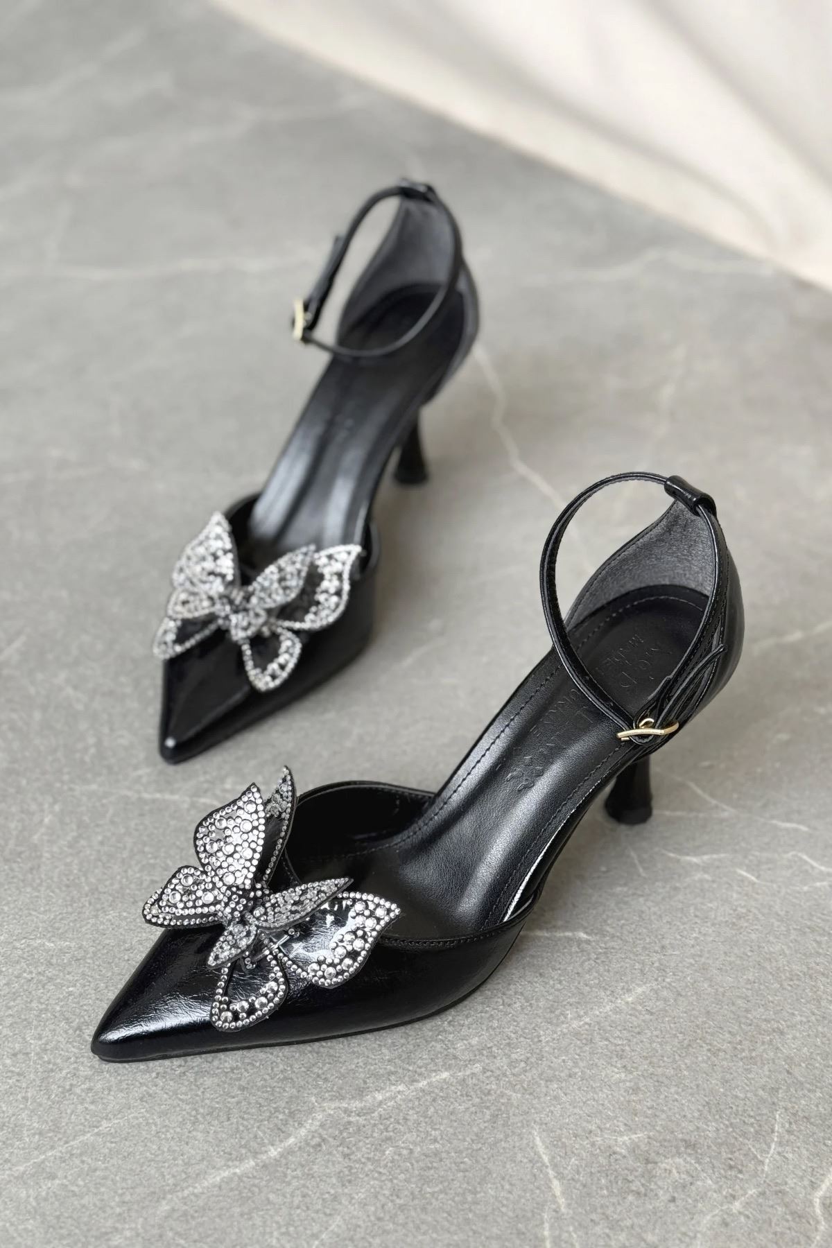 Kadın Torino Tokalı İnce Topuklu Ayakkabı - siyah-rugan
