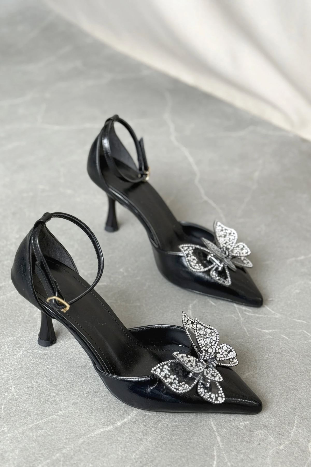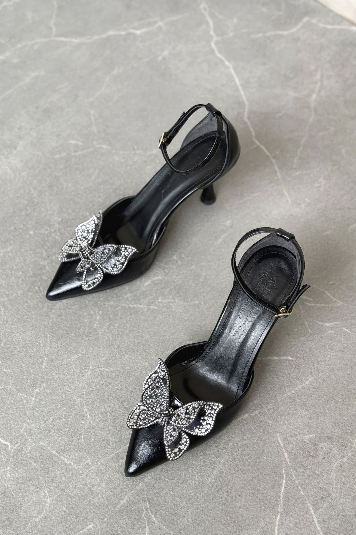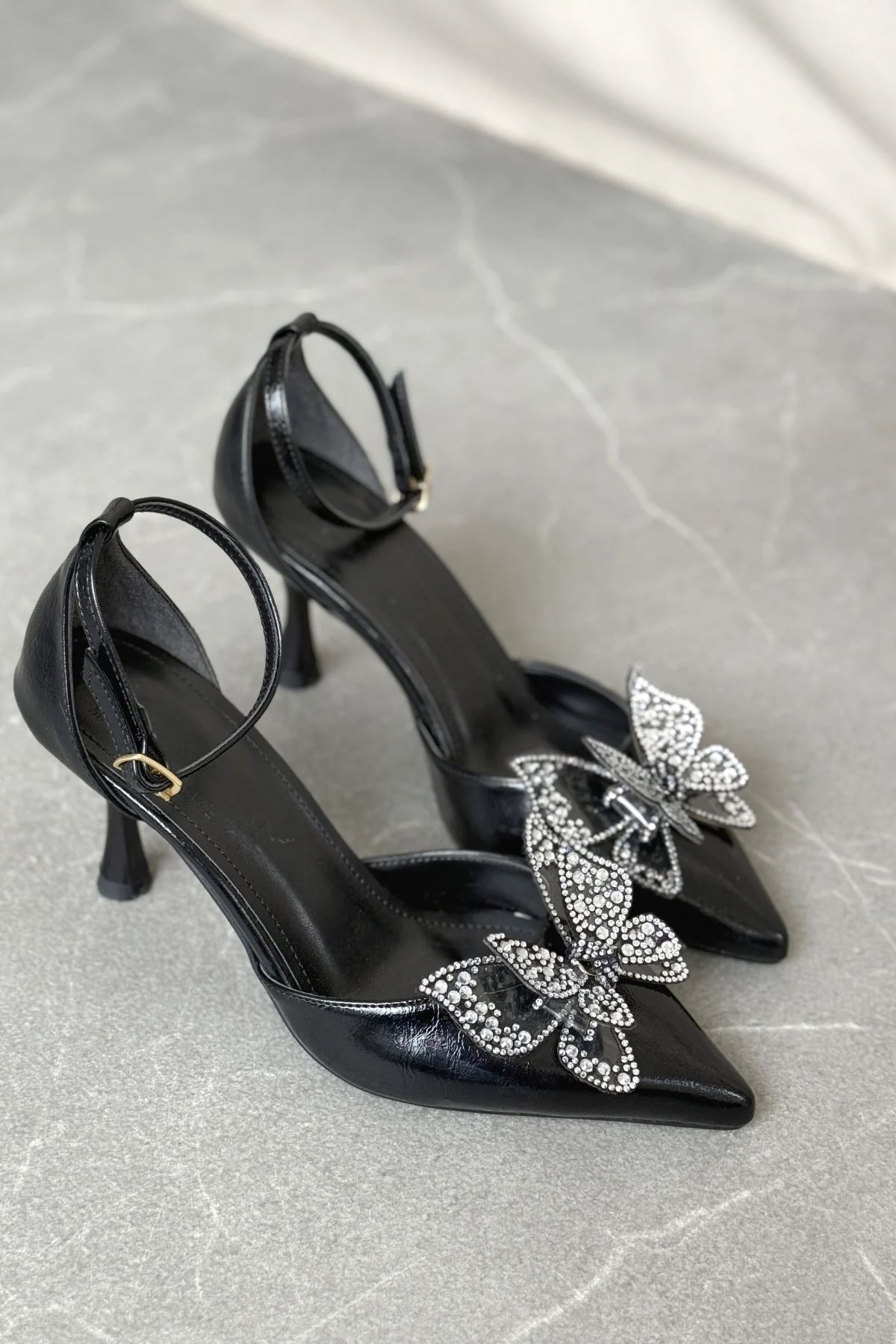 Kadın Torino Tokalı İnce Topuklu Ayakkabı - siyah-rugan