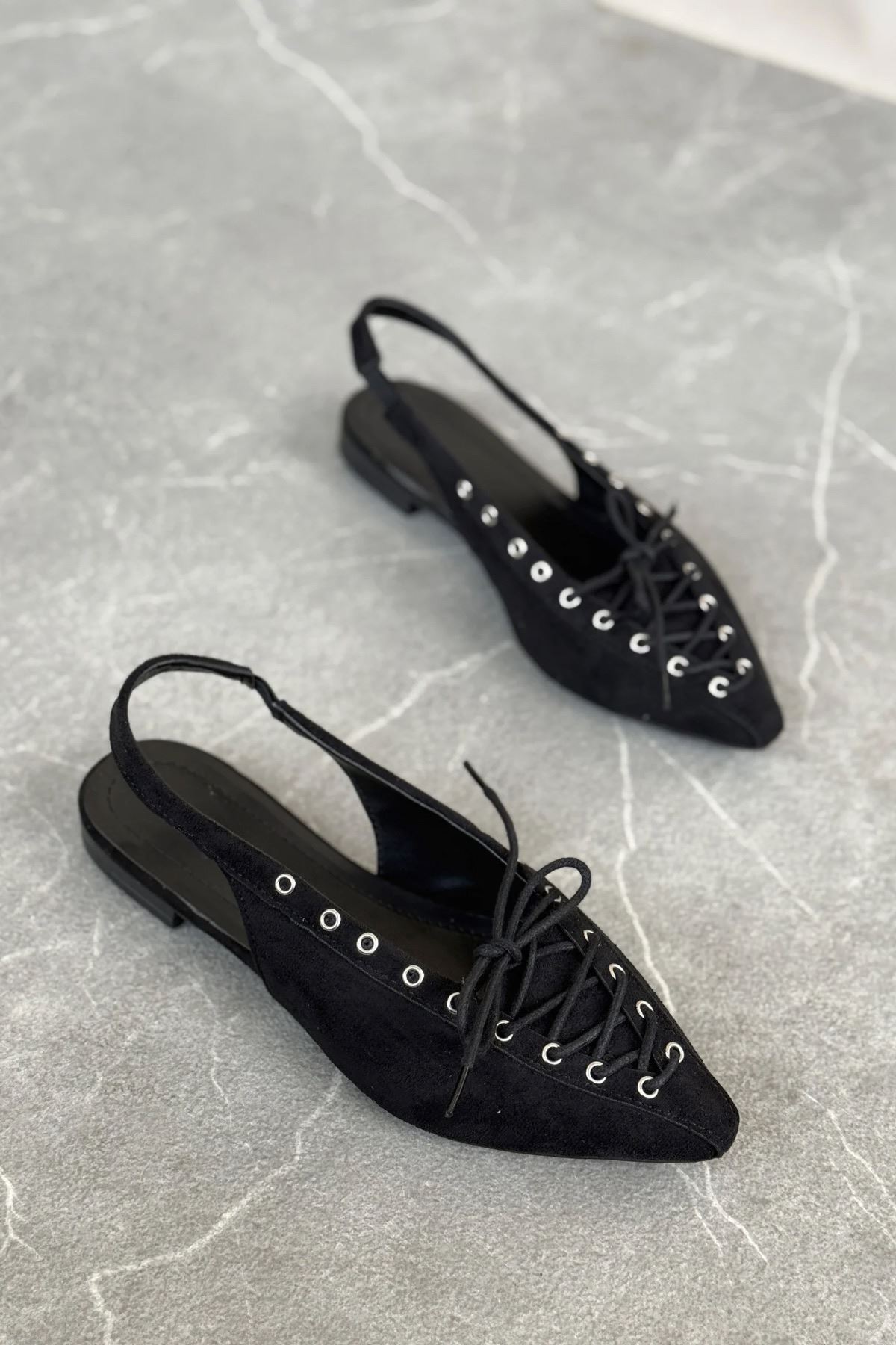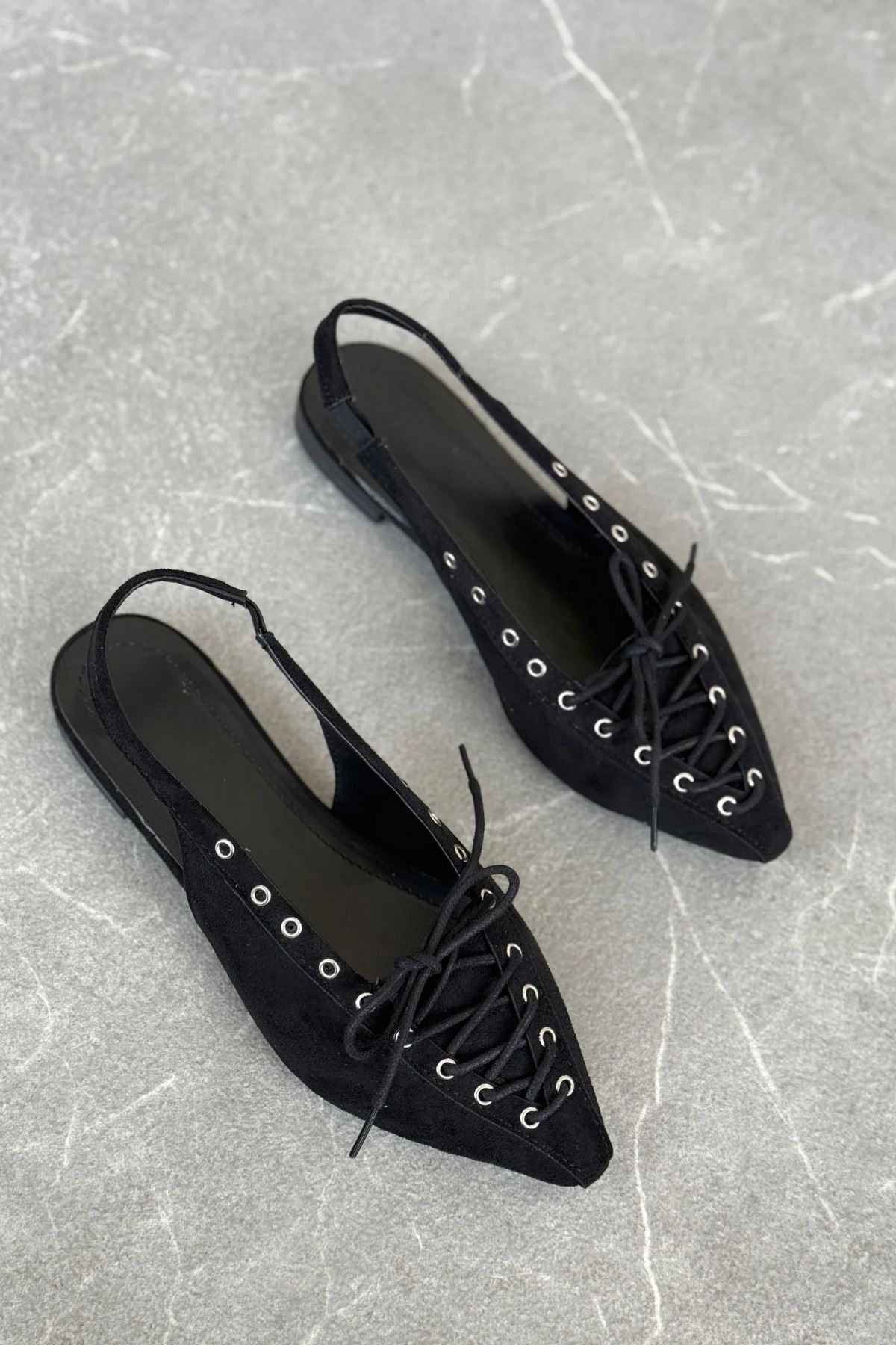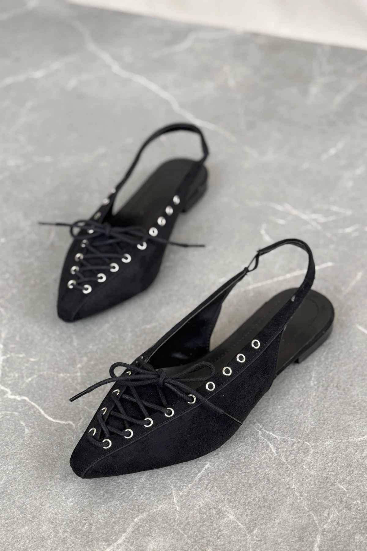 Kadın Tosac Bağcıklı Babet - Siyah Süet