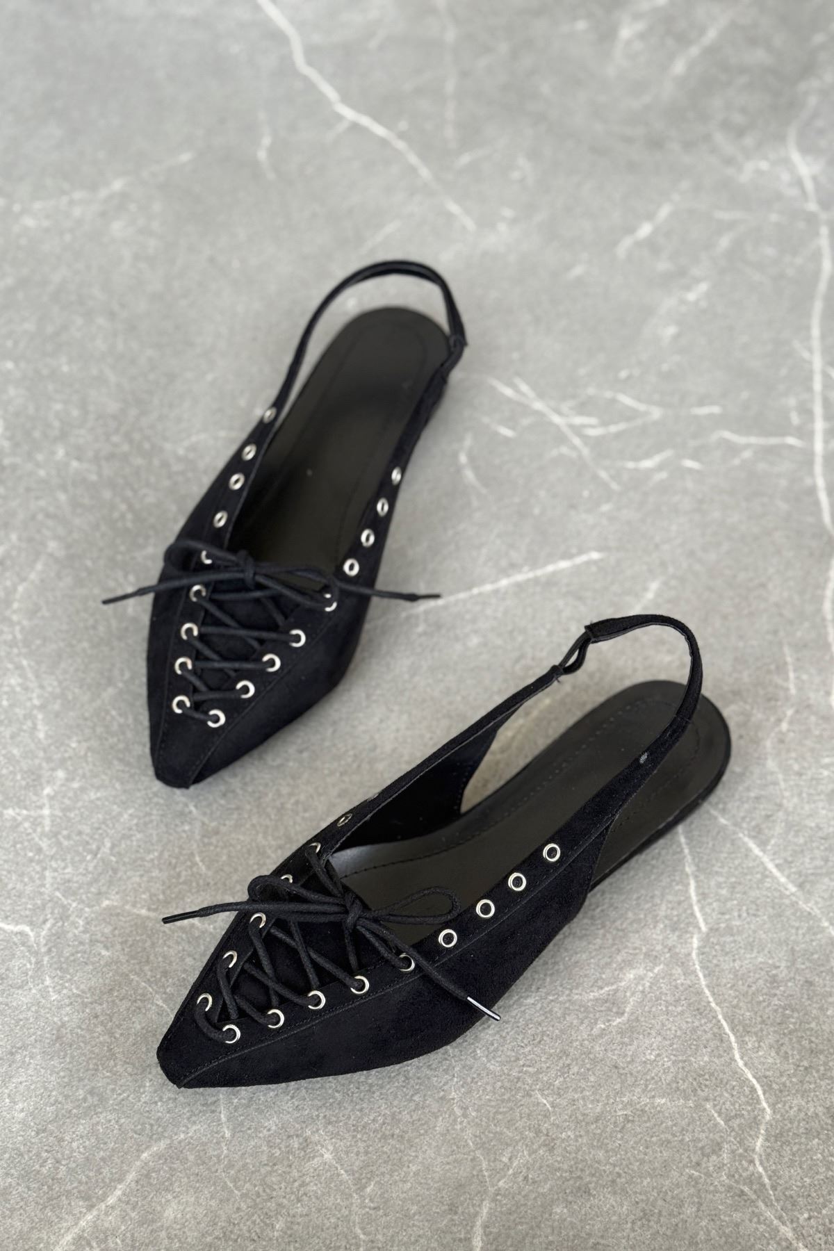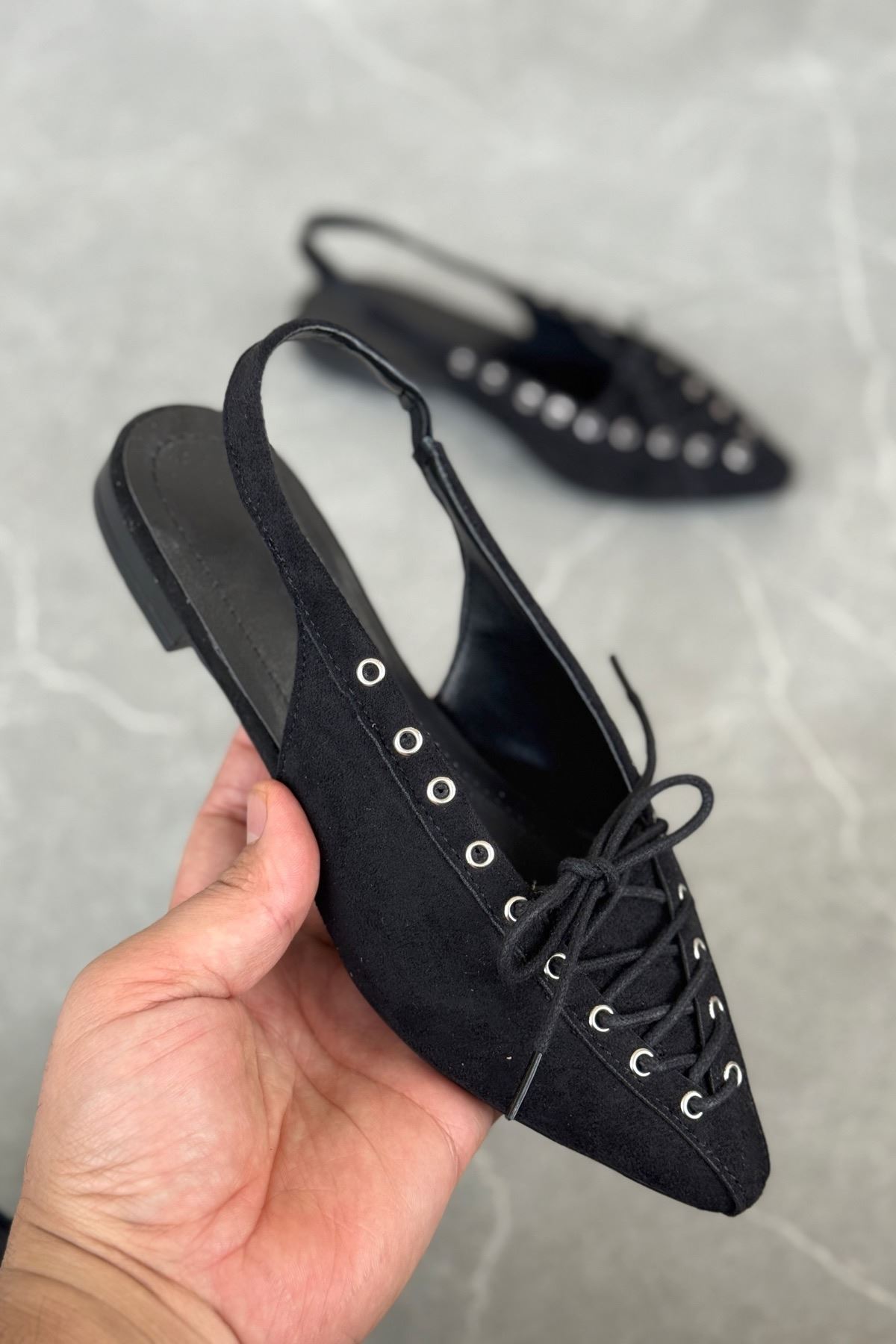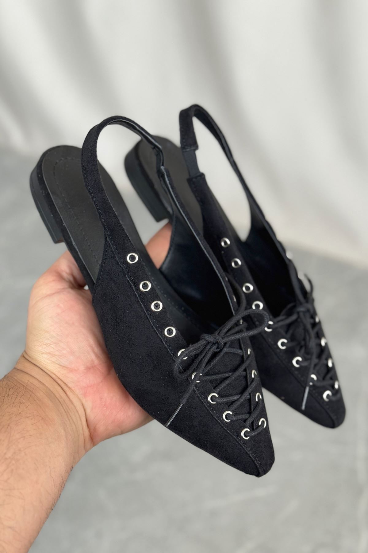 Kadın Tosac Bağcıklı Babet - Siyah Süet