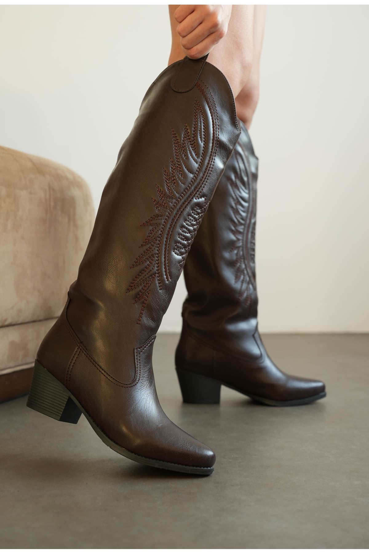 Kadın Umke Kovboy Çizme - Kahve-Deri